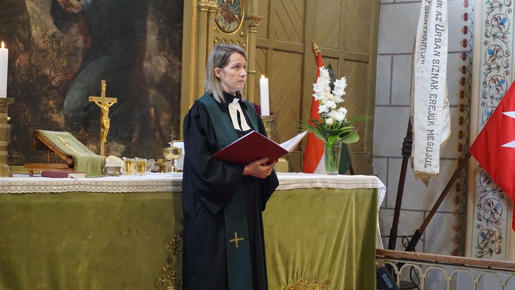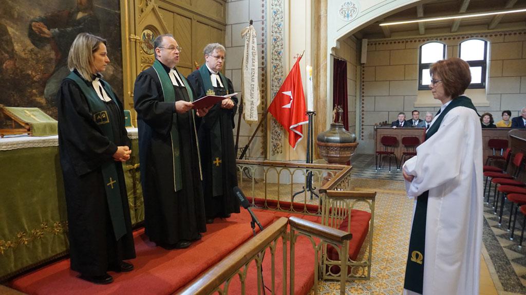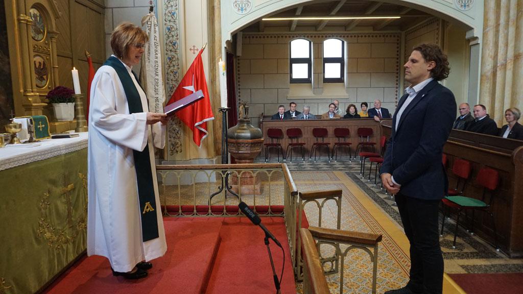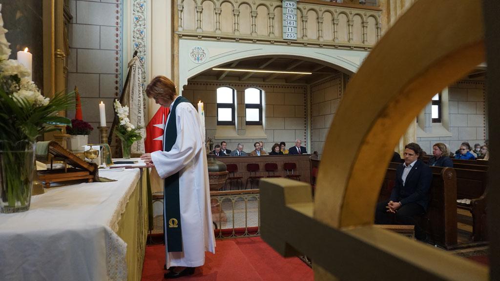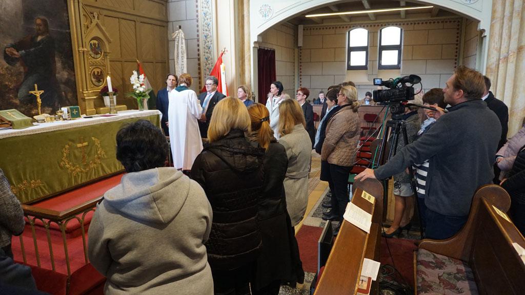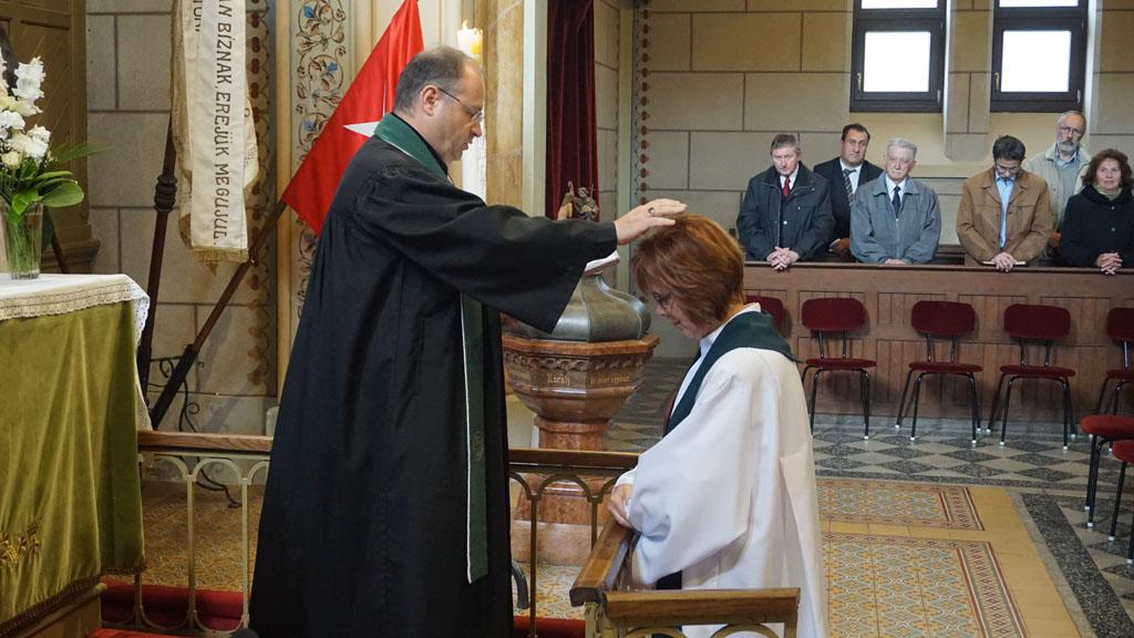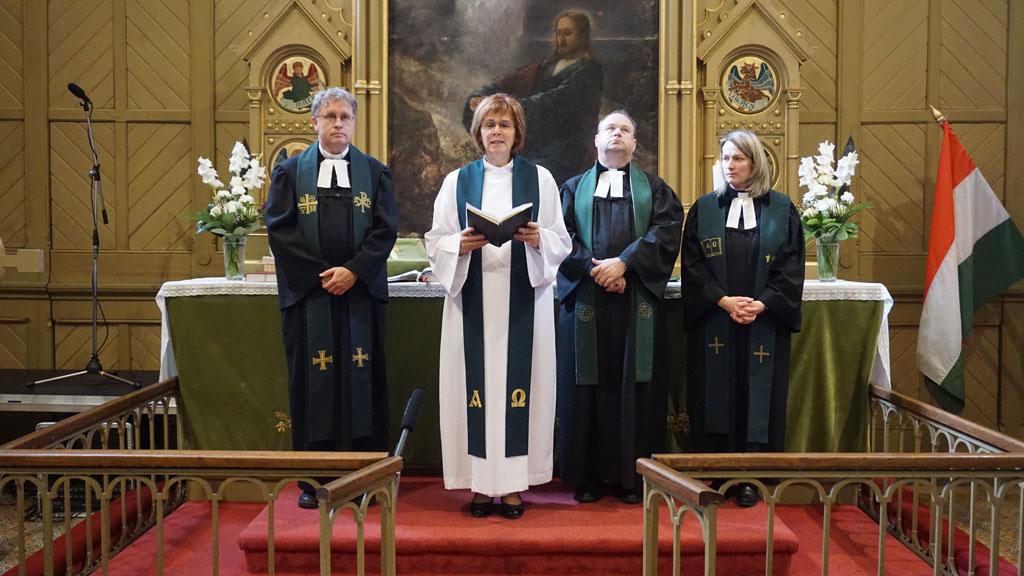 Az ünnepi istentiszteleten Gregersen-Labossa György, a Diakóniai Bizottság elnöke hirdette Isten igéjét. Elnök úr beiktatta lelkészi szolgálatába Menyesné Uram Zsuzsannát, a SZEDIK diakóniai lelkészét, aki ezt követően az intézmény vezetőjét, Szabó Miklóst iktatta be hivatalába. Az intézmény dolgozói az oltár előtt áldásban részesültek.
