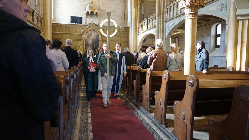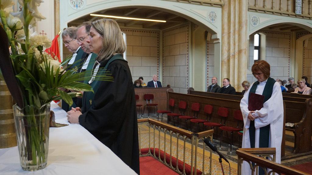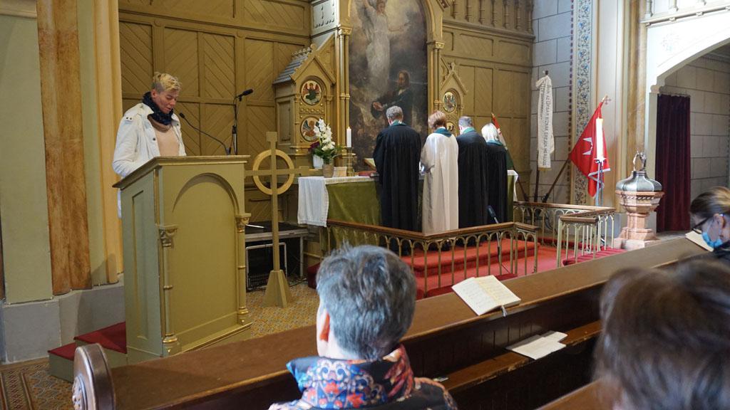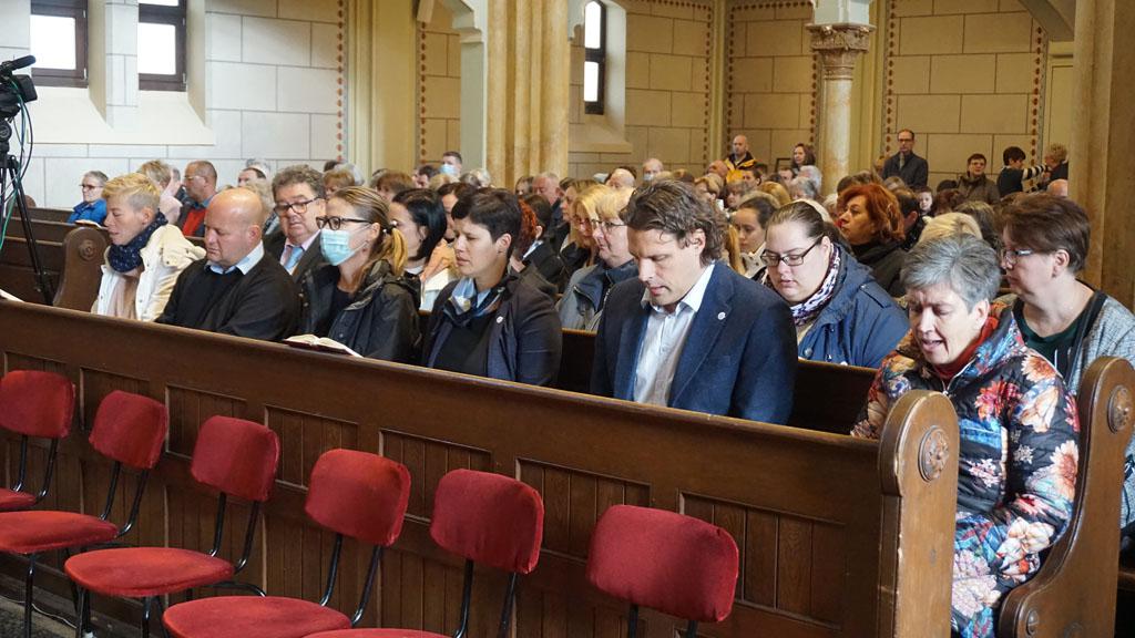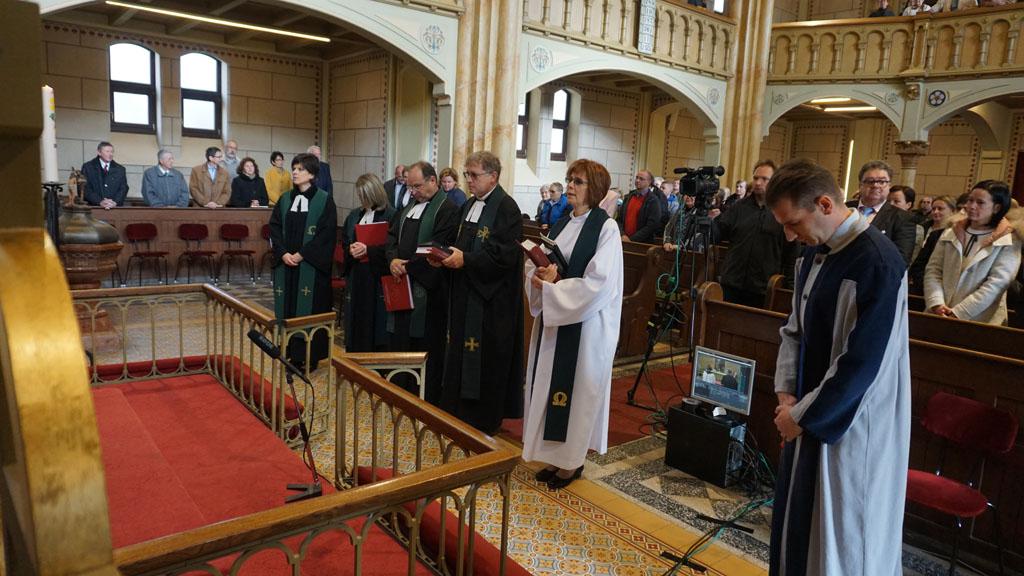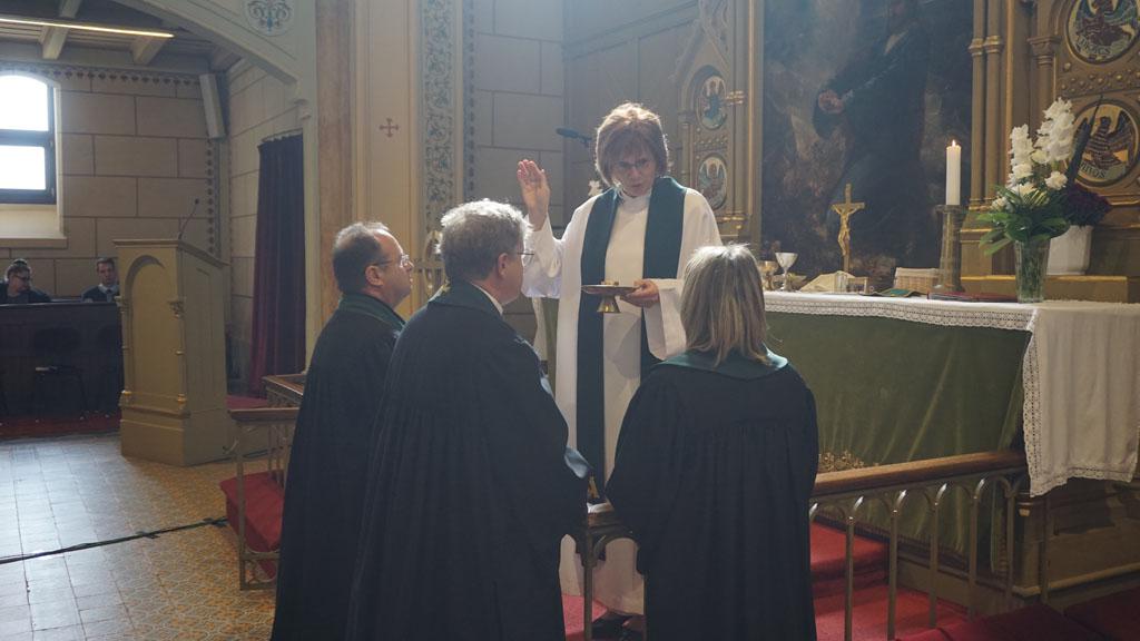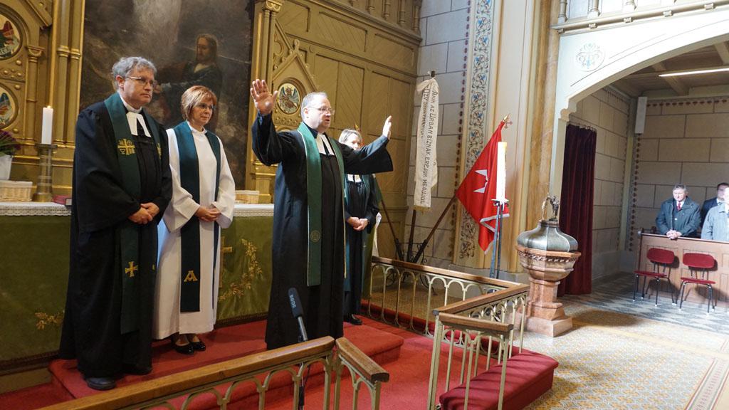 Az ünnepi istentiszteleten Gregersen-Labossa György, a Diakóniai Bizottság elnöke hirdette Isten igéjét. Elnök úr beiktatta lelkészi szolgálatába Menyesné Uram Zsuzsannát, a SZEDIK diakóniai lelkészét, aki ezt követően az intézmény vezetőjét, Szabó Miklóst iktatta be hivatalába. Az intézmény dolgozói az oltár előtt áldásban részesültek.