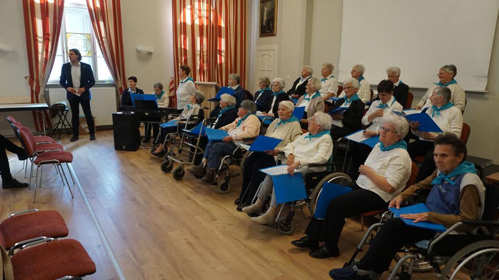 Az istentiszteletet követően az ünneplő gyülekezet a Kápolnában a Túróczy otthon Őszirózsák dalkörének előadását hallhatta, majd Horváth Rita és Márovics Sándor jubielumi dolgozók köszöntése, jutalomátadása következett. Intézményvezető úr köszöntötte a Szeretetotthonból az elmúlt 20 év során nyugdíjba vonult dolgozókat, valamint az elmúlt években az otthonban szolgáló önkénteseket is.