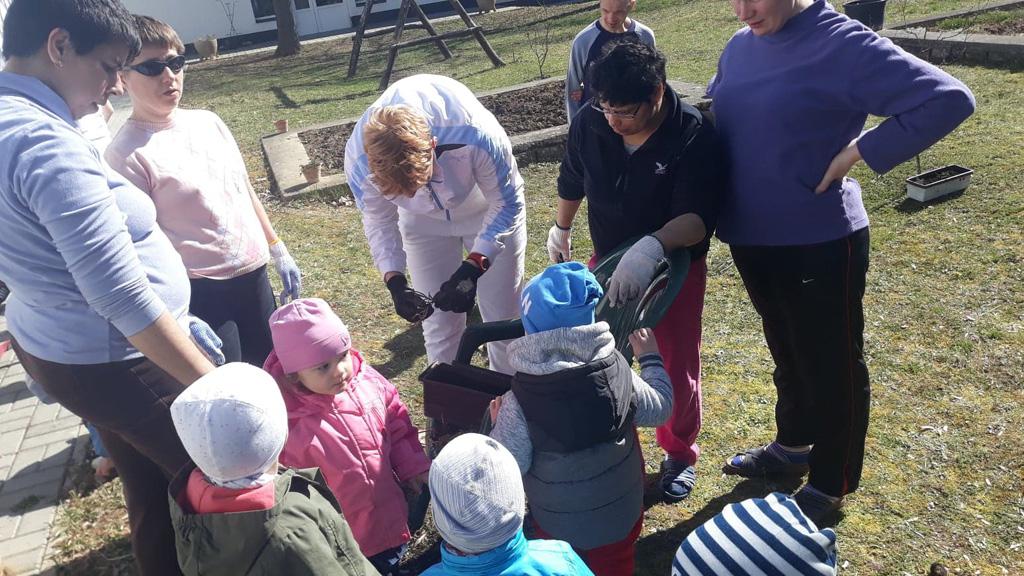 Részt vettek a munkálatokban a családi bölcsödébe járó gyerekek és a fiatal fogyatékkal élők. Nagy örömöt okoztunk egymásnak, mindenki kivette a részét a munkából.