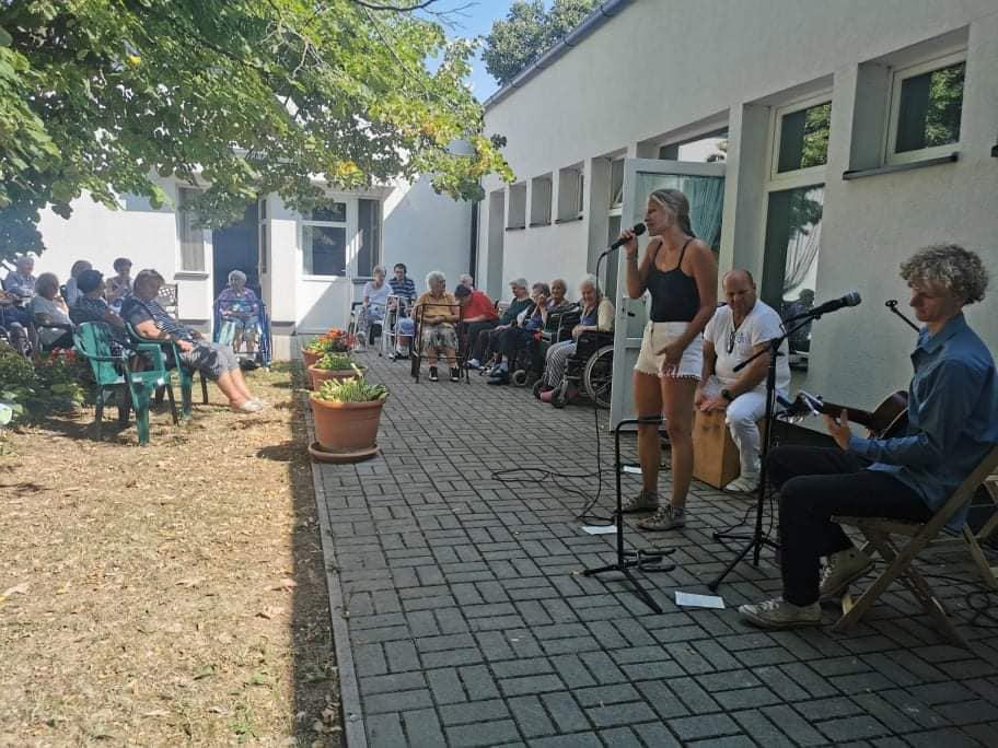 A zene, mely ma körülölelte lakóinkat, megsimogatta a lelkeket. Ez alkalommal a Háklár banda kedveskedett nekünk, s adott koncertet a kertben.