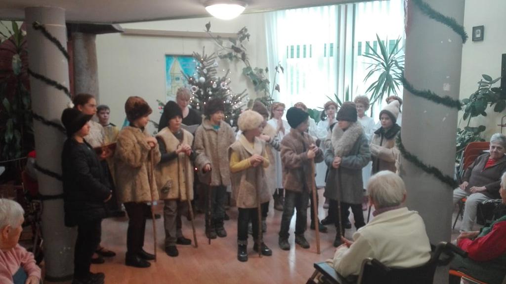 A Reményik iskola harmadik osztályos diákjai lucáztak, az ötödikesek betlehemeztek. Időseink csomagolták a gyermekek karácsonyi csomagját, melyet szenteste kaptak meg a templomban. Ellátogattak hozzánk a Bohócdoktorok is, s karácsonyi énekekkel örvendeztették meg lakóinkat. Sütöttünk mézeskalácsot, a szorgos kezek gyúrtak, nyújtottak, szaggattak, mézeskalács illat járta be a házat. Lakóinkkal és dolgozóinkkal feldíszítettük az otthon karácsonyfáját, s lelkész úr karácsonyi áhítatával, egy kis ünnepi megvendégeléssel átadásra kerültek a lakók apró ajándékai is. Gyorsan eltelt az ádventi időszak, de a naponkénti áhitatok mégis lehetőséget adtak a megállásra, elcsendesedésre, az egymásra figyelésre, s meghitté változtak a mindennapok. Az új évet koccintással kezdtük, s az év igéjére figyelve "Törekedj békességre és kövesd azt." Zsolt 34,15 tekintünk előre.