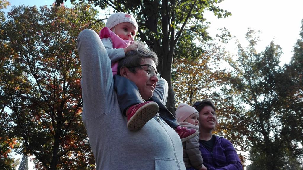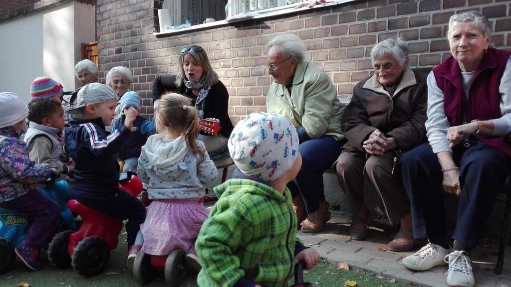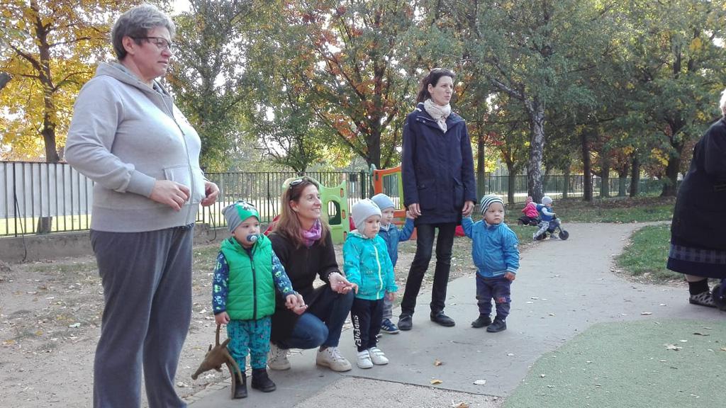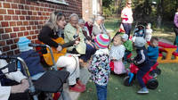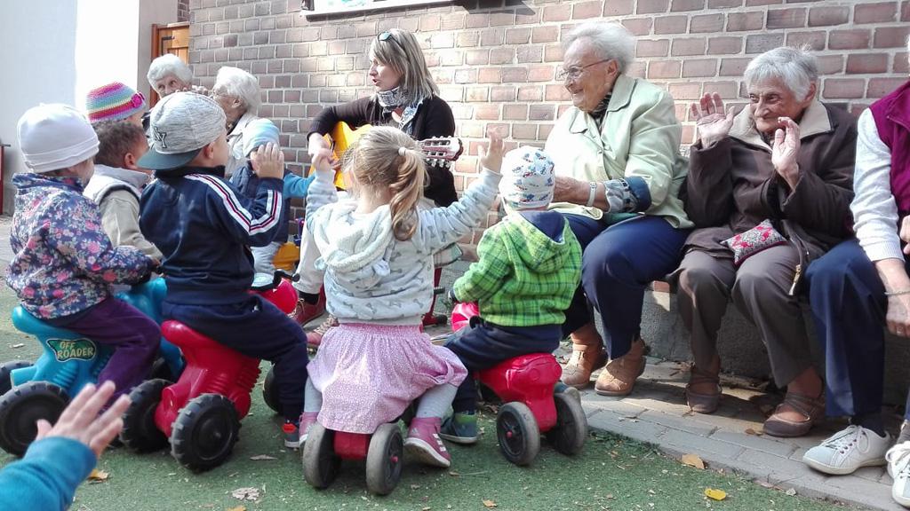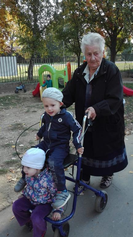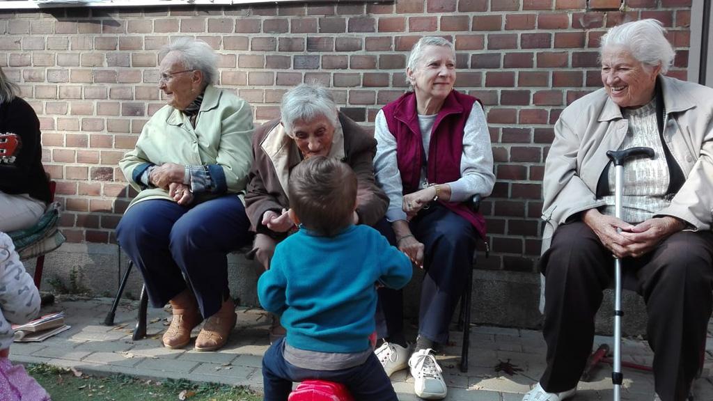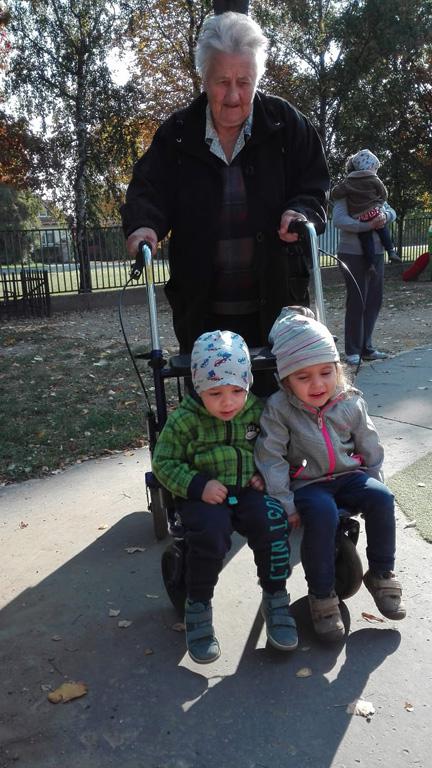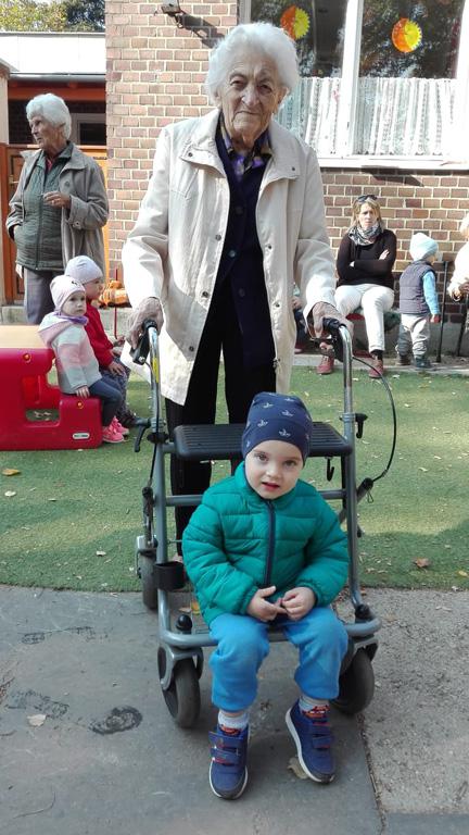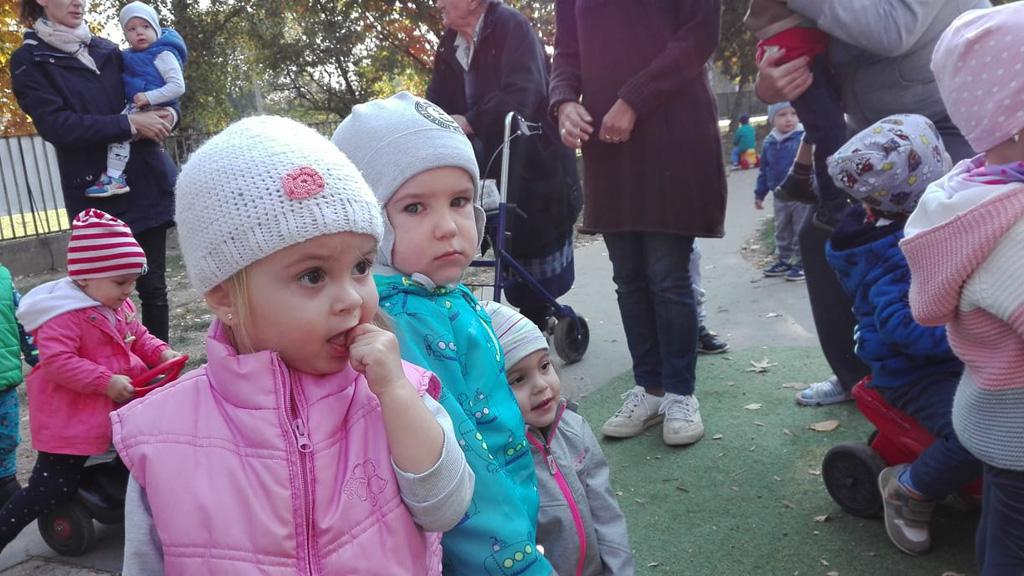 Torma-Hasza Mónika lelkésznő vezetésével közös áhítaton vehettünk részt a napsütéses őszi délelőttön, s a sok szép éneket követően a játék sem maradhatott el. A gyerekek nagy érdeklődéssel próbálták ki az idősek rolátorait. Önfeledten játszott együtt kicsi és nagy.