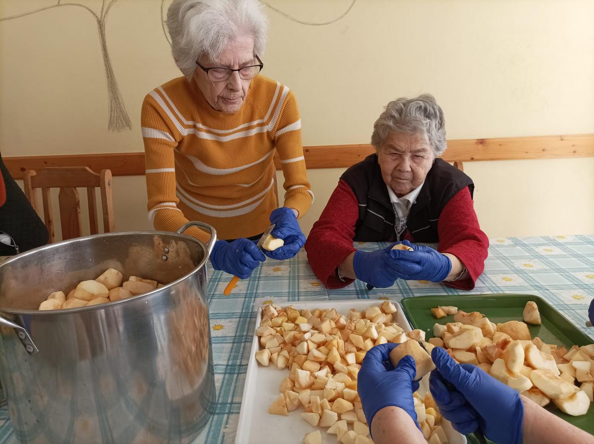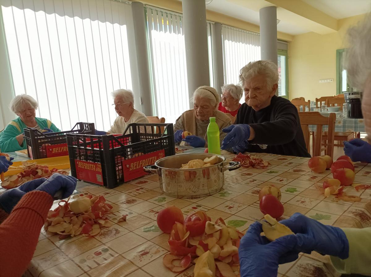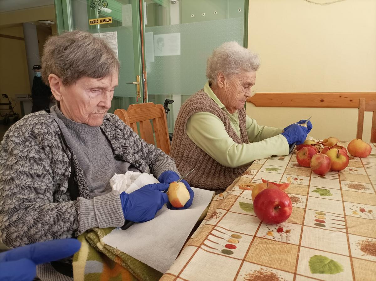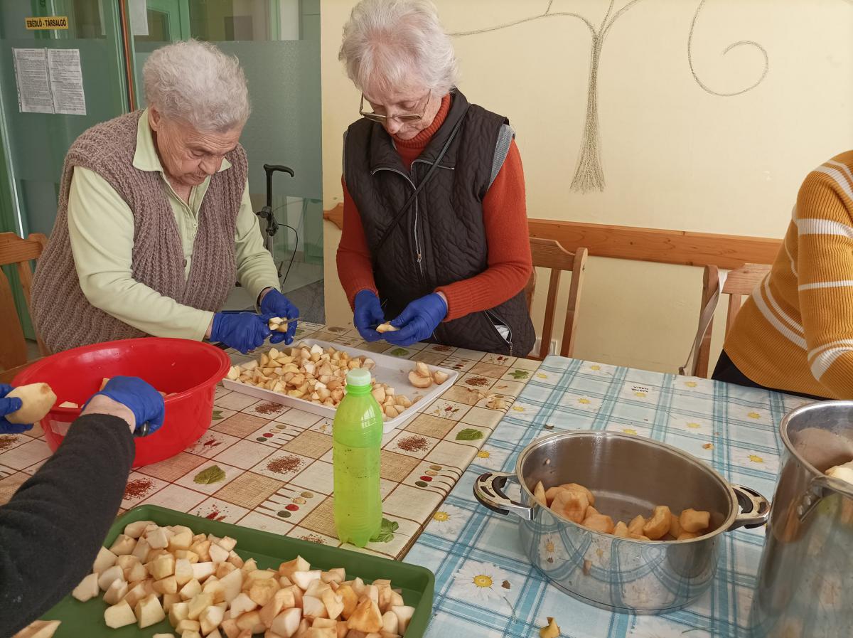 Almát pucoltak, melyből kompót és egy elektromos lekvárfőző segítségével finom almalekvár készült. A kompót és az almalekváros piskóta megédesítette napjainkat.