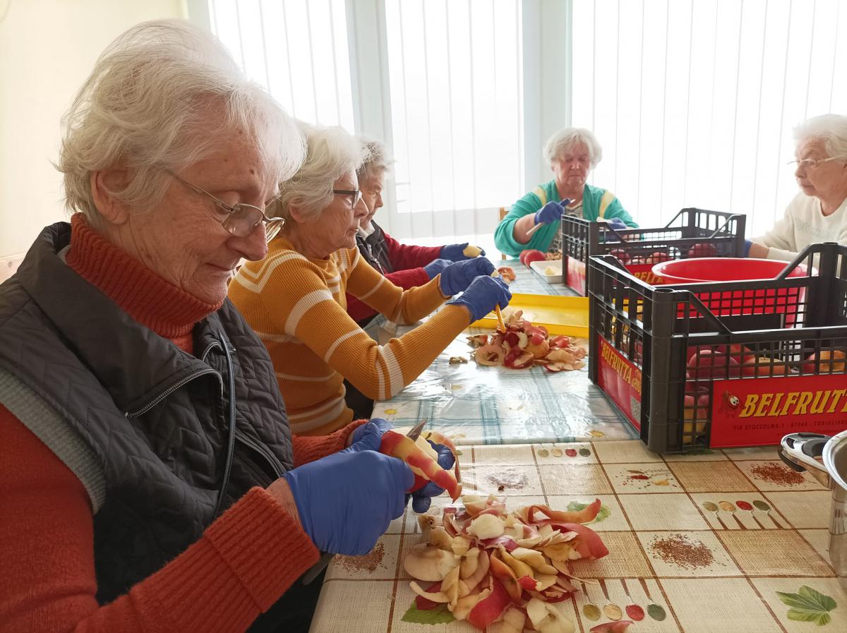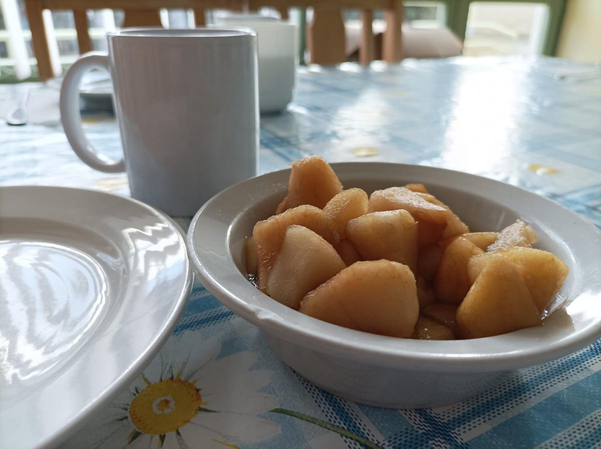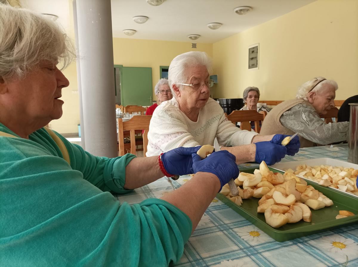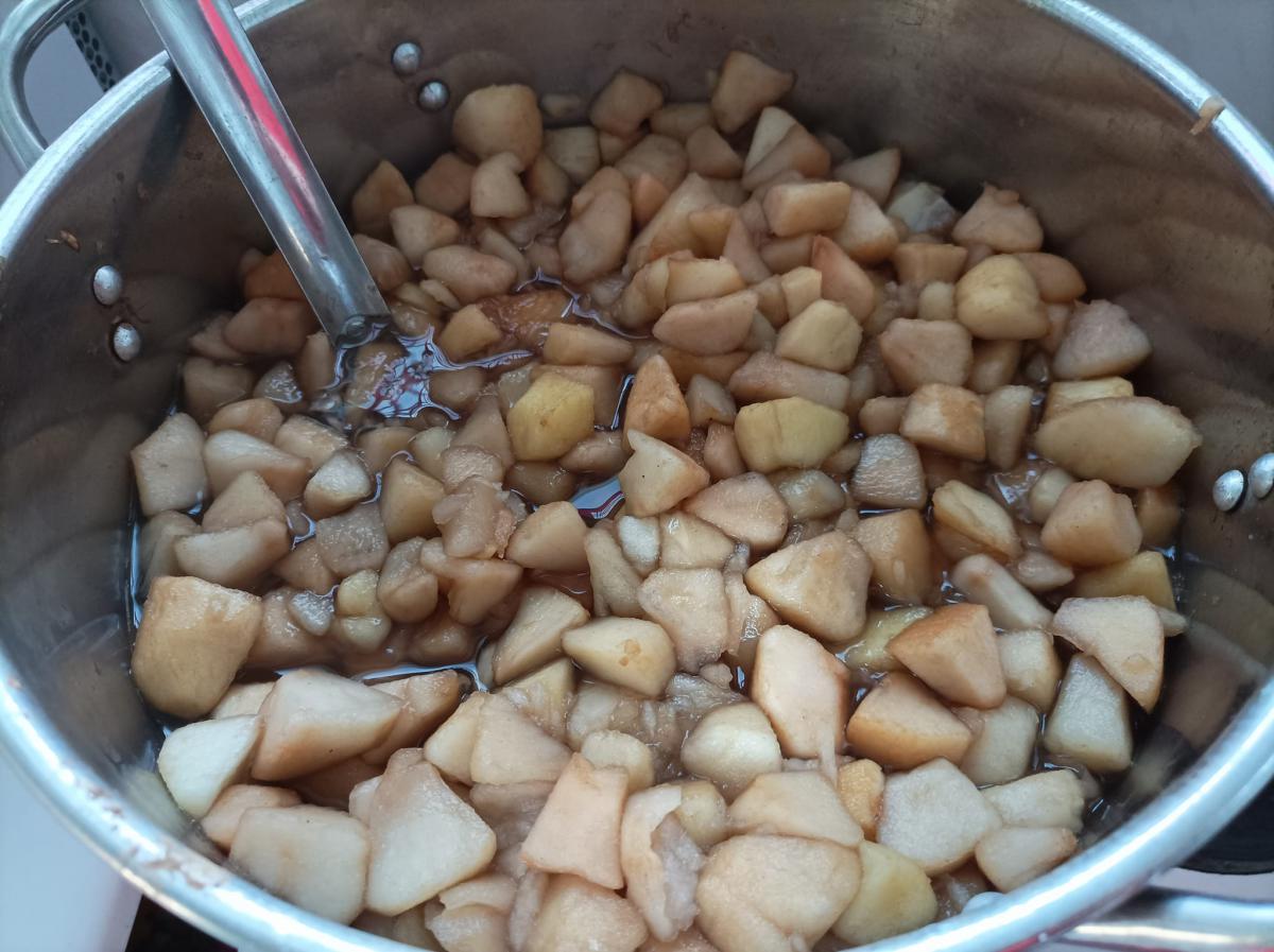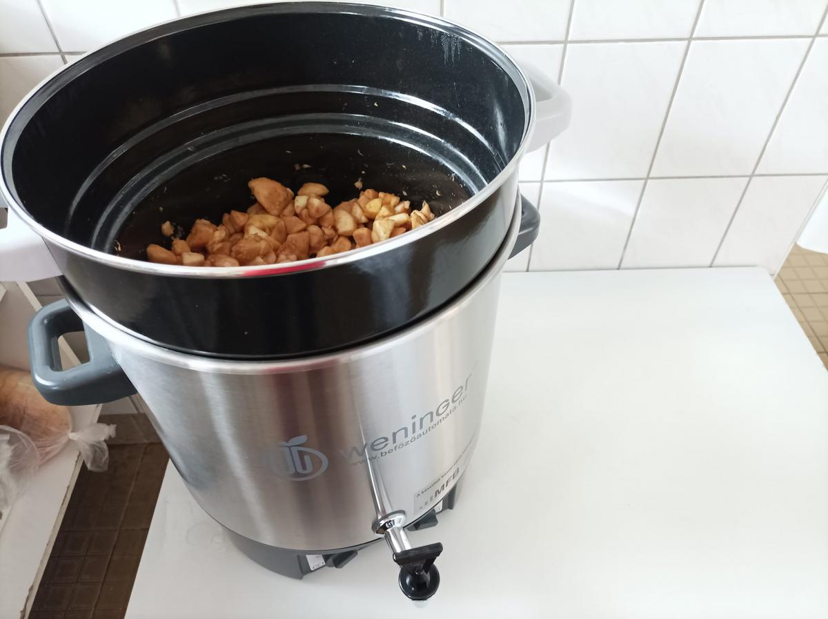 Almát pucoltak, melyből kompót és egy elektromos lekvárfőző segítségével finom almalekvár készült. A kompót és az almalekváros piskóta megédesítette napjainkat.