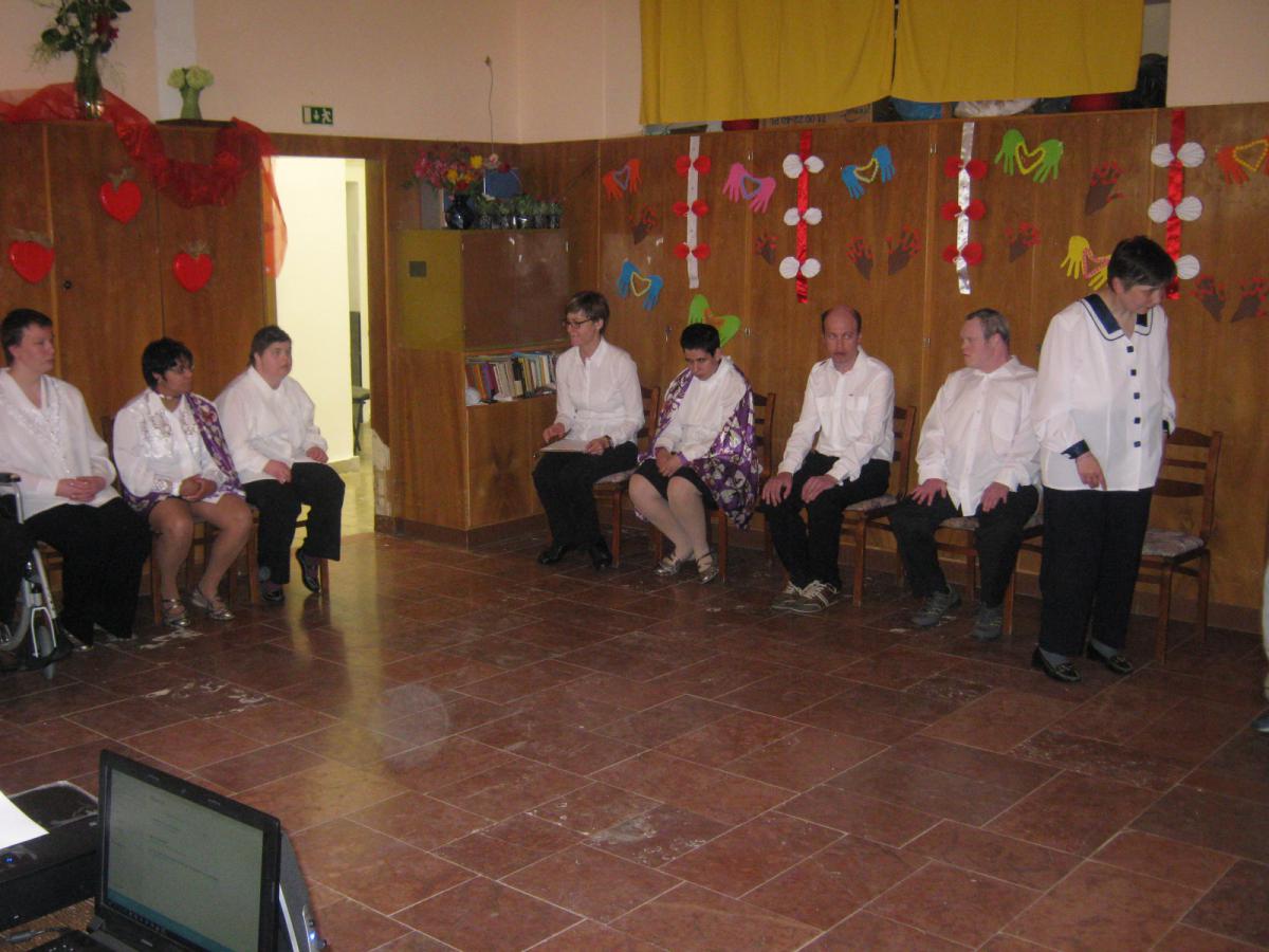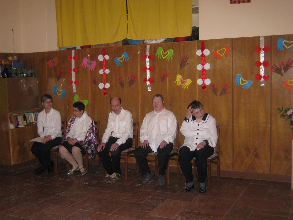 A fogyatékos fiatalok hosszú hónapok óta készültek erre az ünnepre, új verseket,éneket és táncot tanultak. Mosolygós tekintetű anyukák, gondnokok és nővérek fogadták a megható megemlékezést.