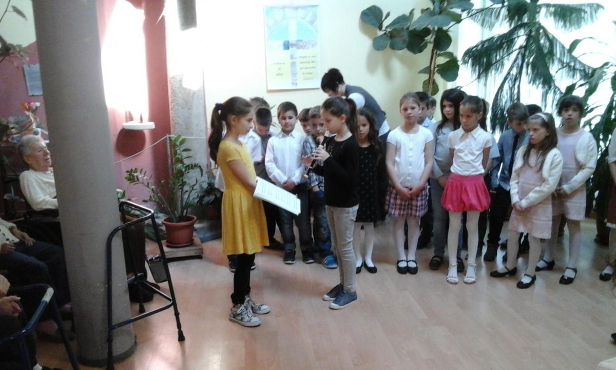A Reményik Sándor Általános Iskola 2.osztályos tanulói verses – zenés – táncos összeállítással szórakoztatták a Túróczy – ház lakóit 2016. május 9-én.