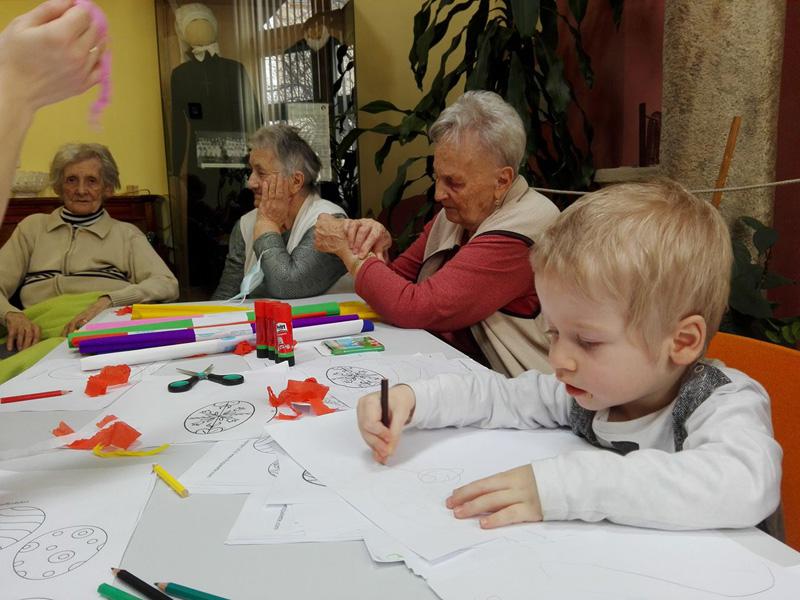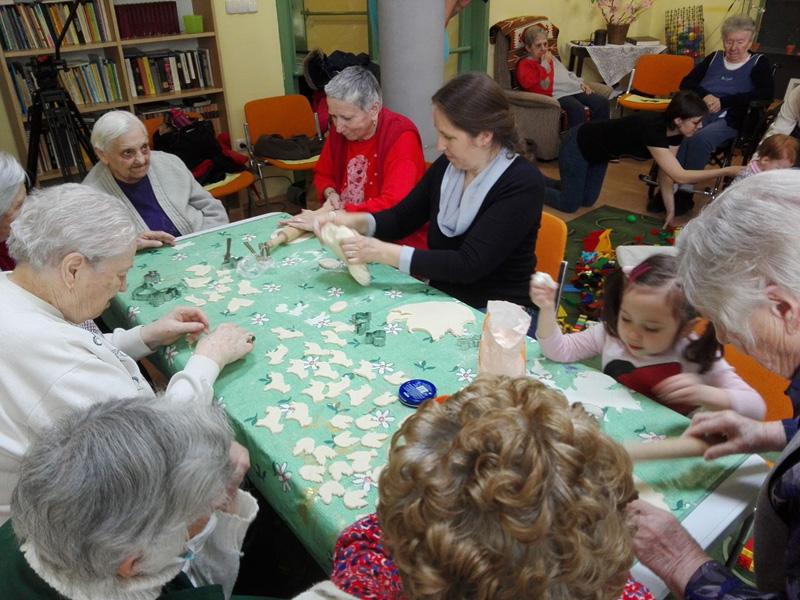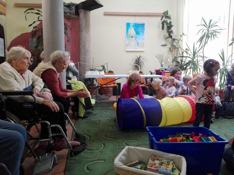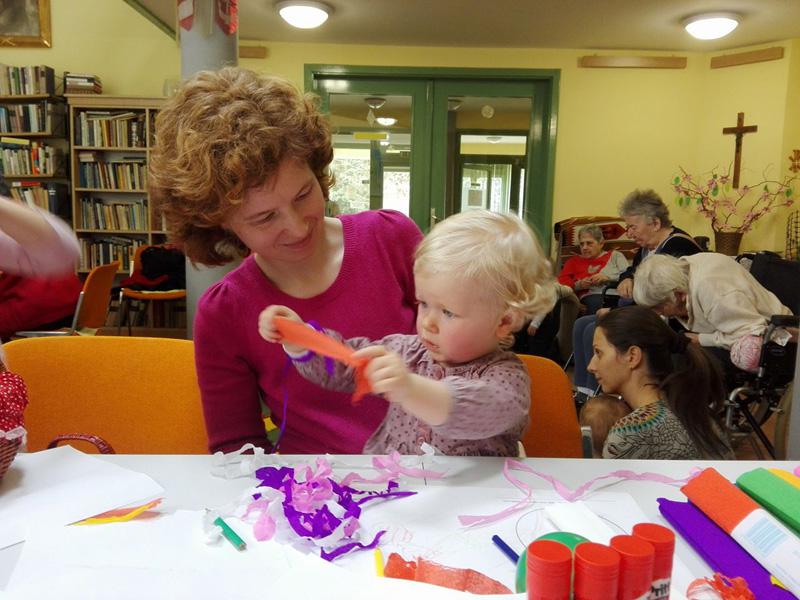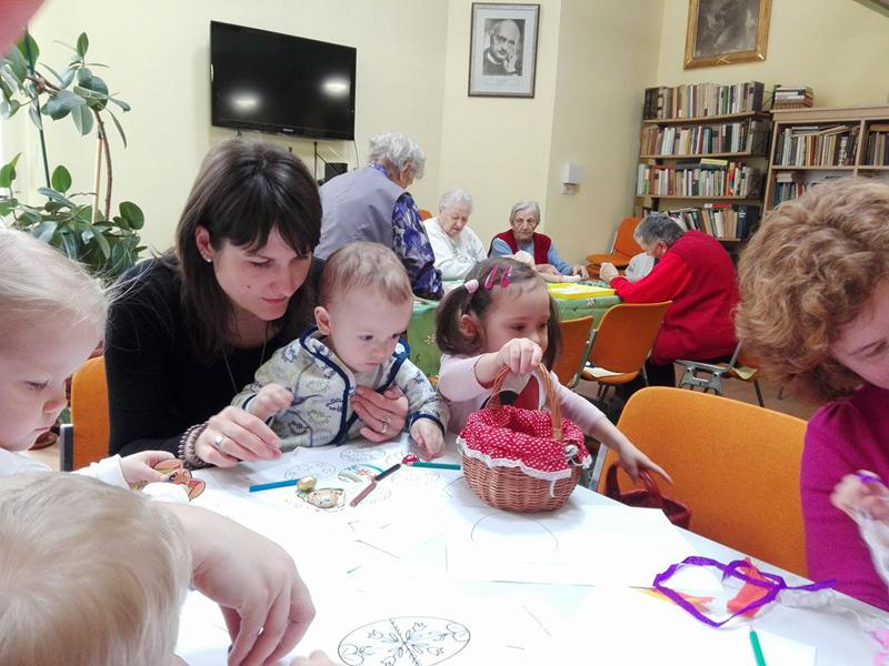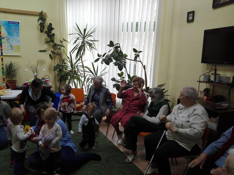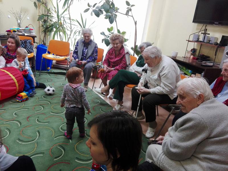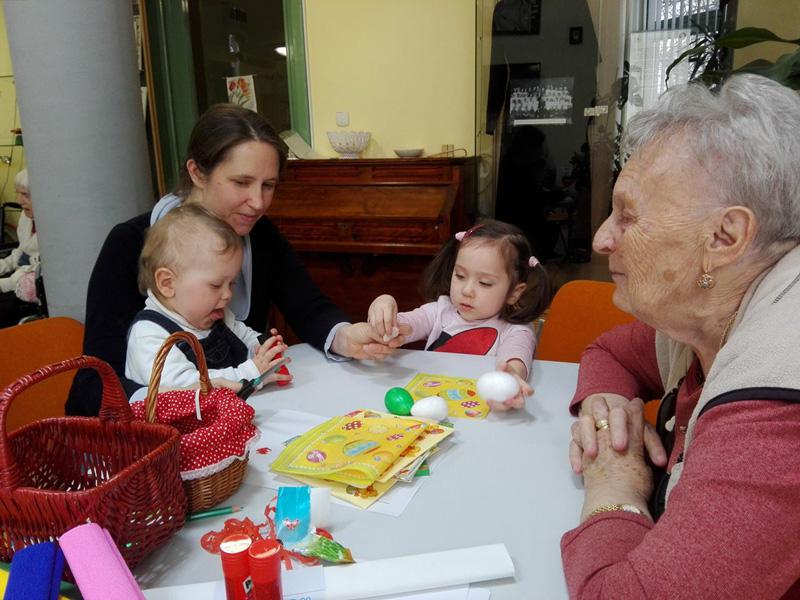 Nagyon meghitt hangulatban telt a délelőtt, mosolygott kicsiny gyermek és idős egyaránt. Közös áhitatot tartottunk, sok játékra és húsvéti kézműveskedésre volt lehetőség. Idős, ráncos kezek segítették a néha még ügyetlen gyermek kezeket. Lakóink számára mindig nagy öröm, ha gyermekek kacagásától, nevetésétől "hangos" a ház.