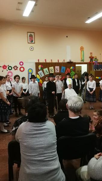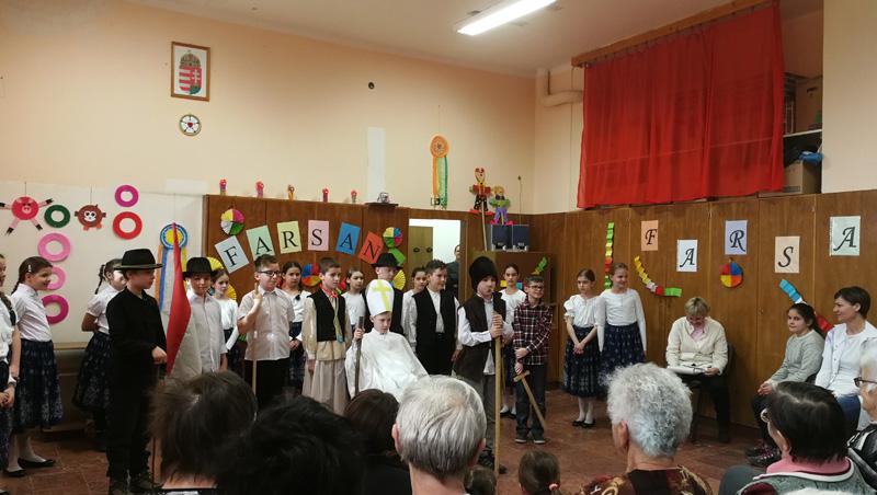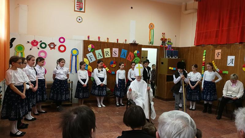 Színvonalas műsorral ismertették meg velünk az általunk kevésbé ismert balázsolás népszokást. E népszokás eredete Szent Balázs püspököz kötődik, aki a fulladástól mentett meg egy gyermeket. Balázs napján a diákok jelmezbe bújva adományokat gyűjtöttek iskolájuk számára.