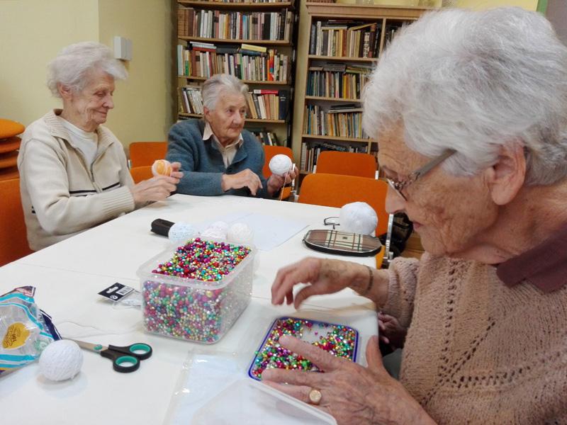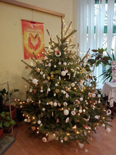 December közepére elkészültek a saját készítésű karácsonyfa díszeink. A szeptember óta szorgoskodó kezek szebbnél-szebb gömbdíszeket, horgolt és hímzett, varrott díszeket készítettek. Különböző technikákat próbáltunk ki, s aztán a saját díszekkel együtt feldíszített karácsonyfa igazán meghitté tette az otthon lakóinak ünnepét.