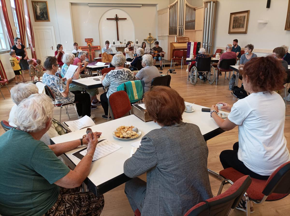 A finom kávé, beszélgetések, az áhítat és a sok-sok ének lehetőséget adott a kapcsolódásra egymással, a kapcsolódásra Istennel. Hallhattuk, érezhettük, megtapasztalhattuk Isten minket is megszólító üzenetét.