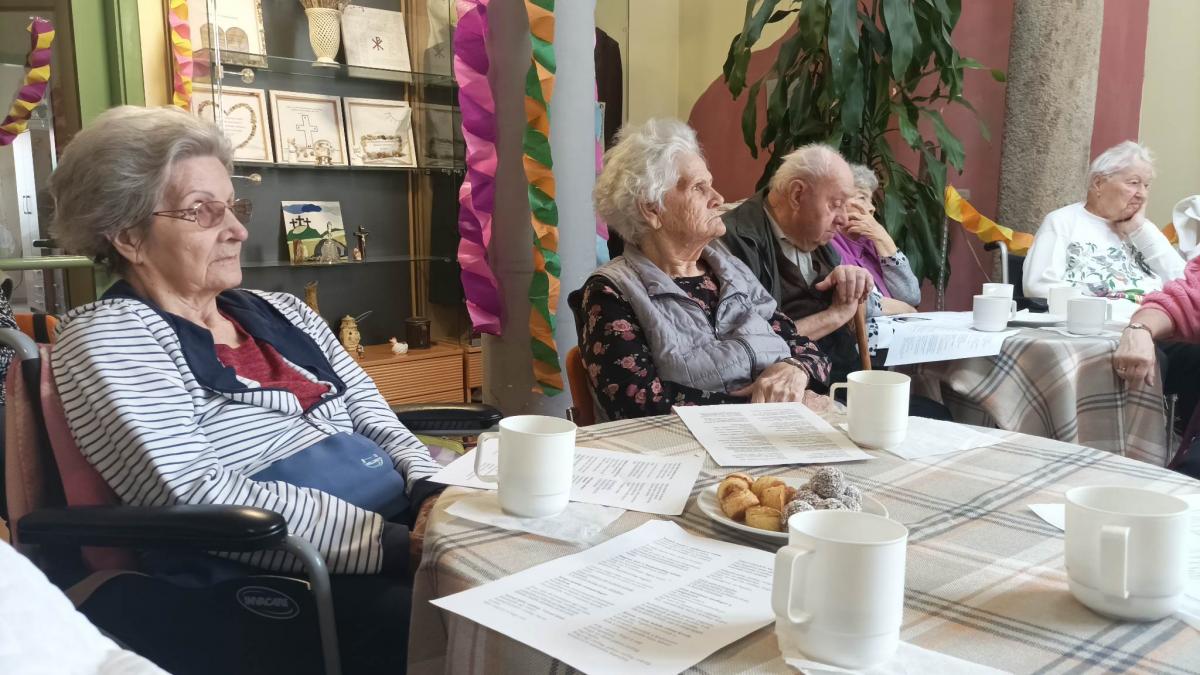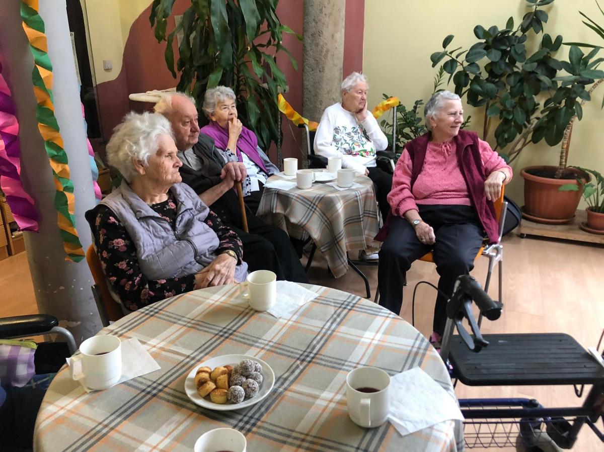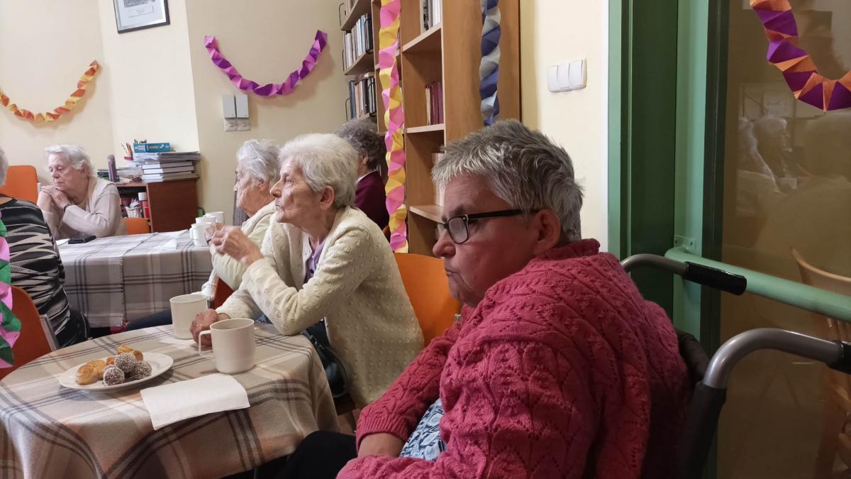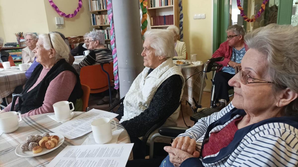A zenés, táncos farsangi műsor közben az idősek sütiztek, teáztak és sokat mosolyogtak.