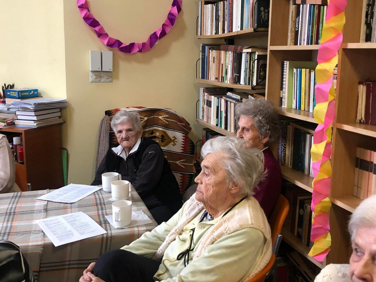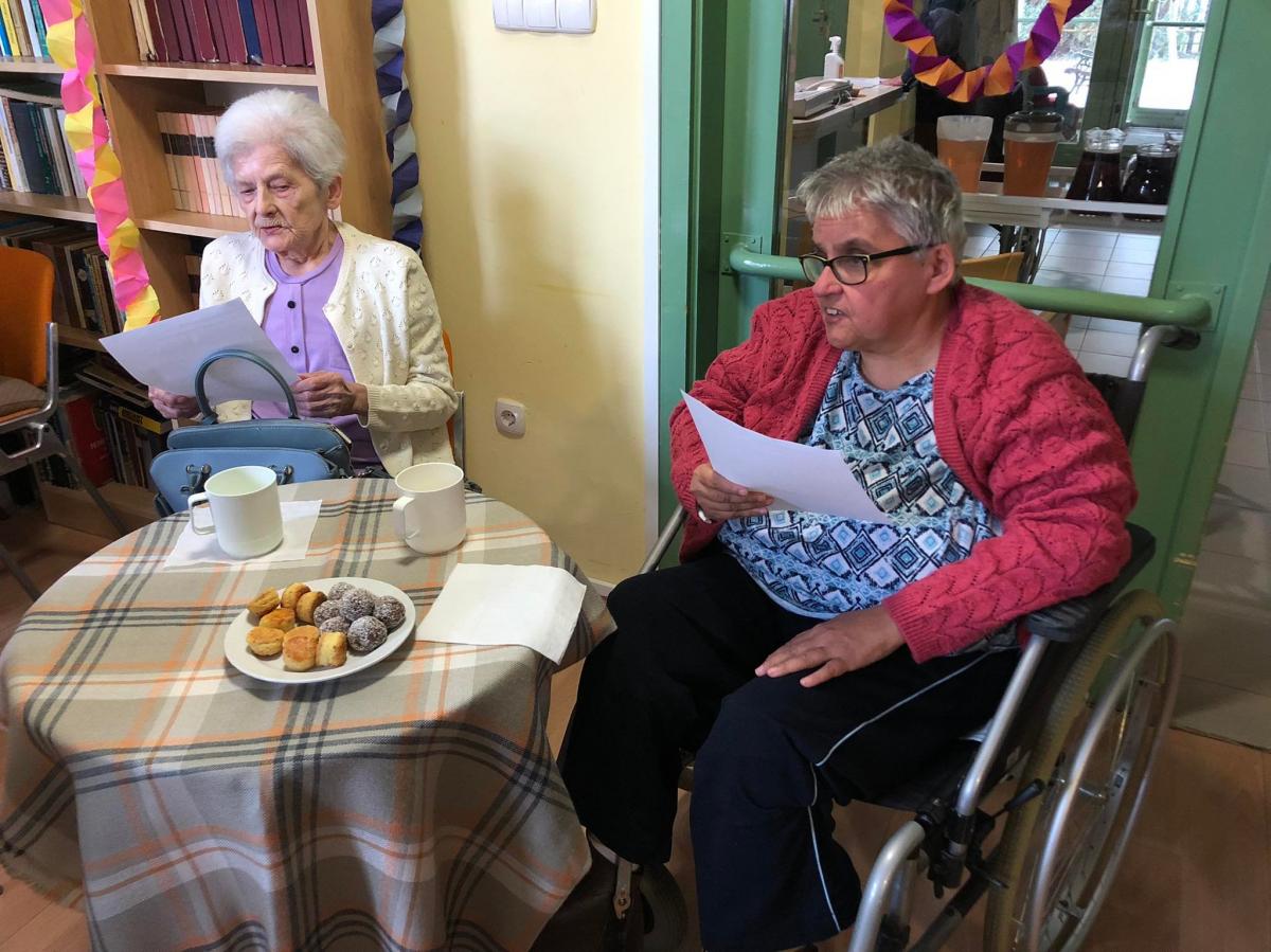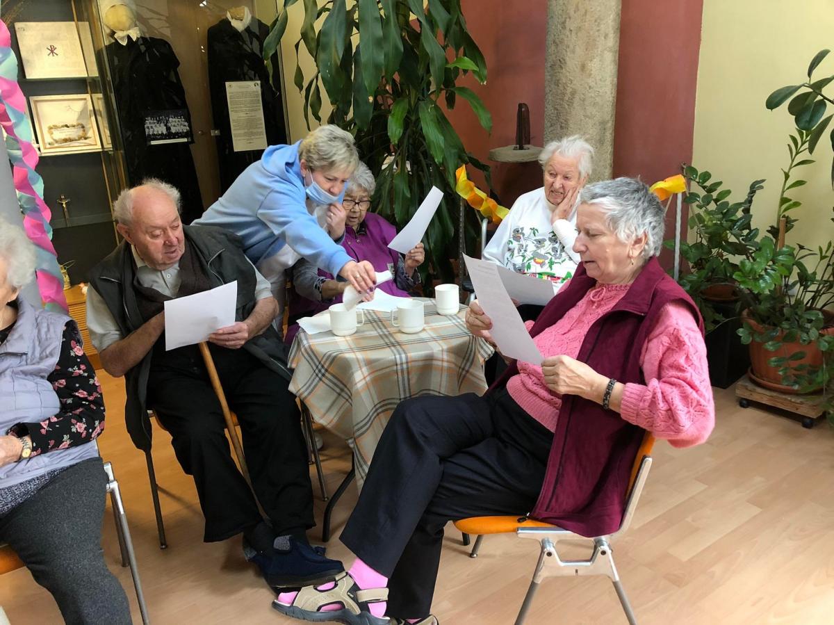 A zenés, táncos farsangi műsor közben az idősek sütiztek, teáztak és sokat mosolyogtak.
