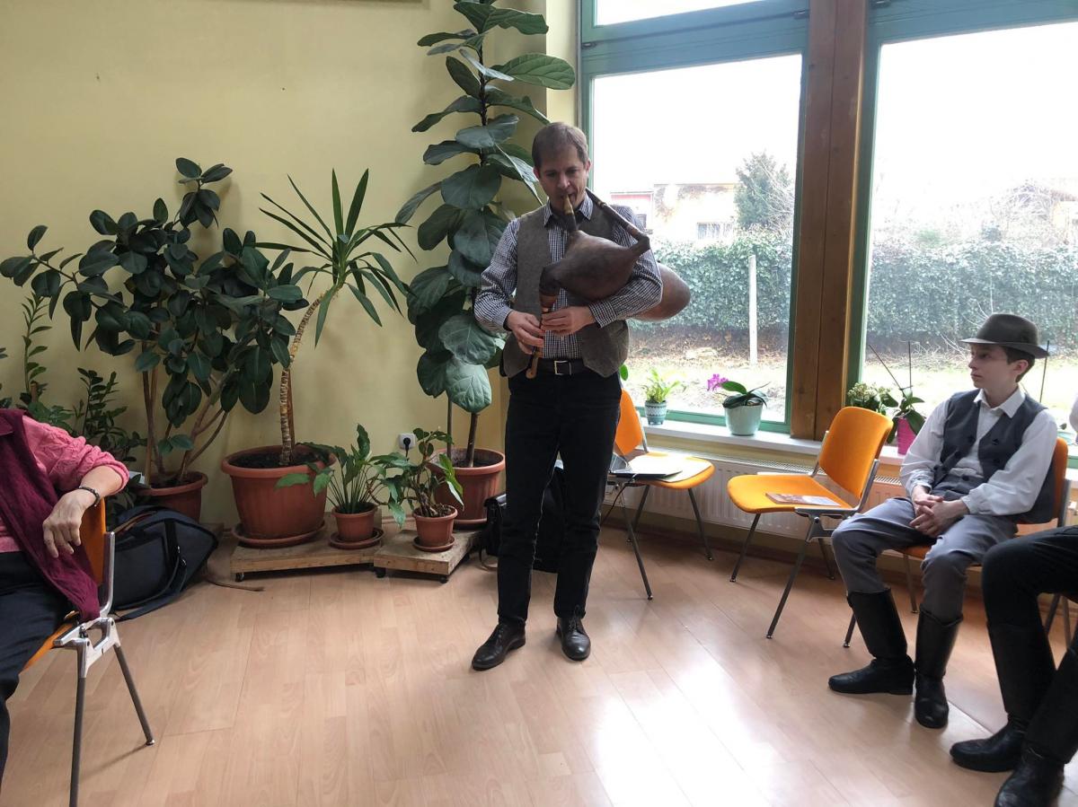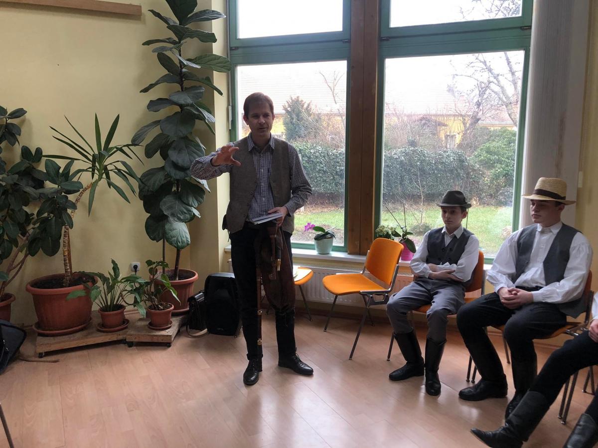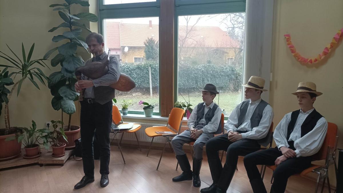 A fiúk az erdélyi Küküllő vidékről hoztak táncokat, míg felkészítőjük Molnár Péter tanár úr két hangszert is megszólaltatott: tekerőt és dudát. Disznótoros köszöntő, csongrádi táncdallamok és nógrádi dudanóták is felcsendültek, sőt elhangzott egy részlet Móra Ferenc: A honti igricek című írásából.