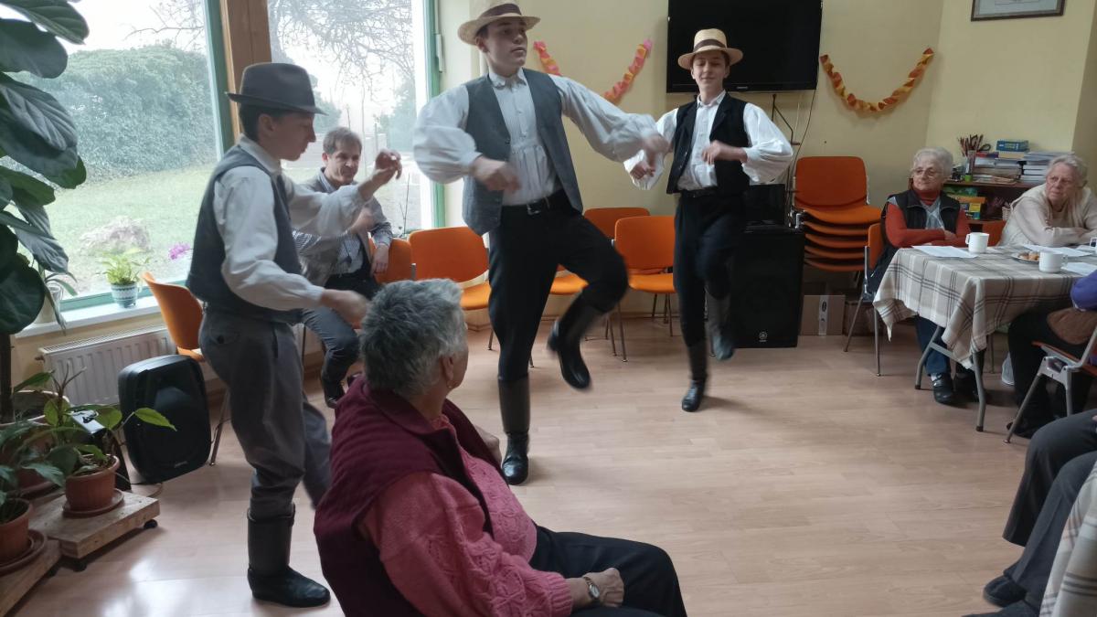 Nem először lepték meg a Túróczy Zoltán Szeretetotthon időseit a Reményik Sándor Evangélikus Általános és Alapfokú Művészeti Iskola néptáncosai műsorral és egészen biztos, hogy nem is utoljára. Név szerint: Gadányi Miklós, Németh Dávid, Csizmazia Gergő nyolcadik osztályos tanulók érkeztek a szépkorúakhoz.