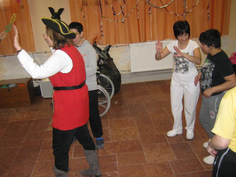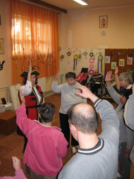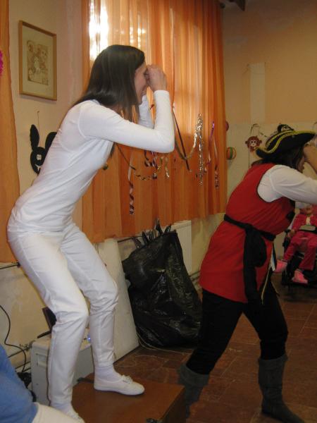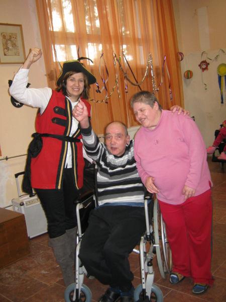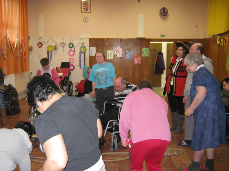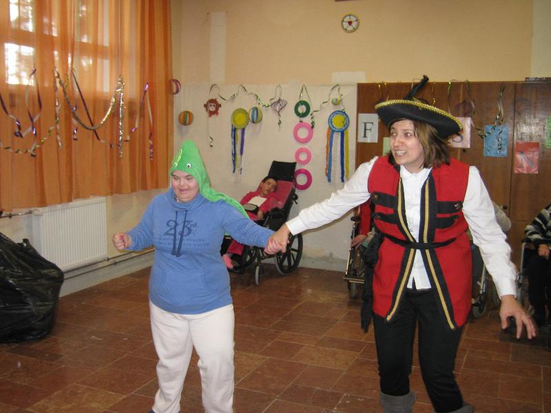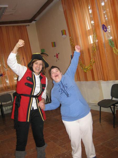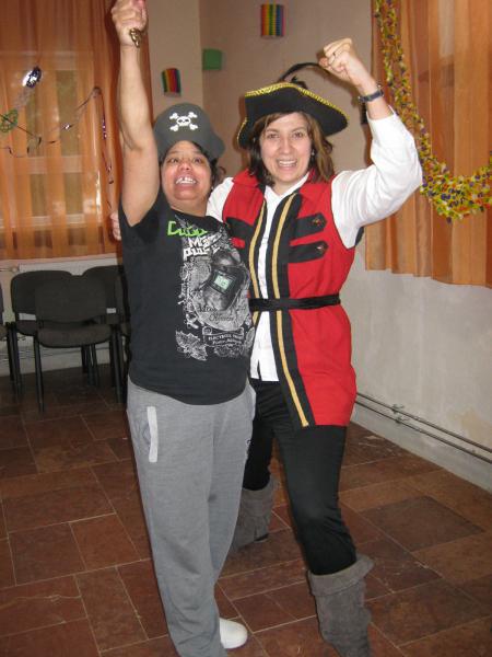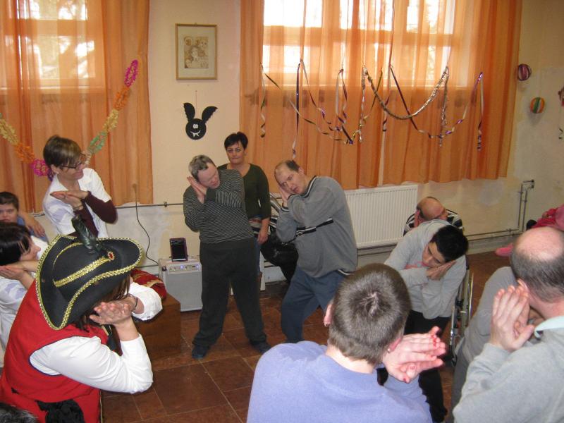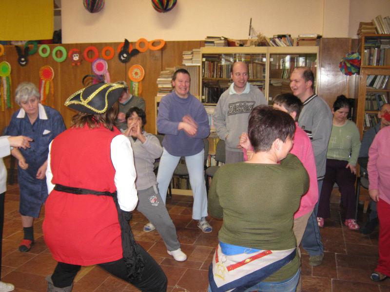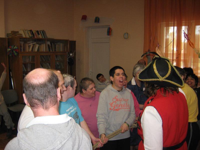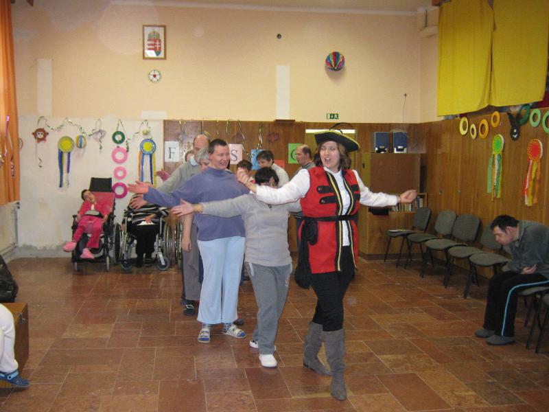 Február 11-én a fogyatékos fiataloknak útó farsangot is tartottunk. Vendégünk Nevenincs kapitány és Ügyetke a segédje volt, akik a kalózok csatakiáltásával hívták játékba a lakóinkat."Kalózok, támadás!"