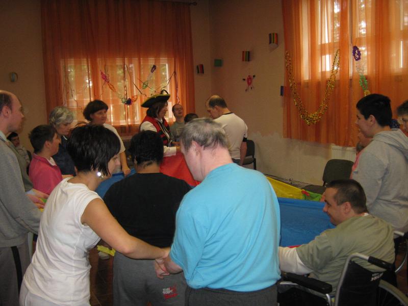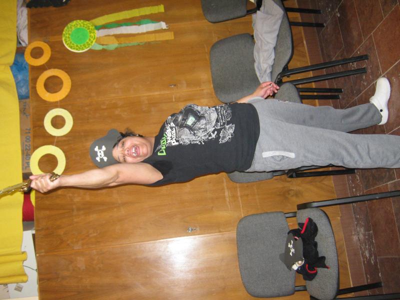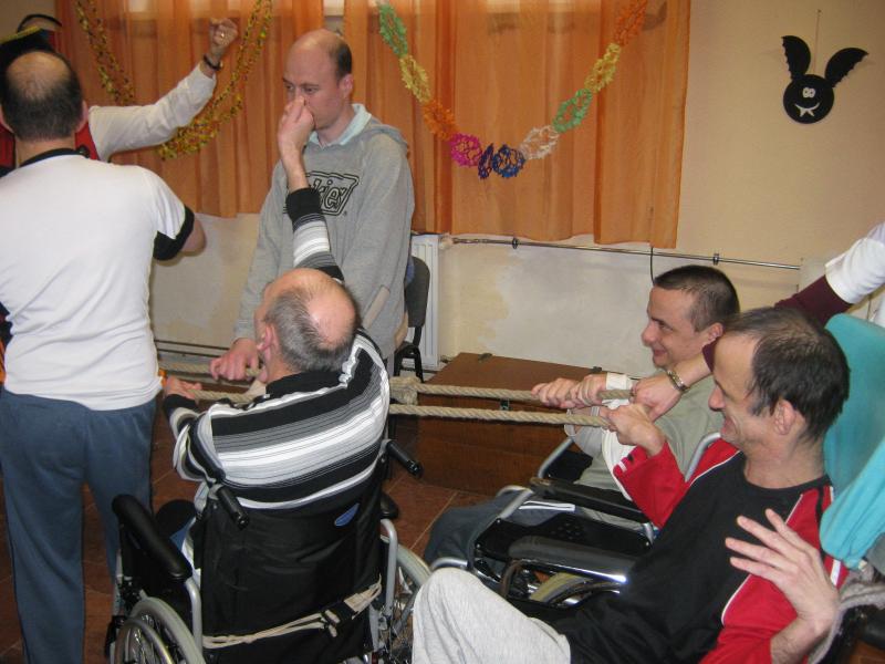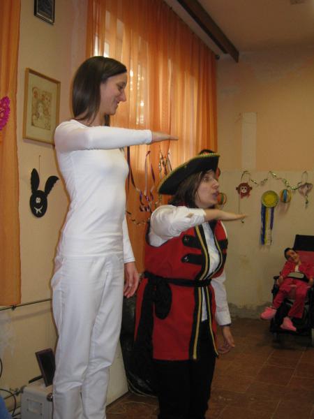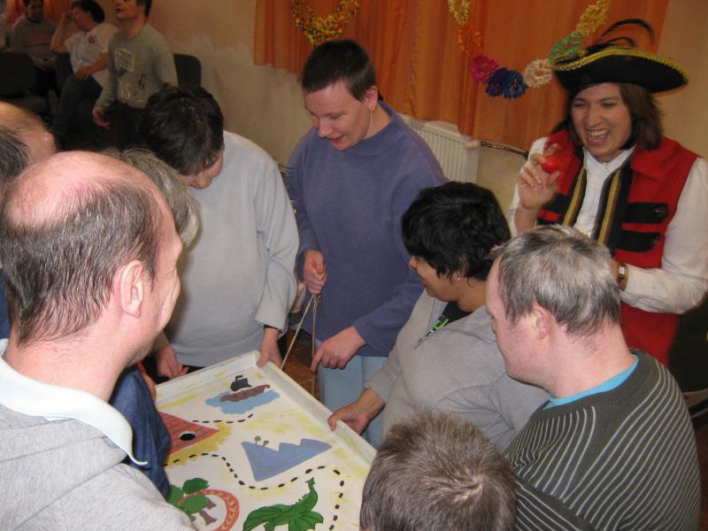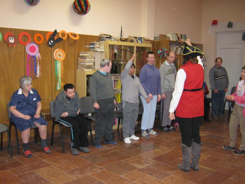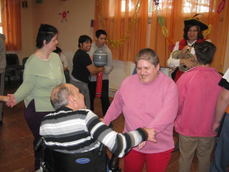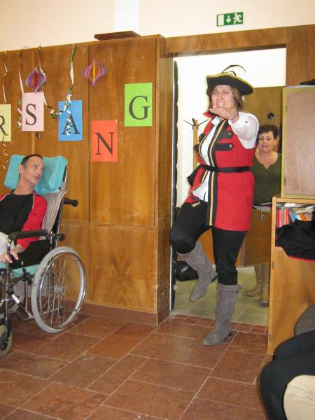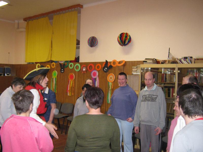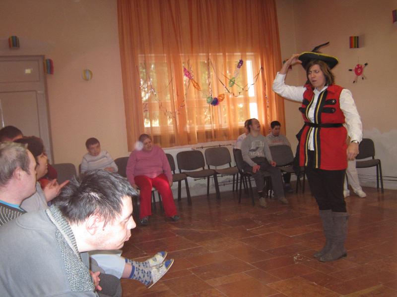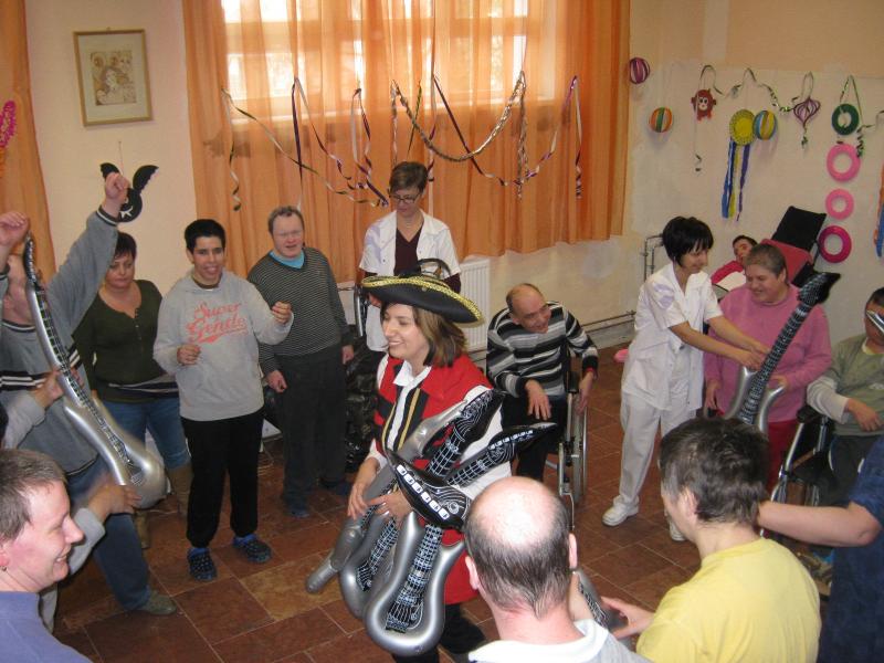 Február 11-én a fogyatékos fiataloknak útó farsangot is tartottunk. Vendégünk Nevenincs kapitány és Ügyetke a segédje volt, akik a kalózok csatakiáltásával hívták játékba a lakóinkat."Kalózok, támadás!"