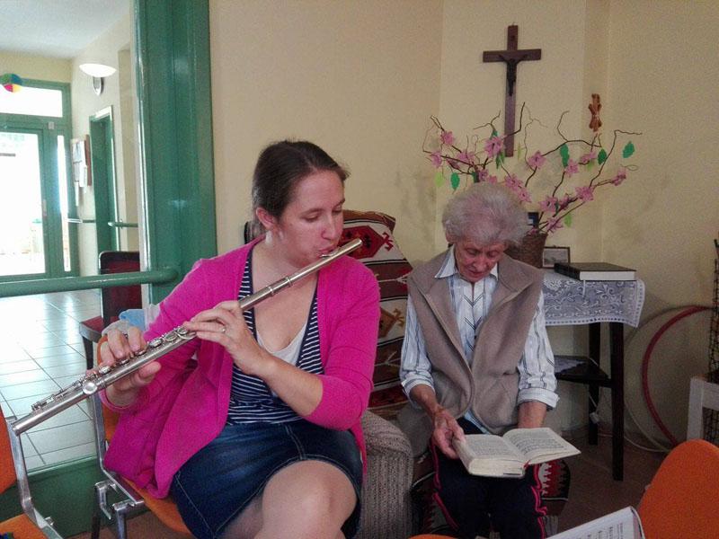 Hangszerjátékával gazdagította a reggeli áhitatot. Fuvolájával kísérte énekünket, s újabb zenei darabokkal is megörvendeztette lakóinkat.