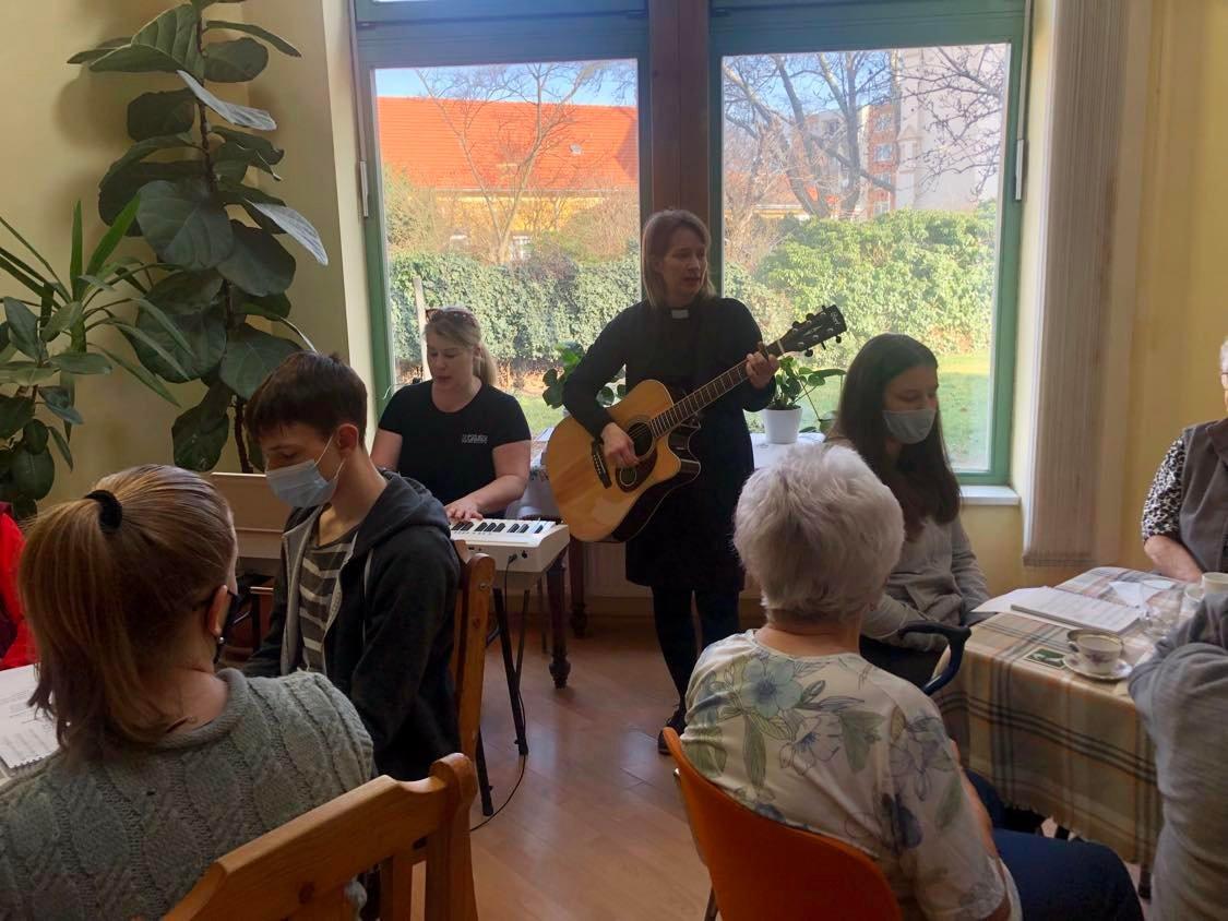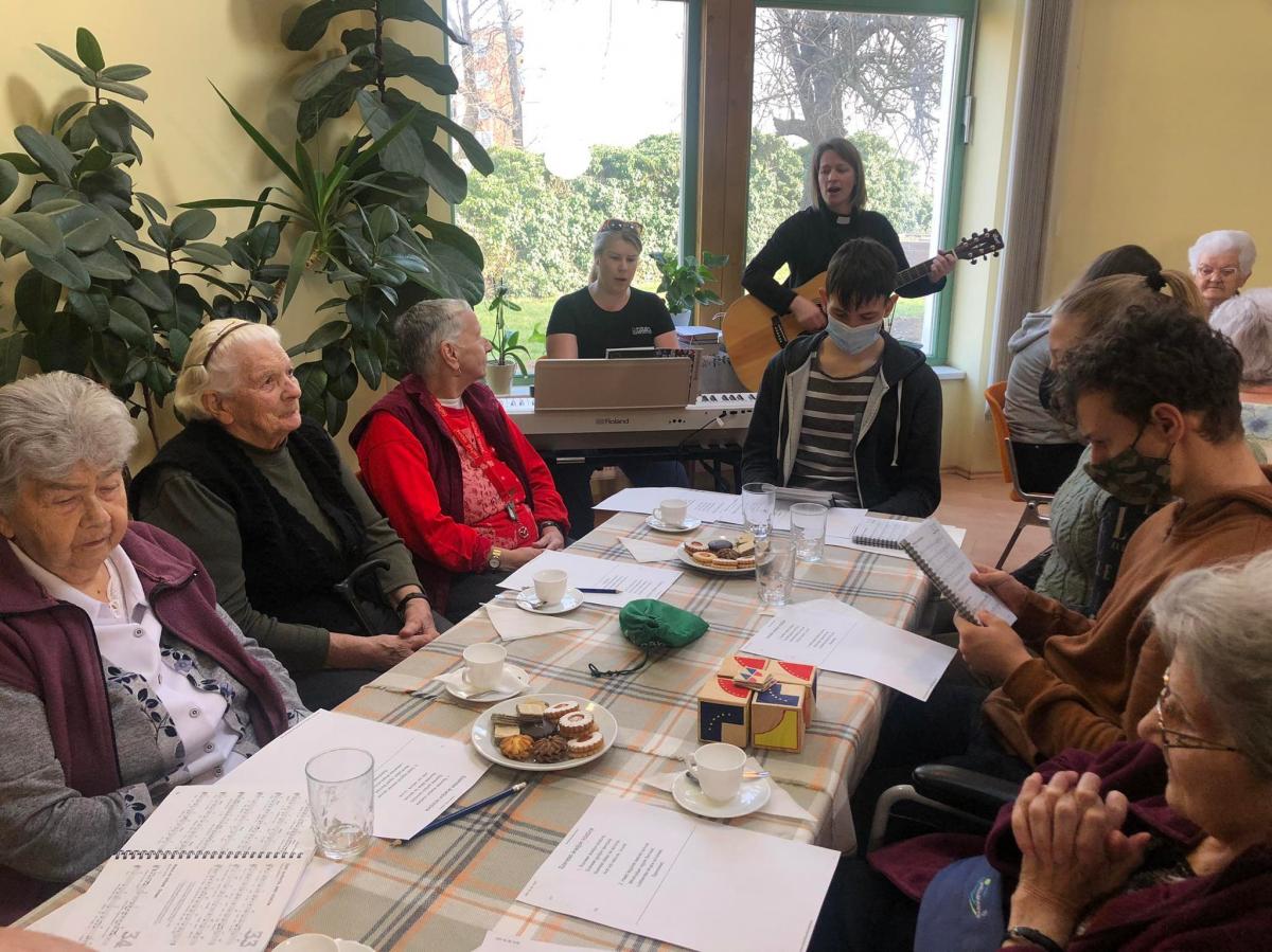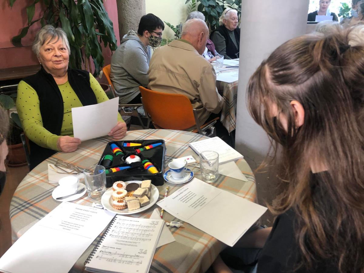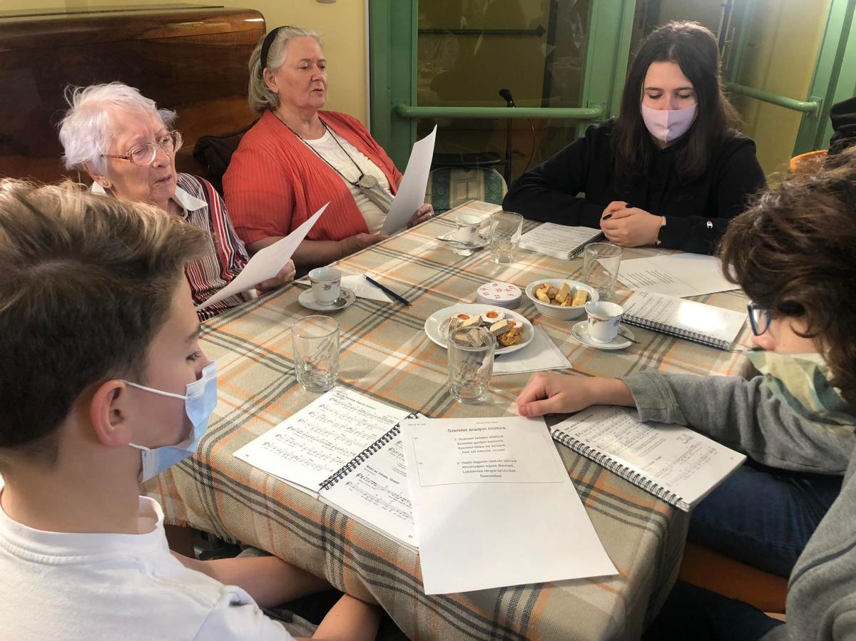 Nagy izgalommal várták a Túróczy Zoltán Szeretetotthon idősei a legutóbbi kávéházi alkalmat, hiszen számukra mindig felüdülést jelent, amikor a Reményik – iskola diákjai érkeznek hozzájuk. Torma-Hasza Mónika iskolalelkésszel és Borsos Beatrix ének-zene tanárral jöttek a nyolcadikos gyerekek, akik néhány éve már jártak a szépkorúaknál.
