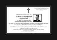 A család kérésére megrendültem közlöm a szomorú hírt, hogy Halasi András József lelkésztestvérünk Keresztelő Szent János ünnepén, élete 28. évében hosszú szenvedés után Teremtőjéhez tért.