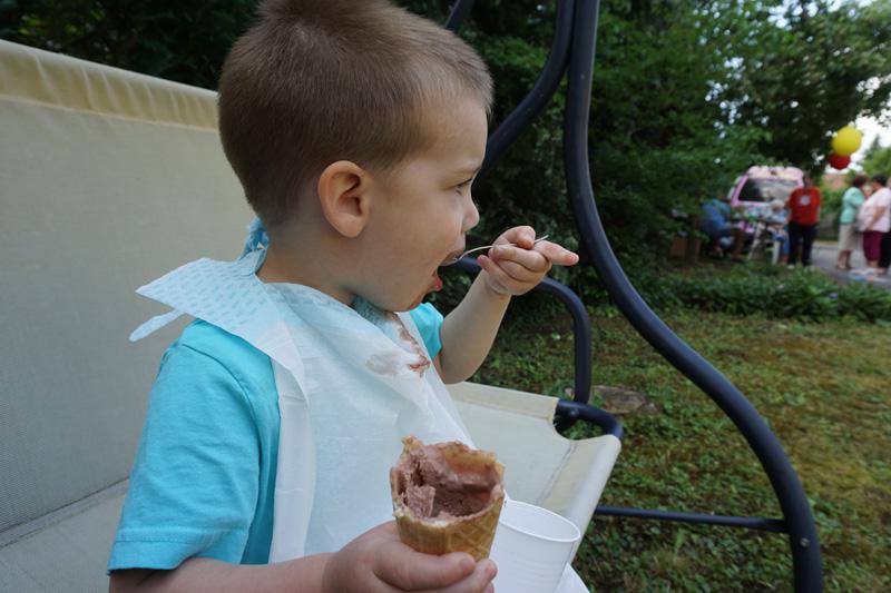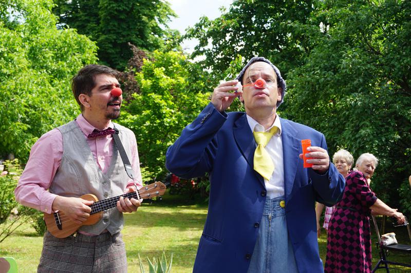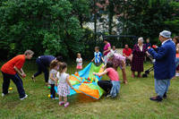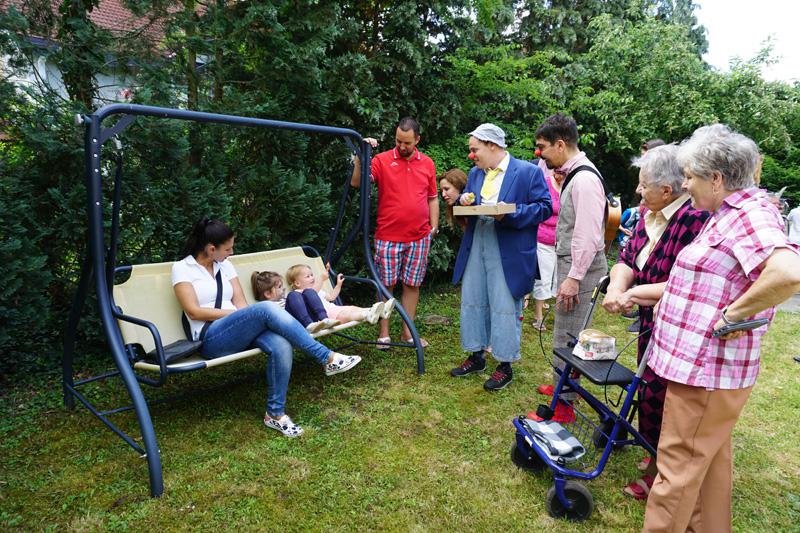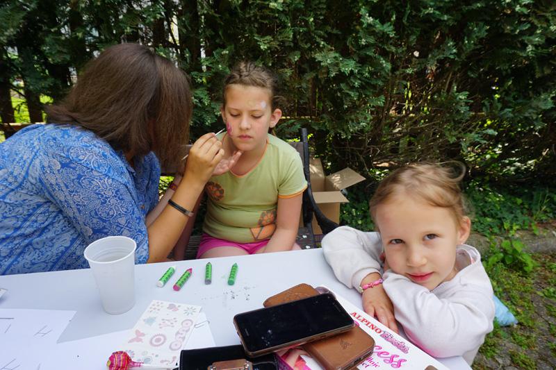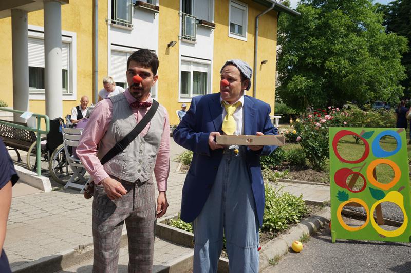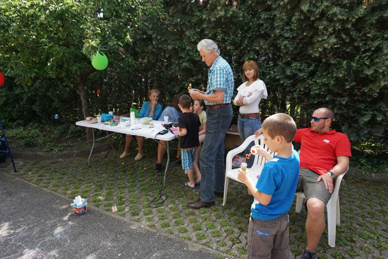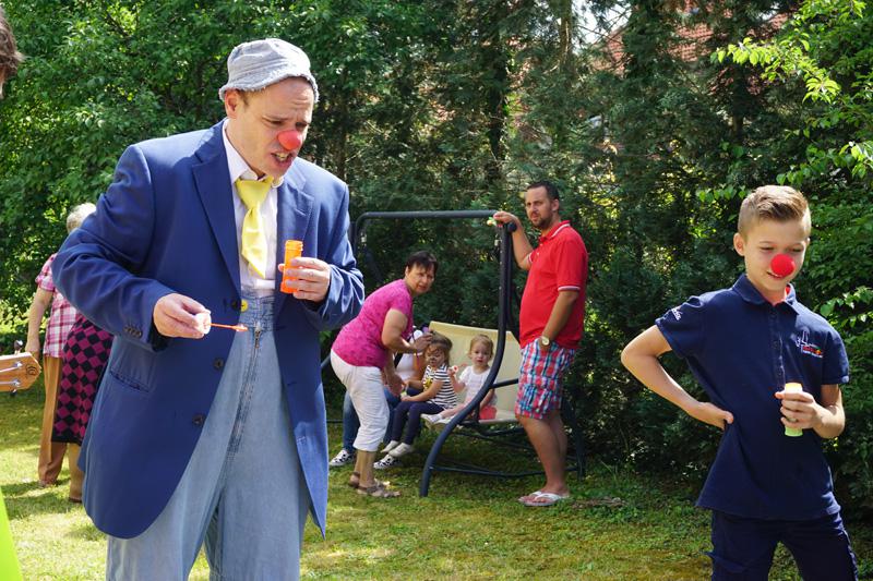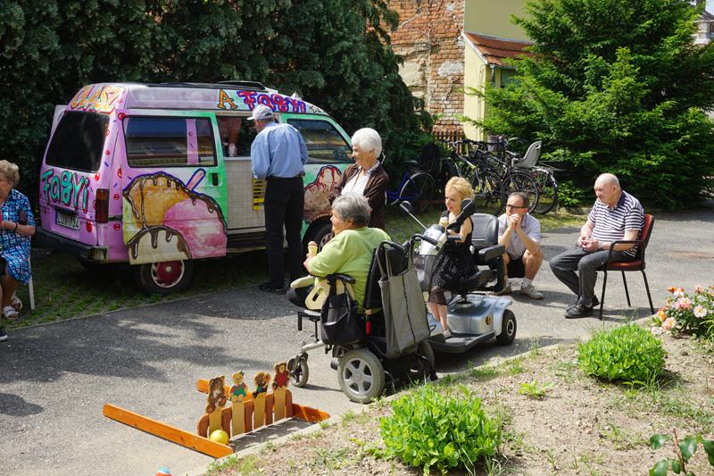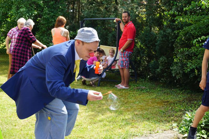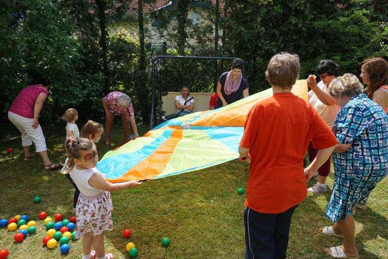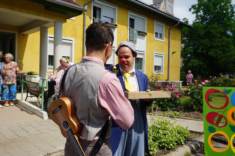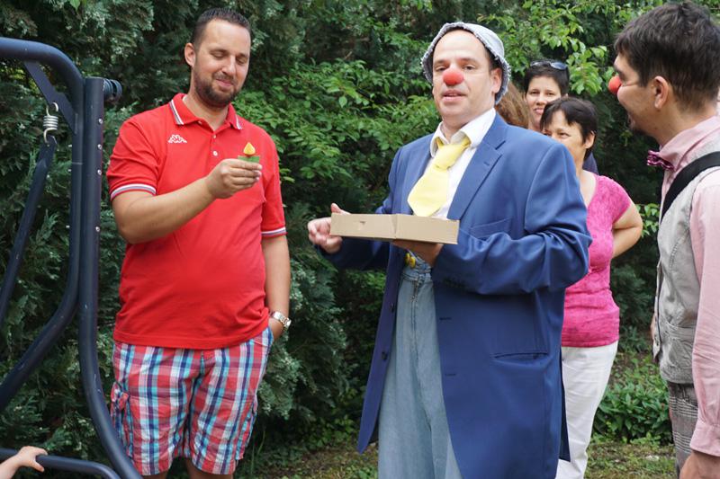 Megtelt az udvar mosolygós gyerekekkel, nagyszülőkkel, boldog dédikkel. Finom fagylalt, arcfestés, célbadobàs, és számos játék várta a vendégeinket. A Dr. Bohóc Mosolyszolgalt két bohóca is ellátogatott hozzánk, akik a legkisebbeket lufiból hajtogatott karddal, virággal ajándékozták meg.