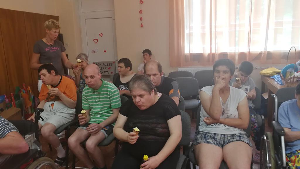 A nagy kedvencek, a fagyalt és a kóla most se hiányozhatott a partiból. A finomságok elfogyasztása előtt egy mókás vetélkedő vette kezdetét. Volt pár kérdés ami az otthonukról, magukról szólt, körtánc, szék öltöztetés. A vetélkedő után kezdődött a fagyizás. Vidám hangulatban telt a délelőtt.