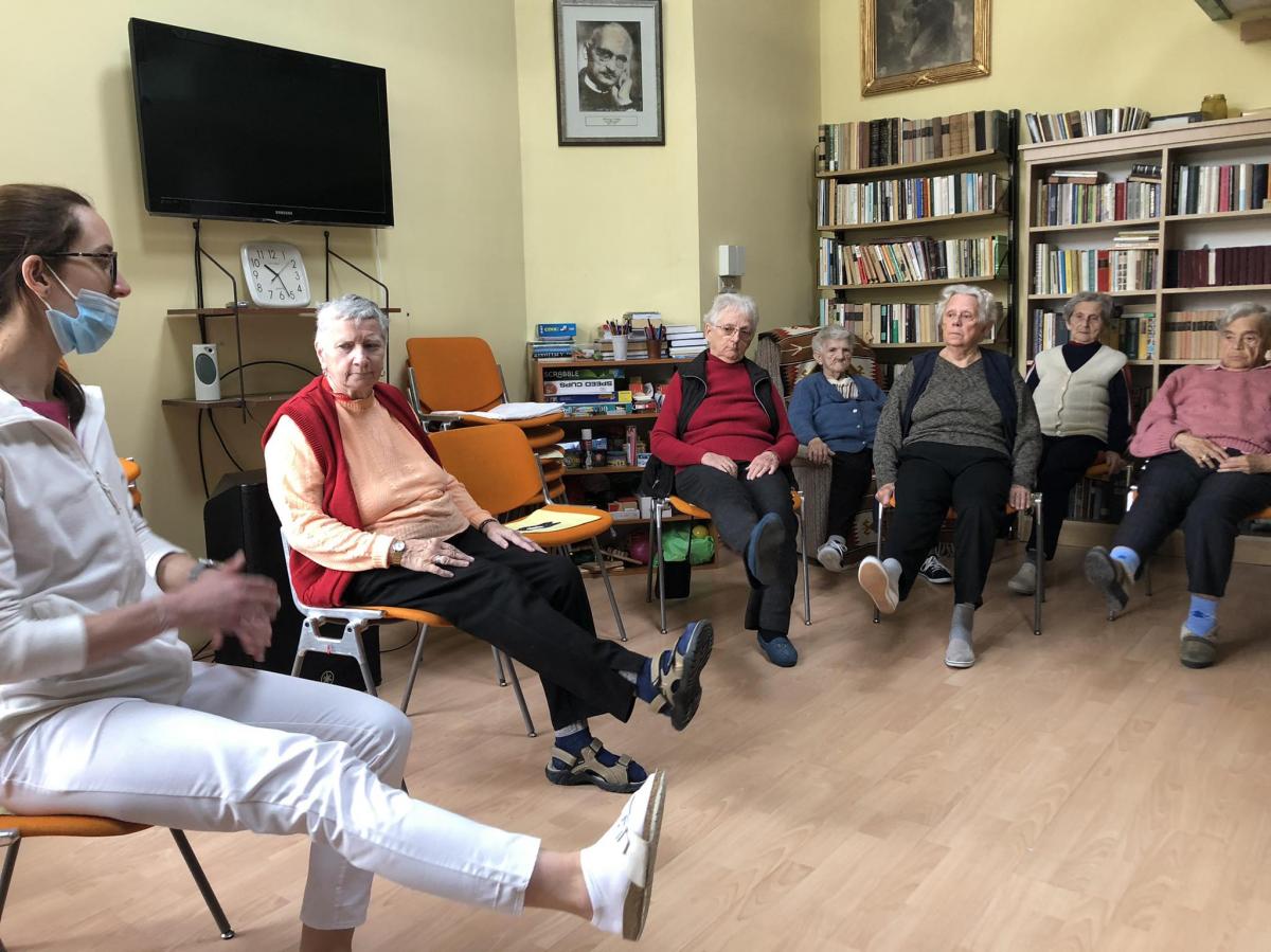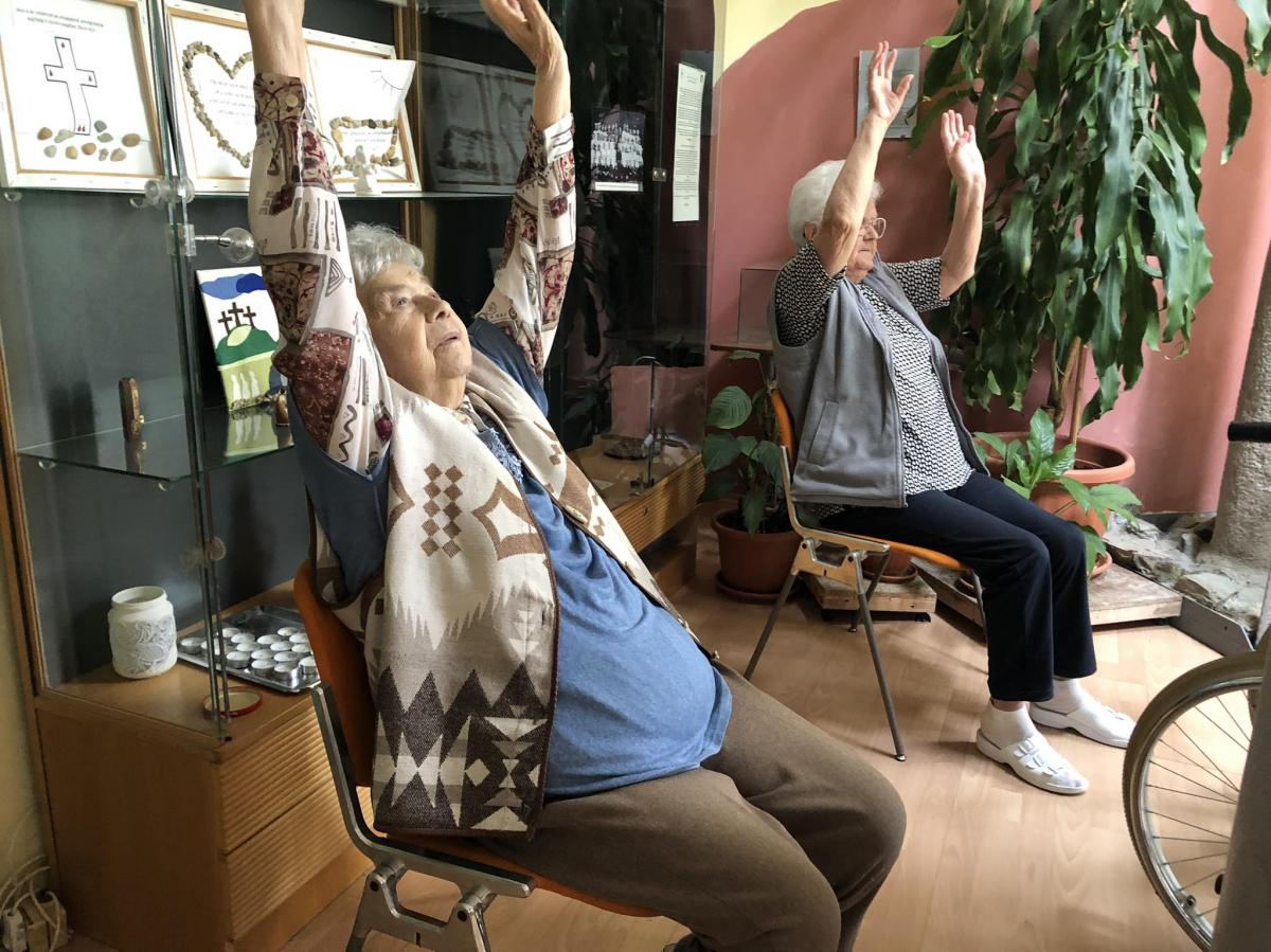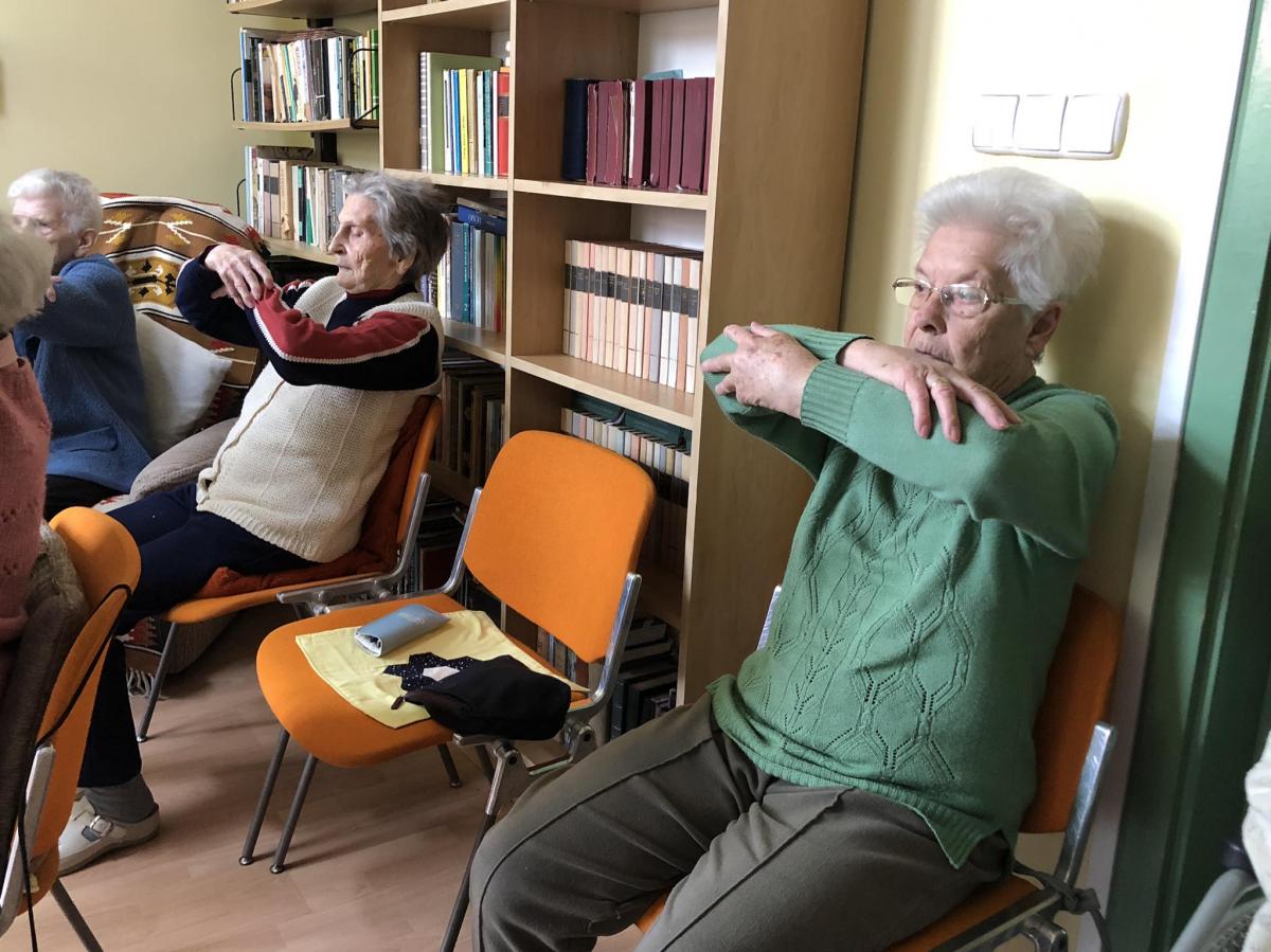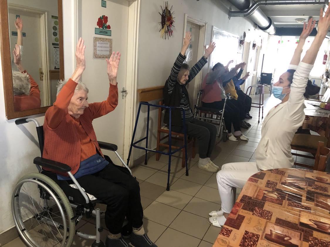 Spanyó-Tölgyes Barbara intézményünk gyógytornásza rendszeresen foglalkozik lakóinkkal. Csoportos és egyéni gyógytornára is van lehetőség. Alkalmanként 20-25 percen keresztül mozgathatják át ízületeiket ellátottjaink.