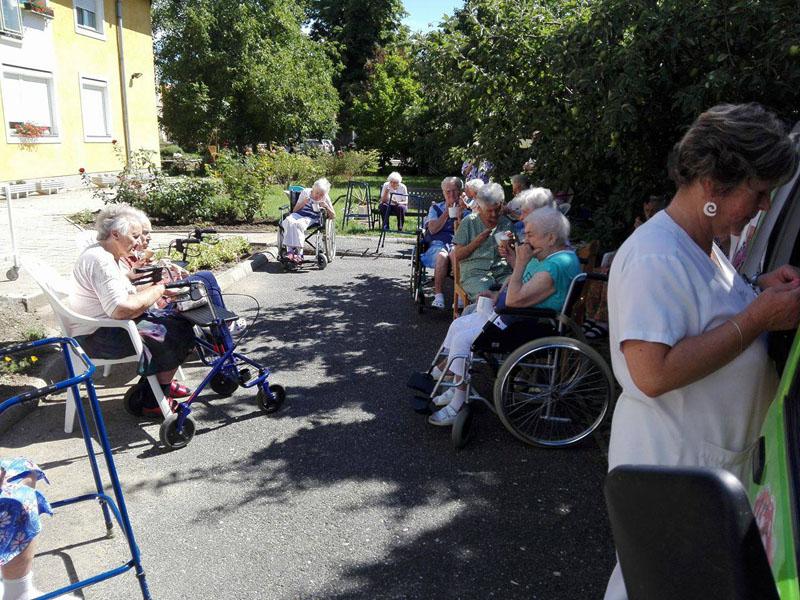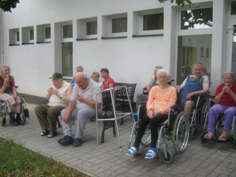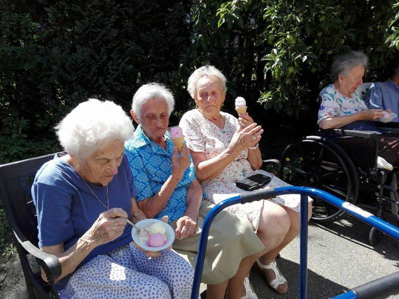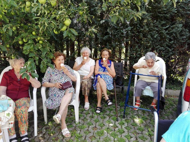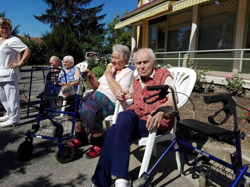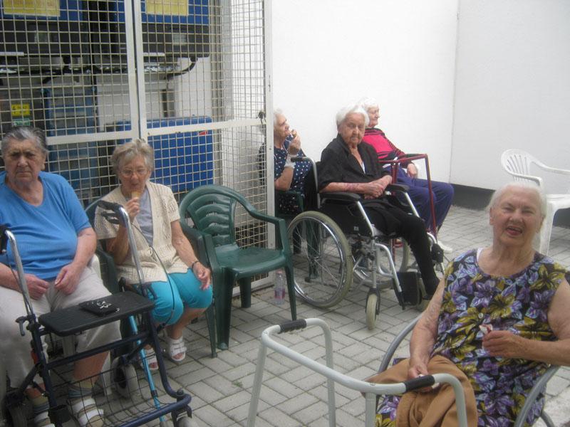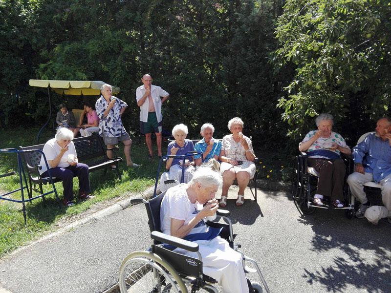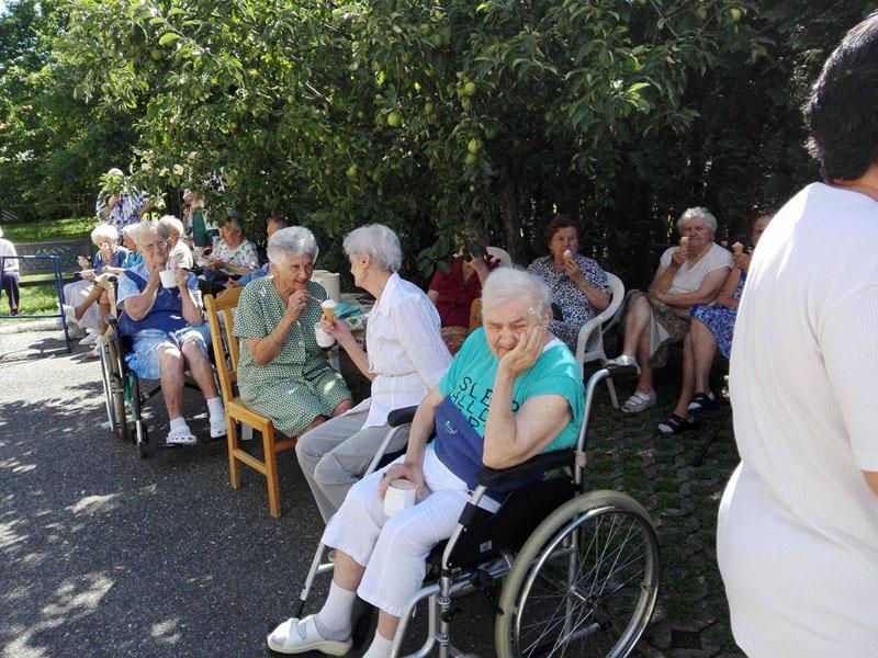 Idős lakóink egy kellemes délelőttöt töltöttek együtt, hűsítő fagyi, zene színesítette a napot.