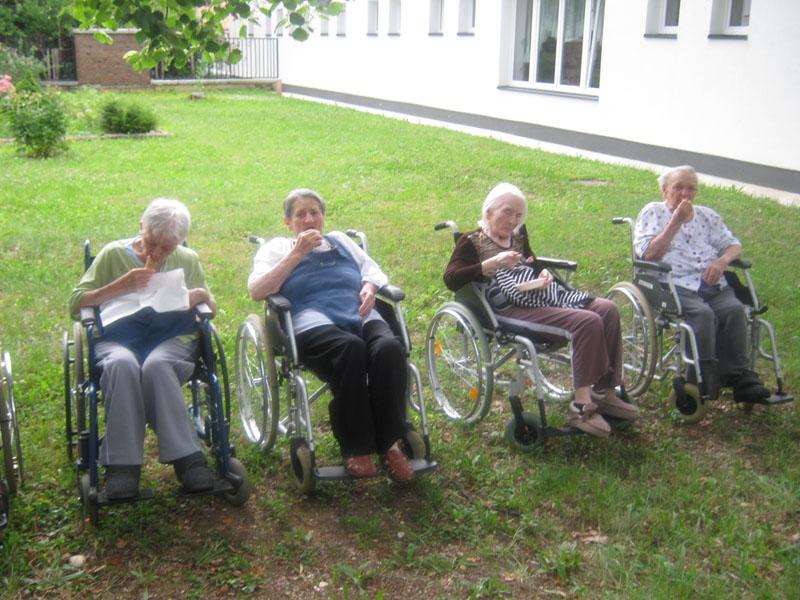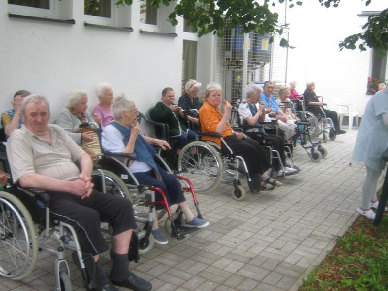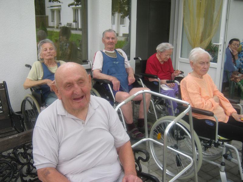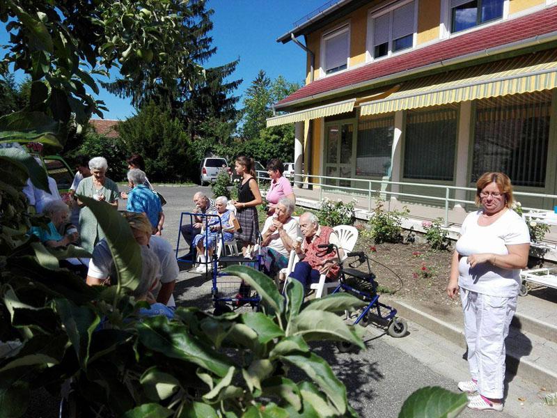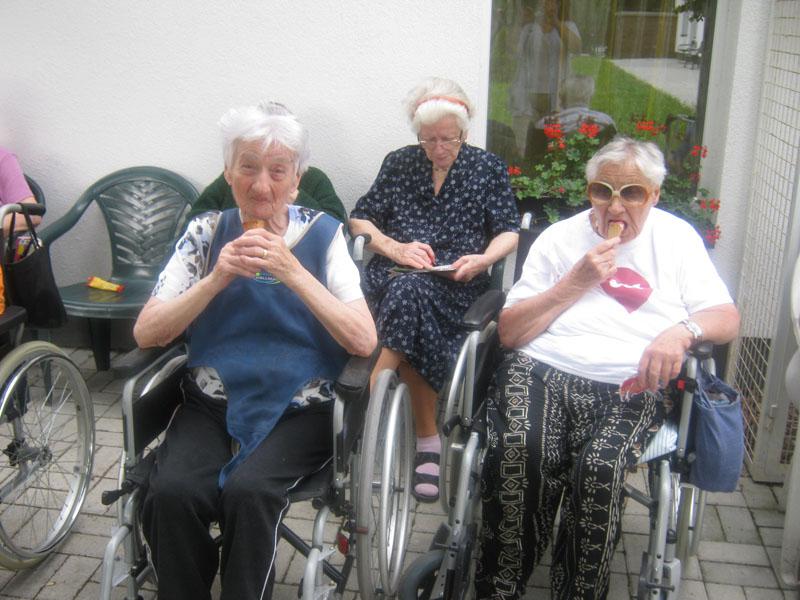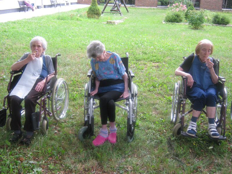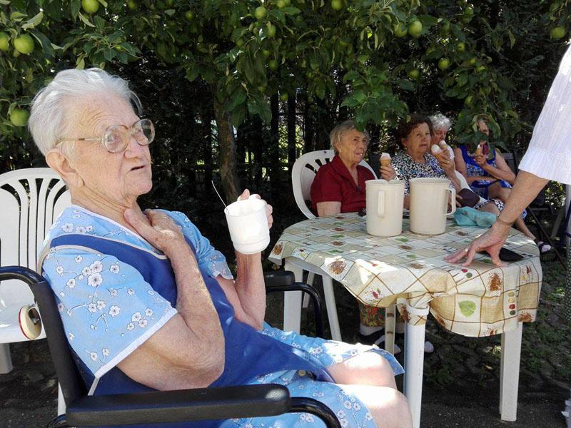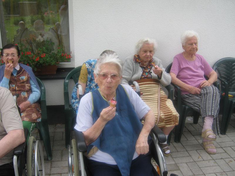 Idős lakóink egy kellemes délelőttöt töltöttek együtt, hűsítő fagyi, zene színesítette a napot.