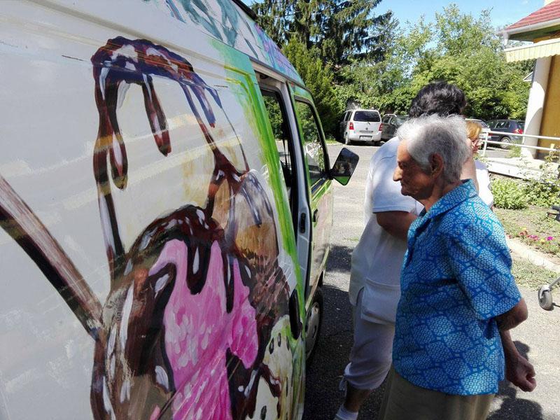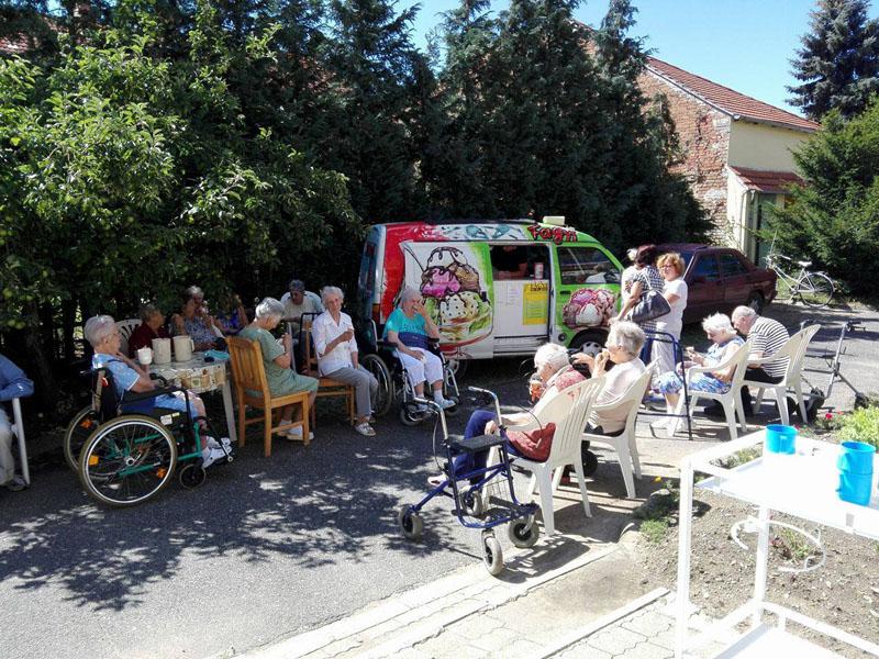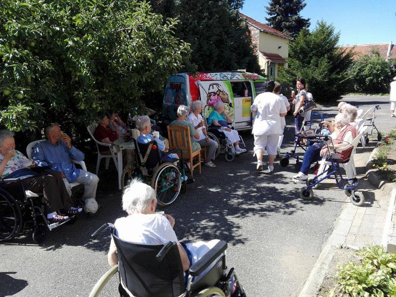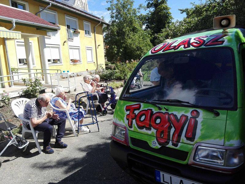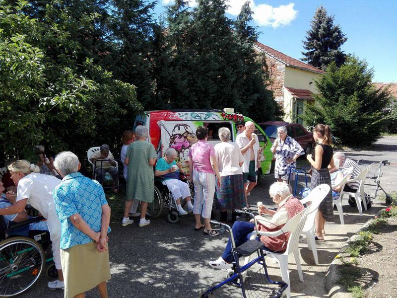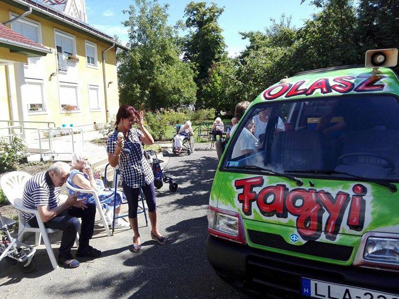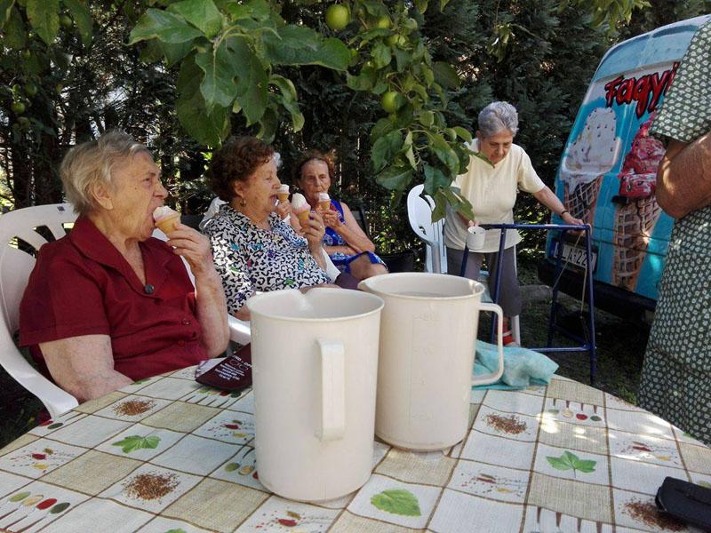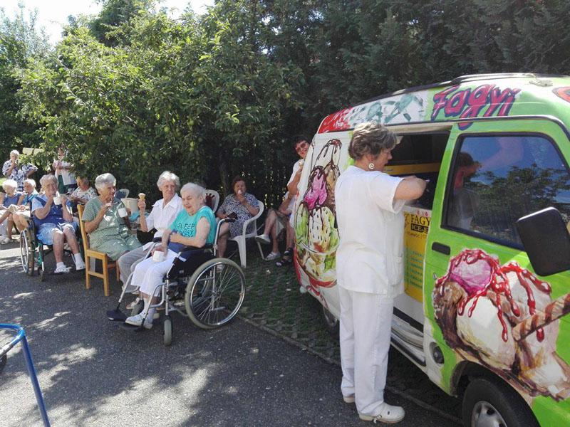 A Túróczy-házba zenélős fagyis autó hozta a fagylaltot, nagyon örültek az idősek a hűsítő finomságnak.