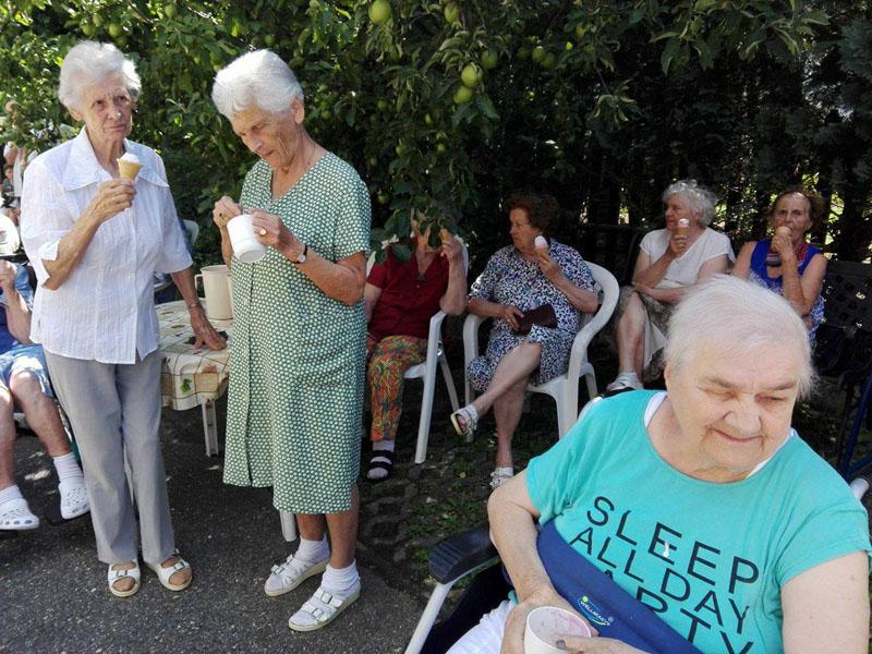 Hűsítő perceket szerezhettek a nagy melegben a diakóniai központ intézményeiben élők.