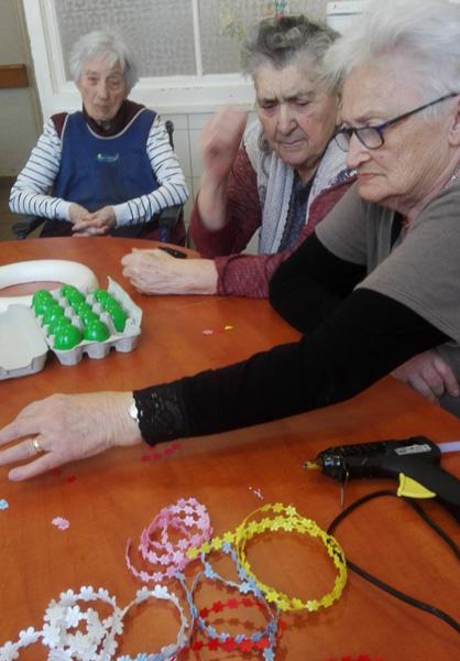 Idén is lelkesen készítették a különböző húsvéti dekorációkat idős lakóink lakókörnyezetük szépítésére, valamint családtagjaik számára.