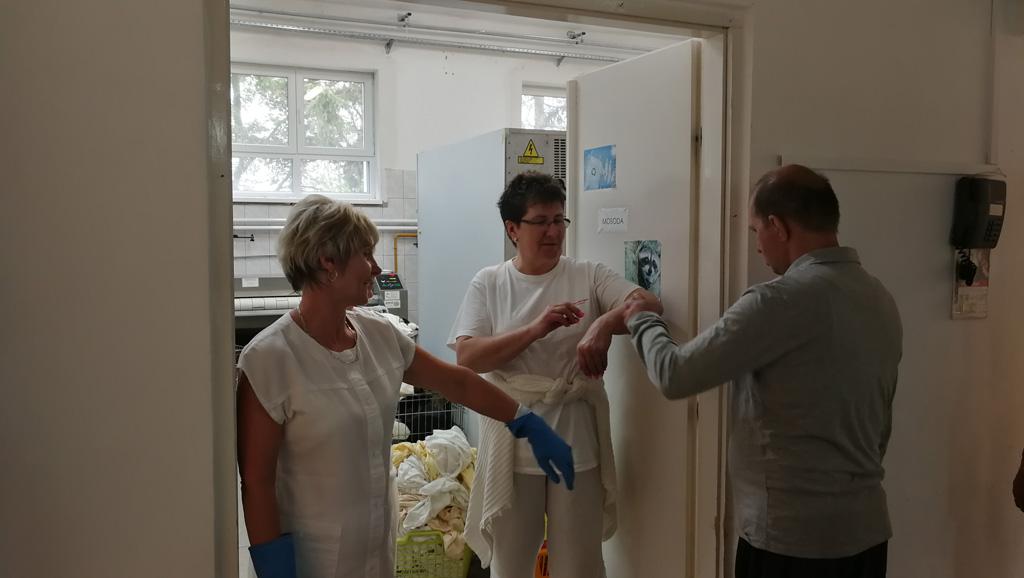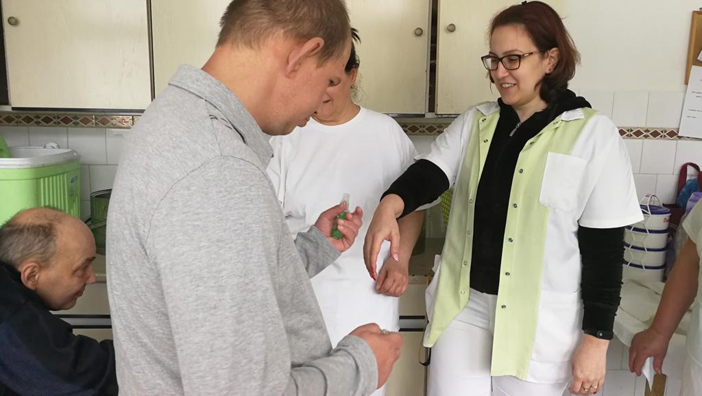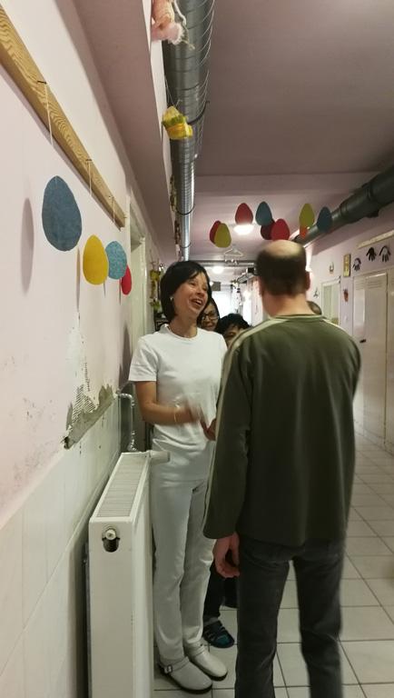 Fiataljaink erre az alkalomra locsolóverset is tanultak, majd kölnit fogtak a kezükbe és vidáman indultak el húsvéthétfőn, hogy a női dolgozókat és lakóinkat meglocsolják. A locsolásért piros tojást kaptak cserébe.