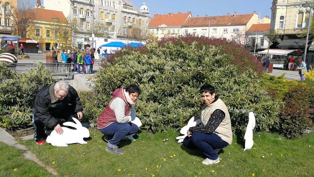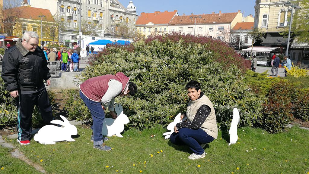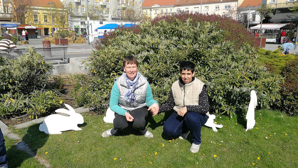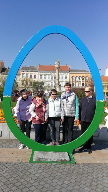 Nagyhét keddjén fogyatékos fiataljaink ellátottak a Főtérre, ahol megtekintették a felállított pavilonokat és a húsvéti díszeket.