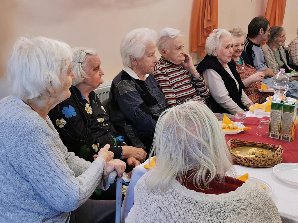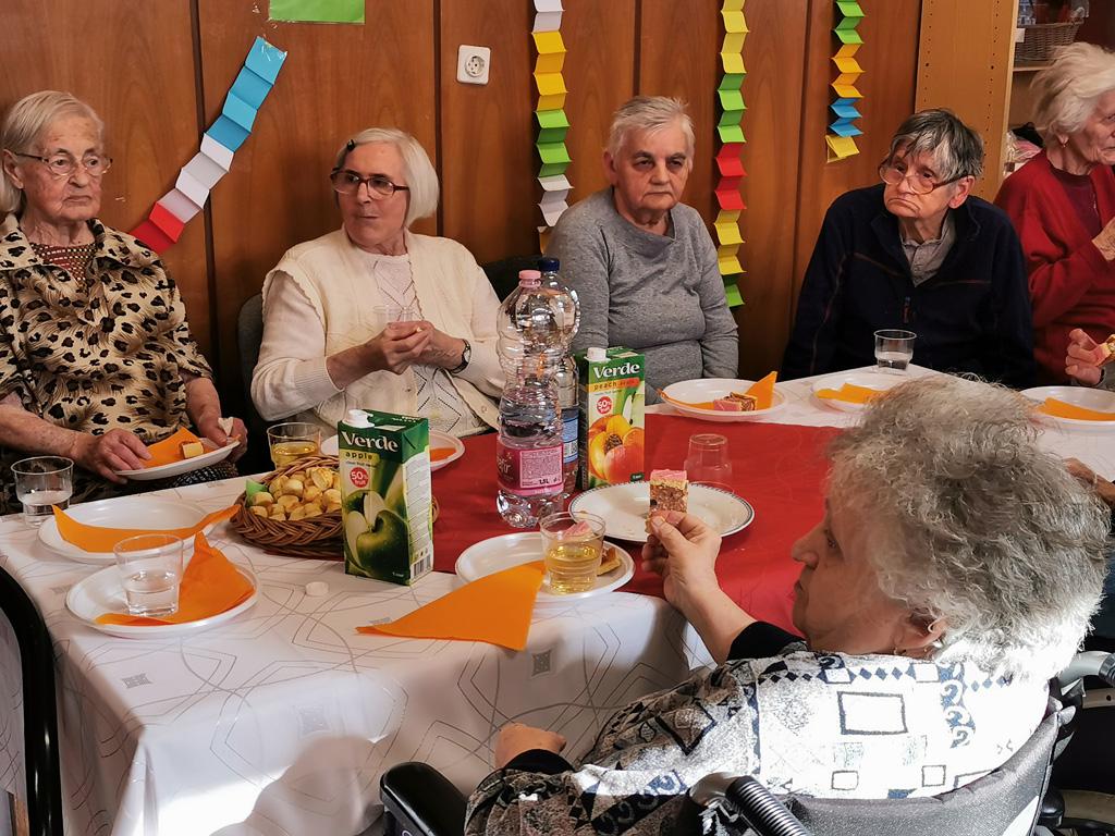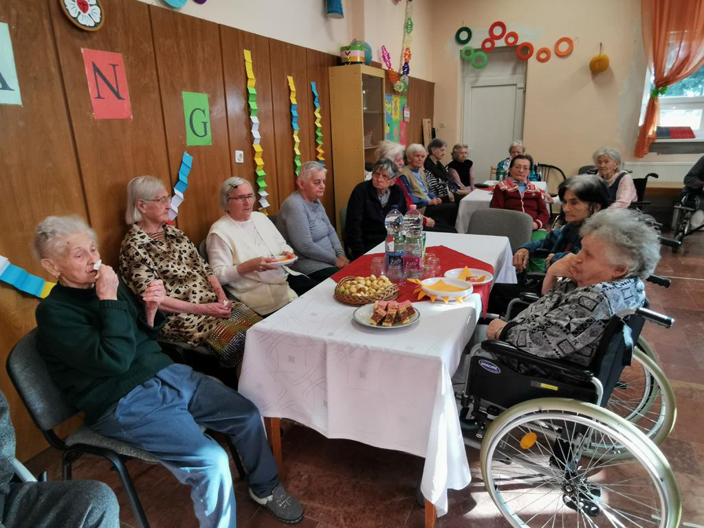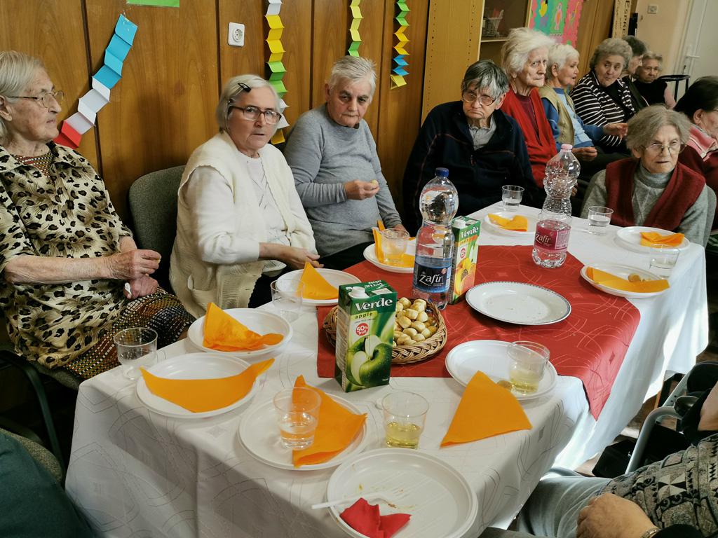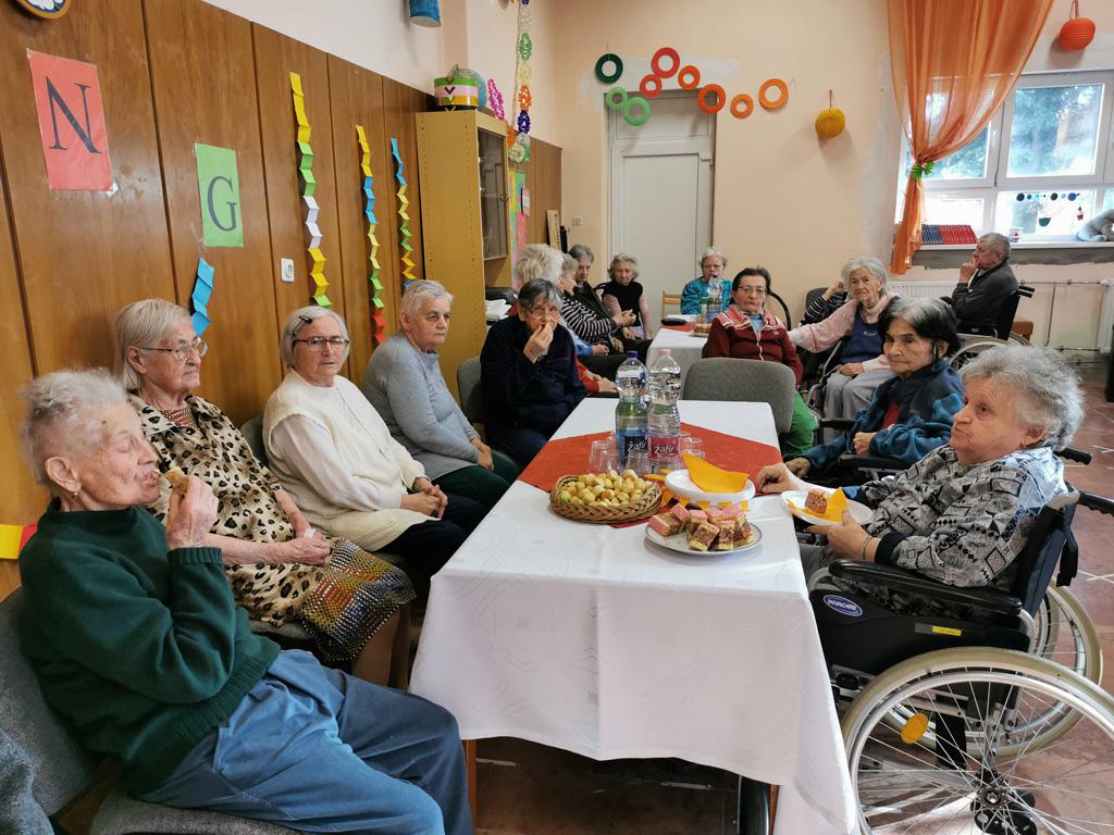 A vendégként meghívott Zsófi nénivel egészséges életmód és táplálkozási tanácsokról beszélgettünk. A kabaré után nótaszó és zene mellett vidáman röppent el a kellemes délelőtt. Az éneklésben, illetve táncban elfáradt mulatozók süteményekkel és üdítőkkel frissíthették fel magukat.