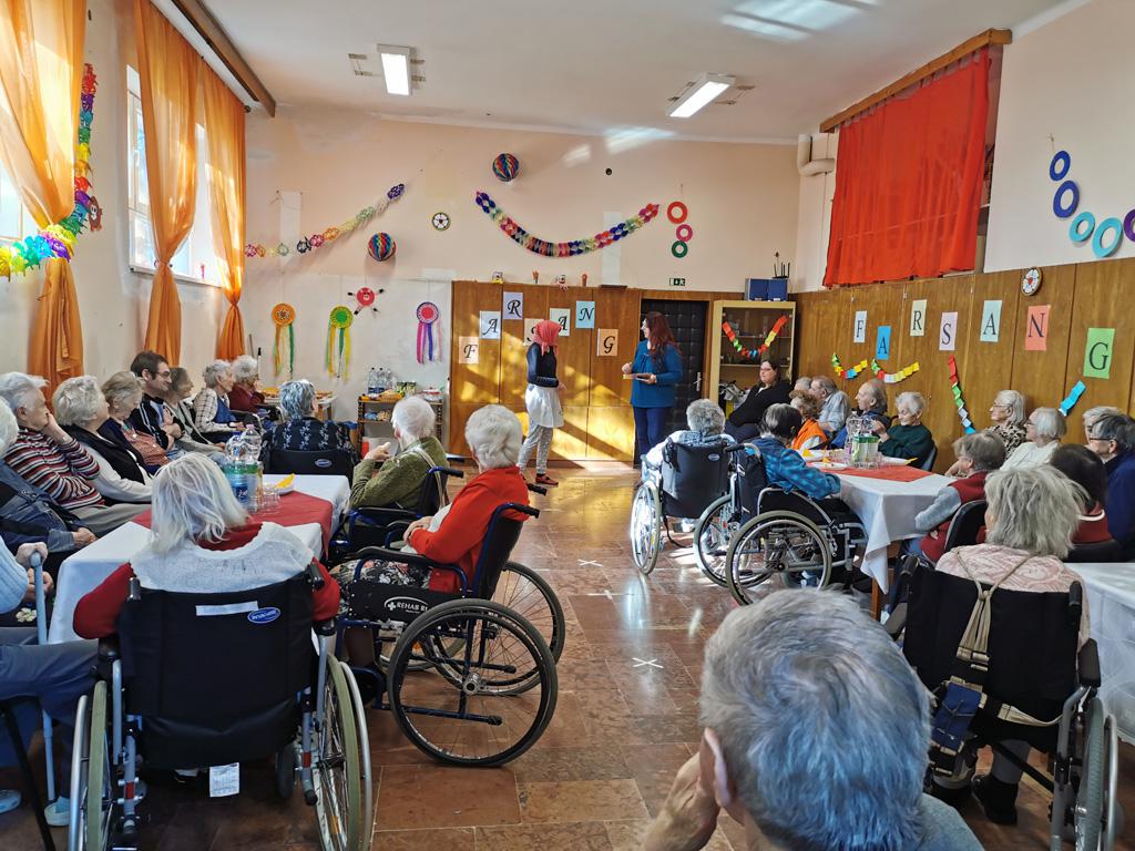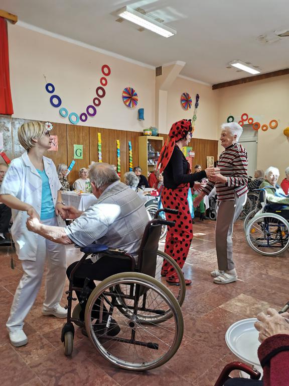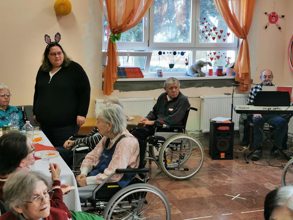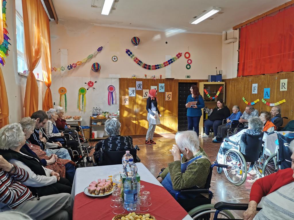 Február 20-án, csütörtökön idős lakóink körében farsangi mulatságon voltunk a Johanneumban.