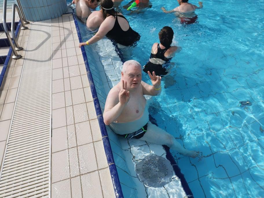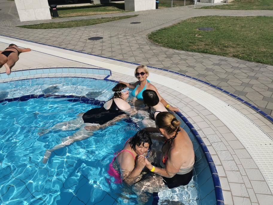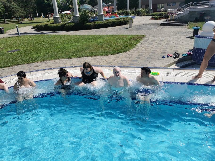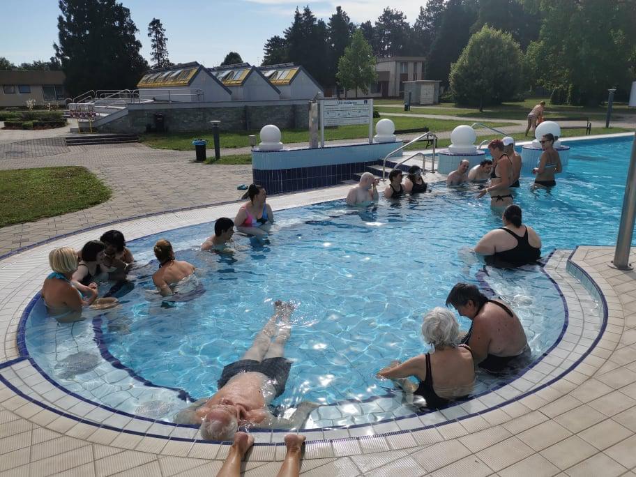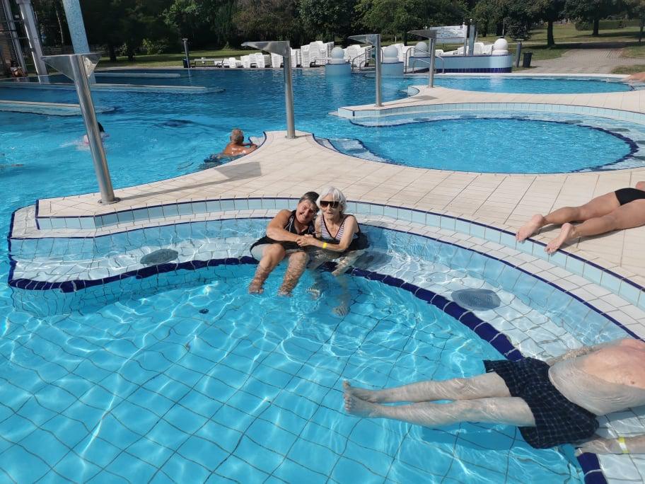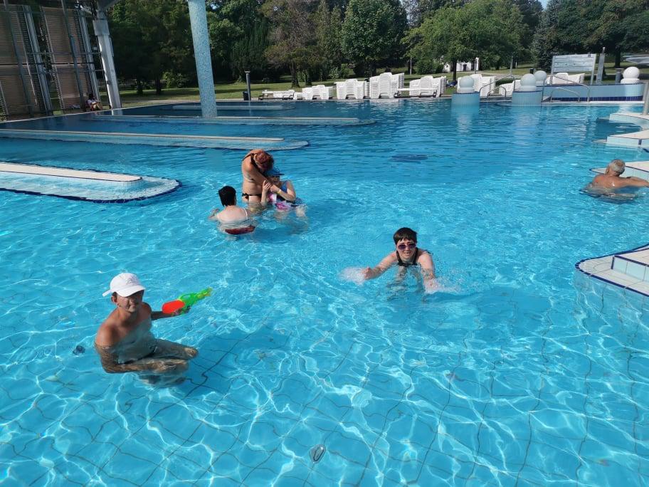 A nagy melegben vízparton lenni a legjobb. A héten immár másodszor csobbantak a Johanneum idős és fiatal lakói a termál fürdőben.