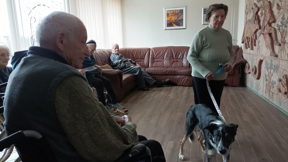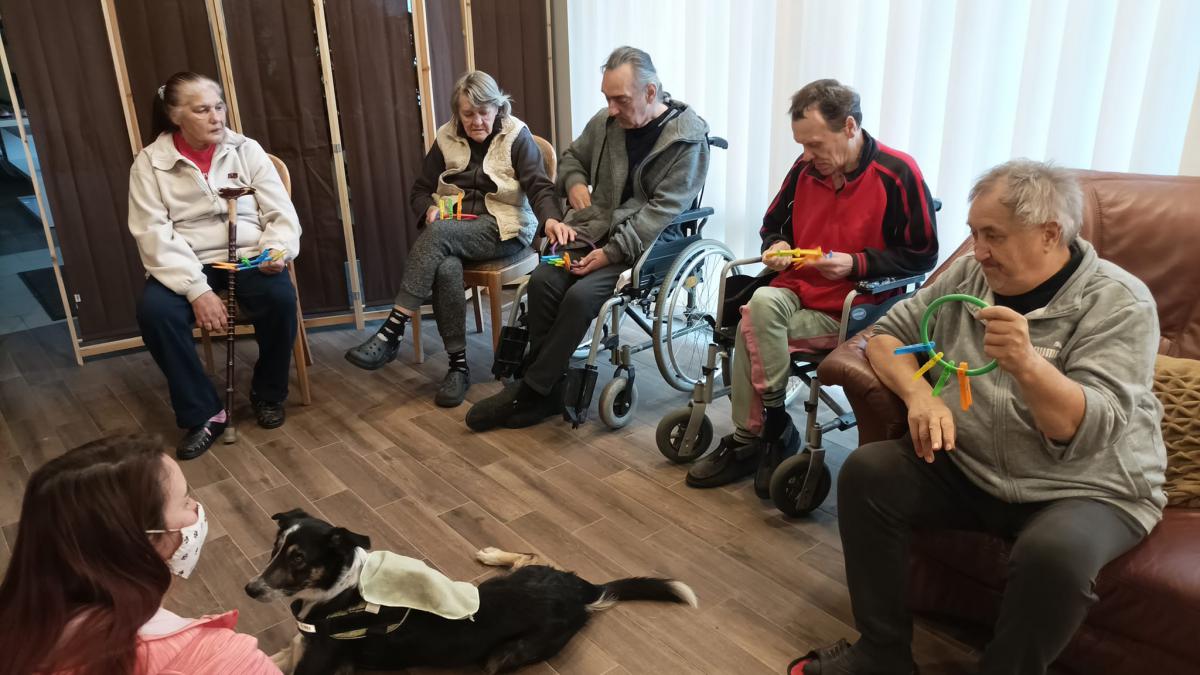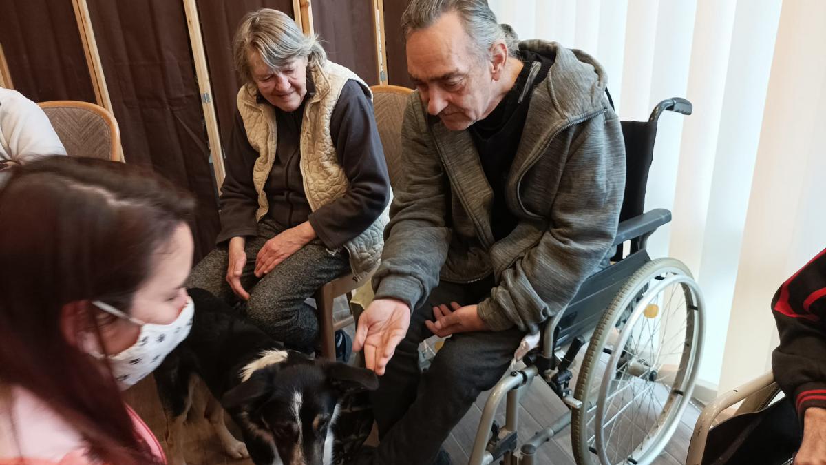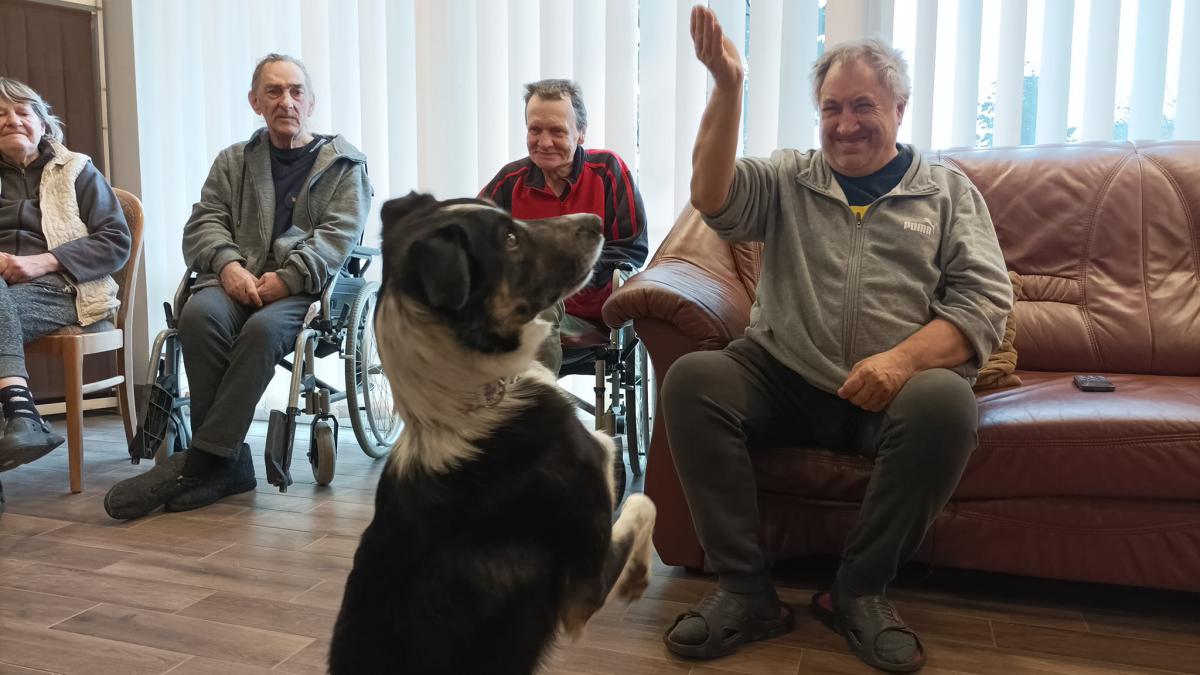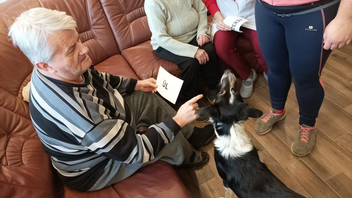 Jamie a terápiás kutya ismét foglalkozáson vett részt lakóinkkal. A Johanneum idős és hajléktalan részlegének lakói a vidám, izgalmas feladatokban ügyességüket, figyelmüket tehették próbára.
