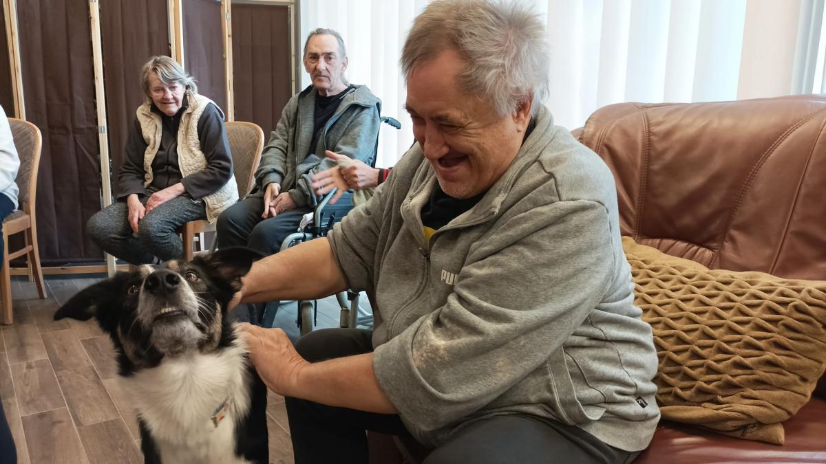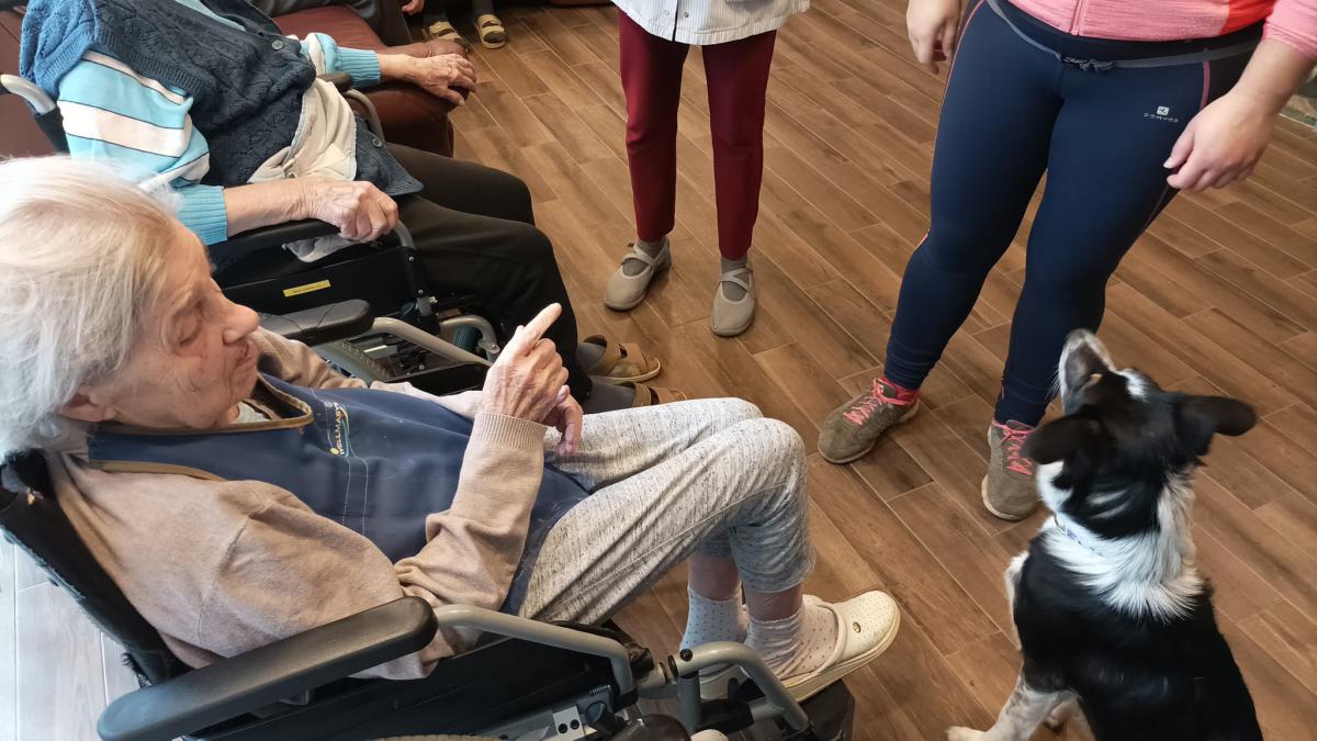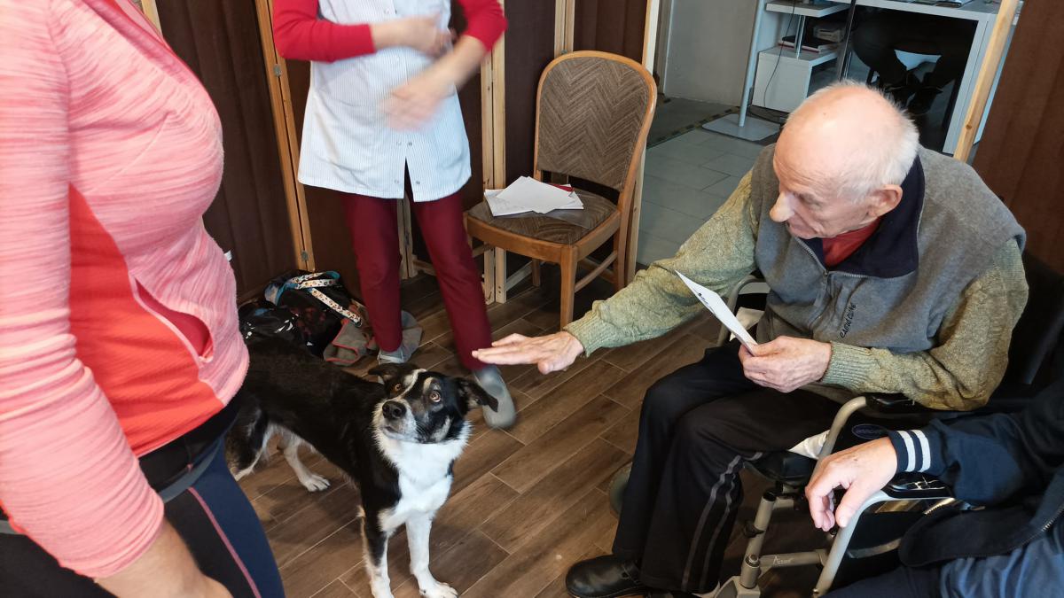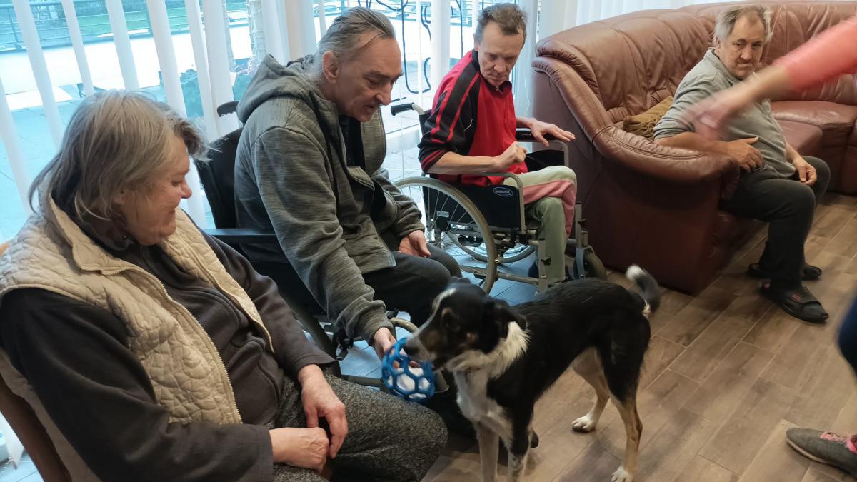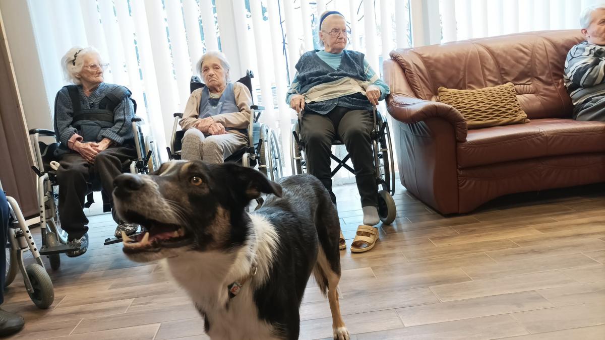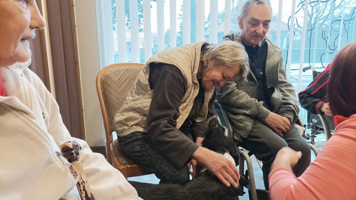 Jamie a terápiás kutya ismét foglalkozáson vett részt lakóinkkal. A Johanneum idős és hajléktalan részlegének lakói a vidám, izgalmas feladatokban ügyességüket, figyelmüket tehették próbára.