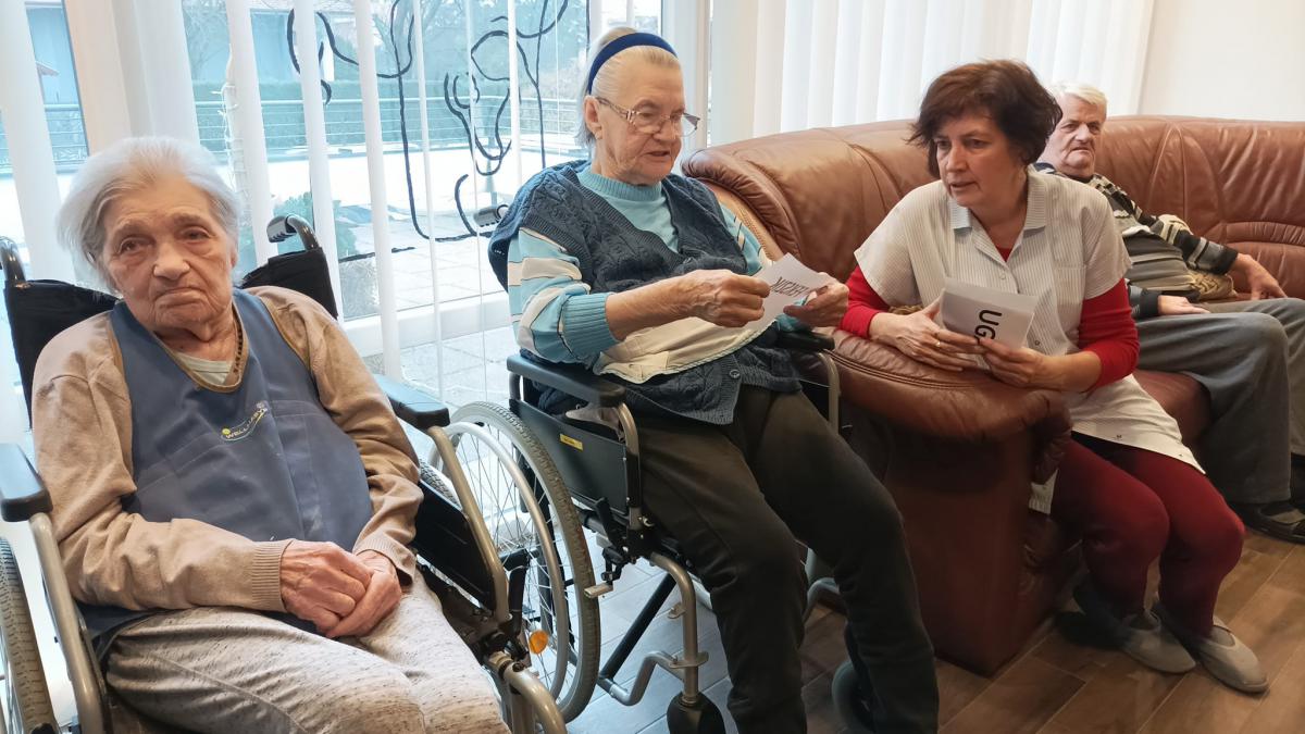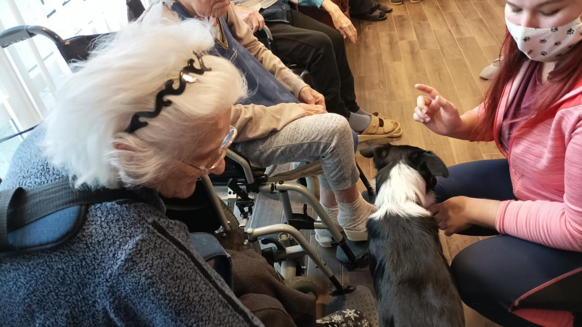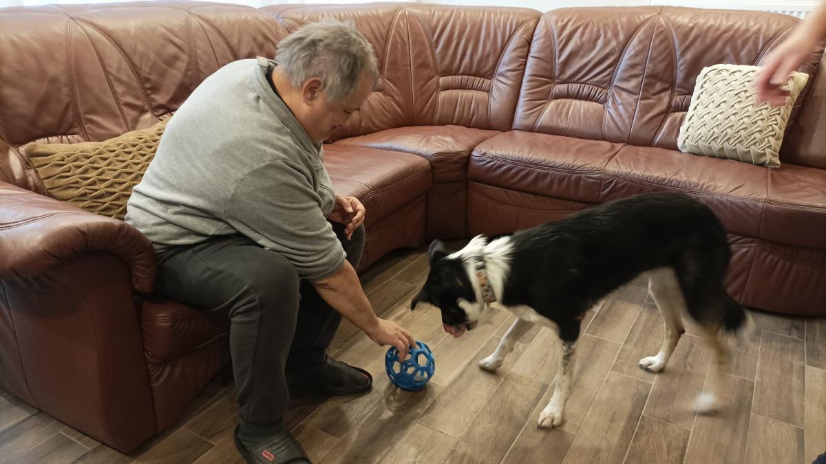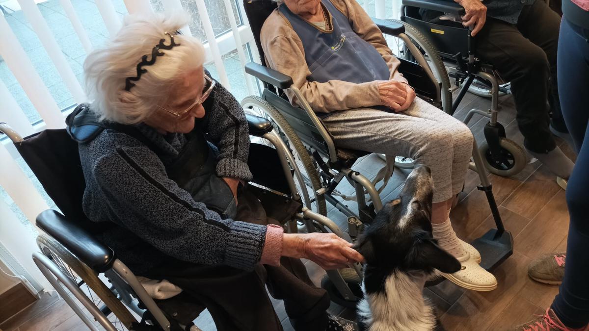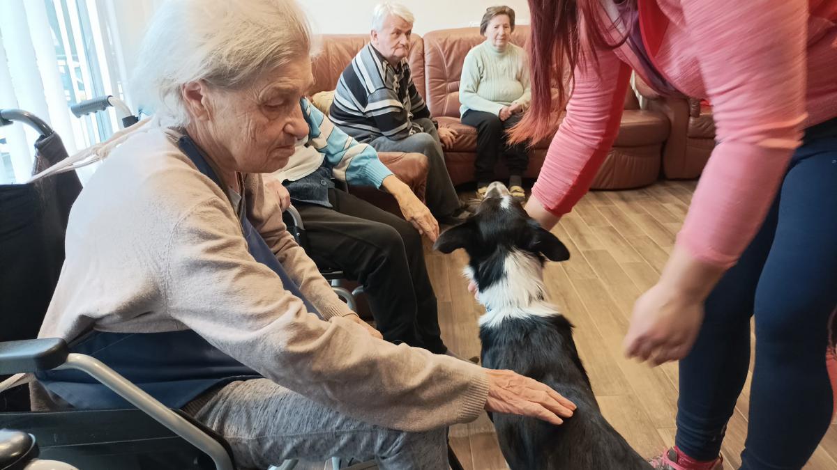 Jamie a terápiás kutya ismét foglalkozáson vett részt lakóinkkal. A Johanneum idős és hajléktalan részlegének lakói a vidám, izgalmas feladatokban ügyességüket, figyelmüket tehették próbára.