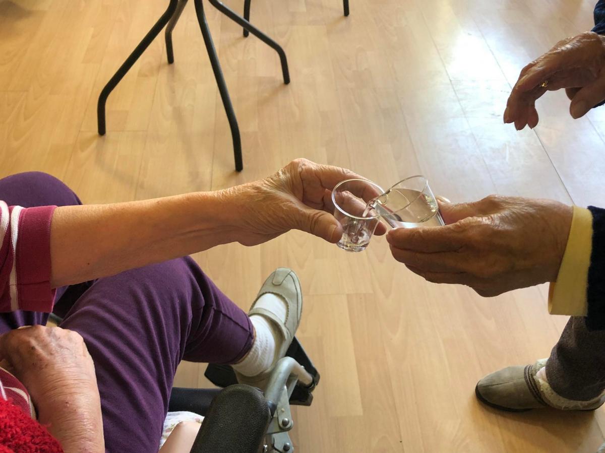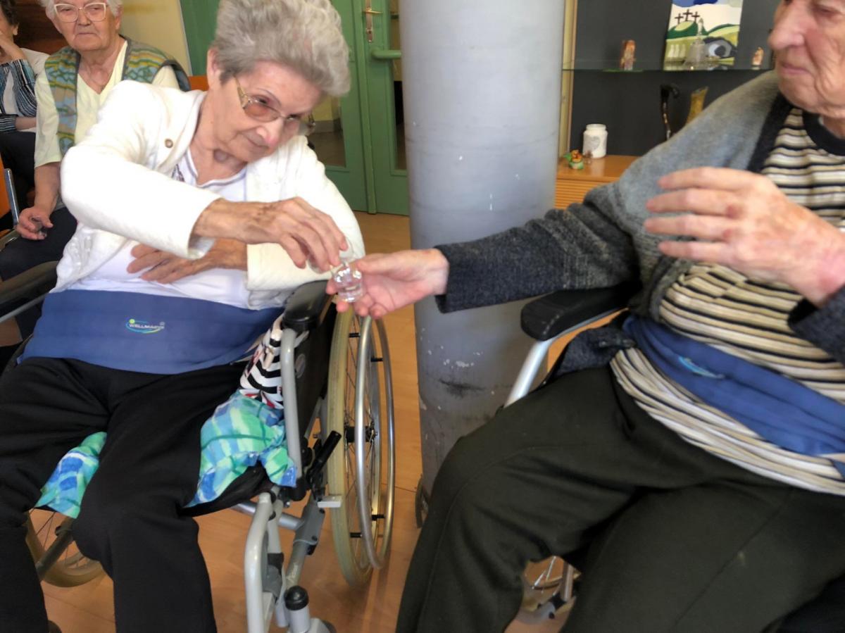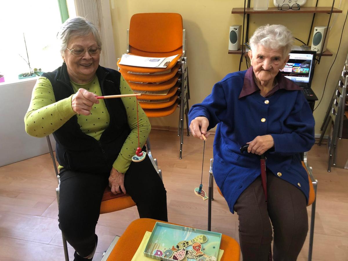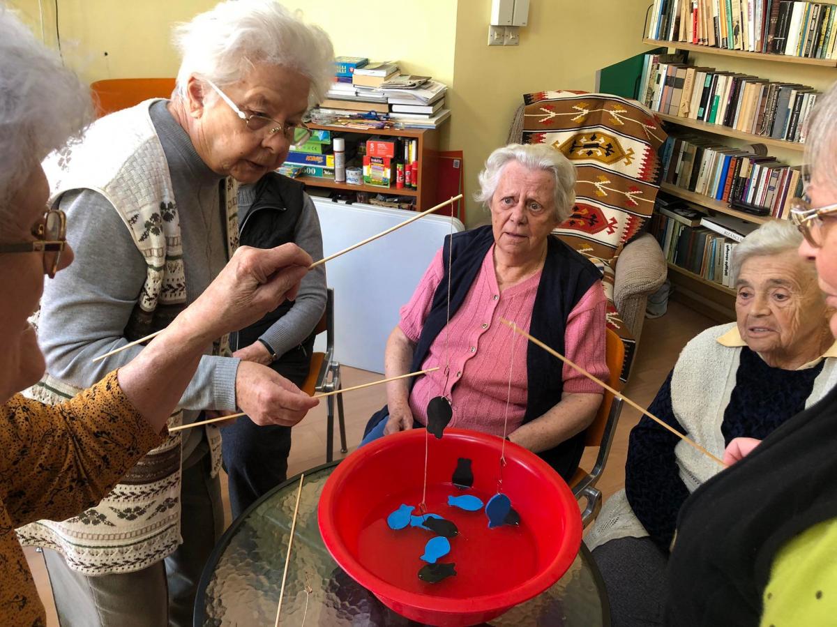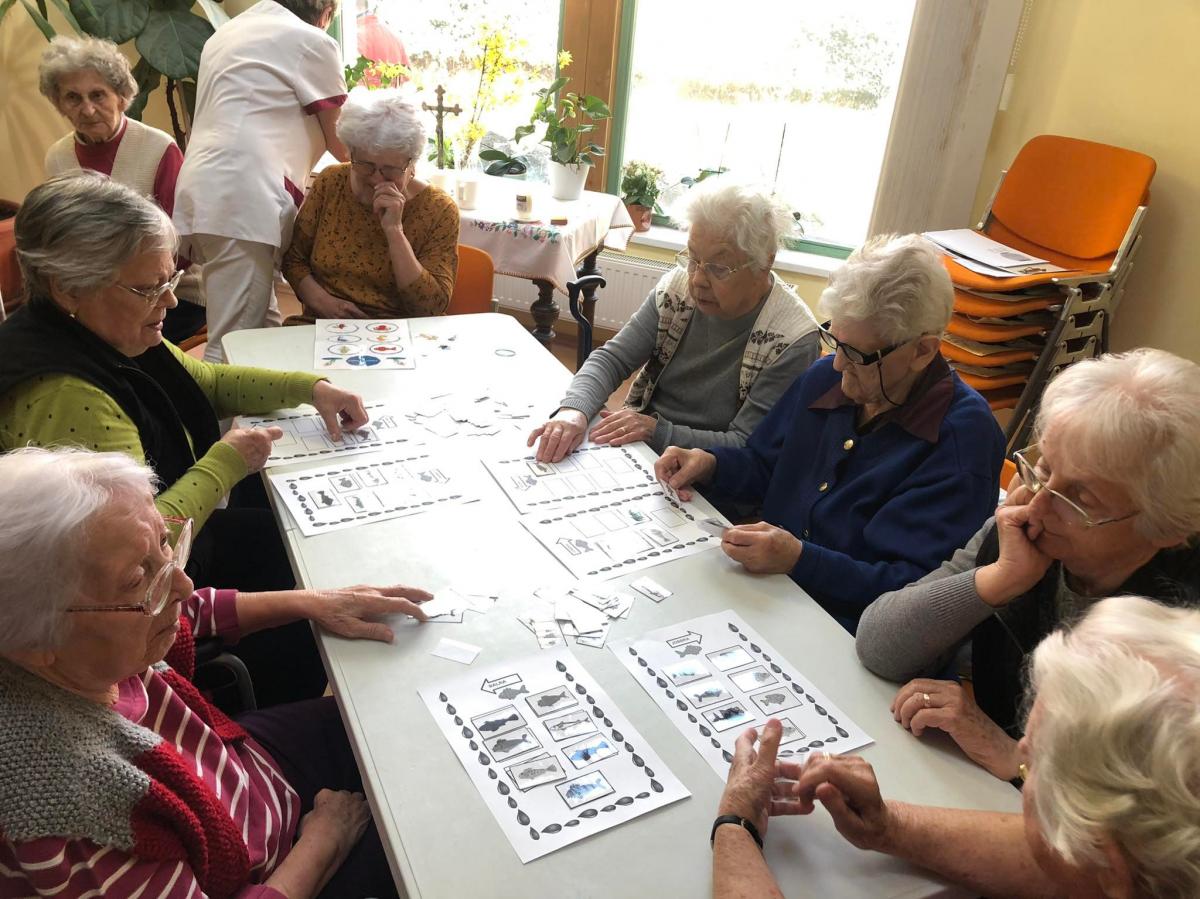 Fábiánné Domján Mária, az otthon mentálhigiénés munkatársa kíváncsi volt, hogy az idősek mennyire tudnak vigyázni egy pohár vízre. Egy vízzel teli poharat útjára indított, a lakóknak pedig az volt a feladatuk, hogy átöntsék egymás poharába a vizet és minél több maradjon a kör végére az utolsó játékosnál. Az ügyességi feladatok után a memóriájukat dolgoztatták meg a szépkorúak. A témához kapcsolódó közmondások, rendszerező feladatok vártak rájuk, és felcsendült az ismert A nagy ho-ho-horgász című mese főcímdala, amelynek többen tudták is a szövegét.
