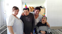 A mi egyetlen Kálmánunkat reggeli után se tudtuk elmozdítani az asztaltól. Addig nem kelt fel, míg a torta elé nem került és el nem pusztítottuk. A dobostorta nagyon jó választás volt. Szólt a zene, ment a tánc és még a ház oldalát is meghagytuk. Kálmi értékelte a bulit a nap végén, idézem: Jóóóó vooooolt!!!