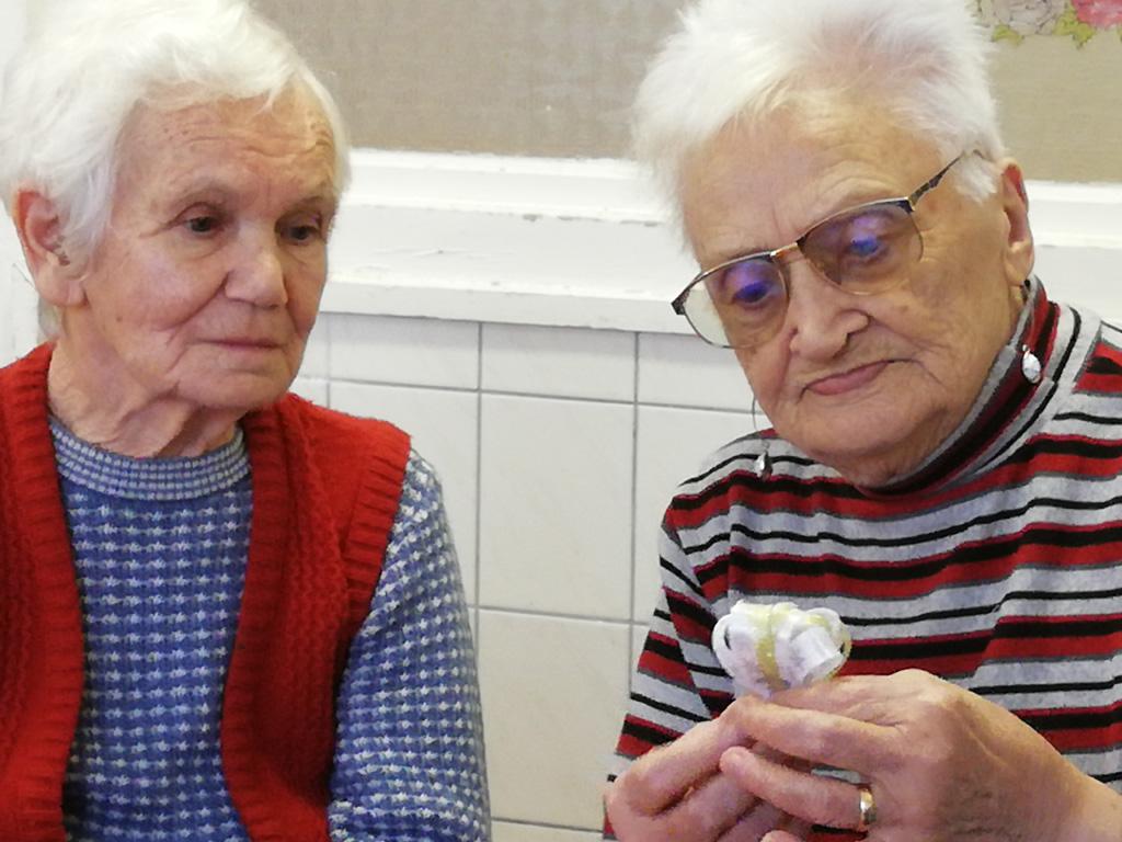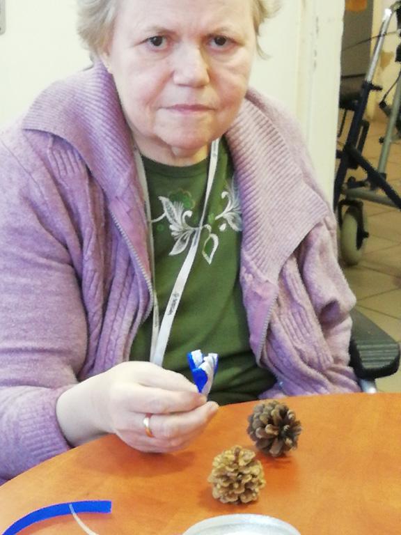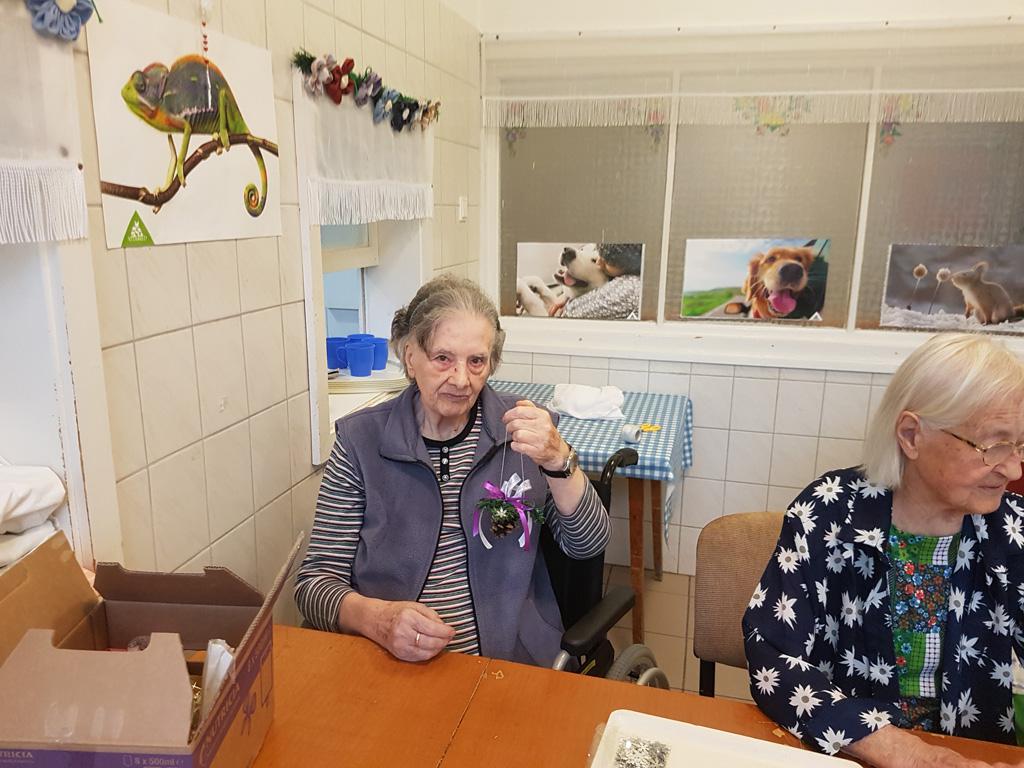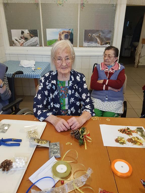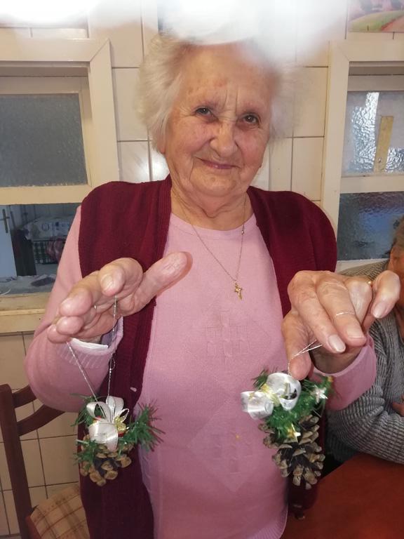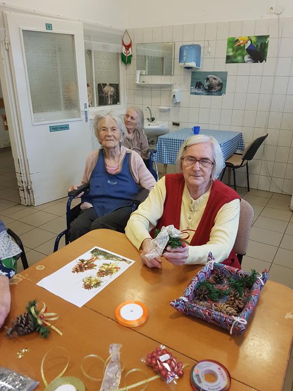 A Johanneum idős lakói karácsonyi díszeket készítettek fenyőtobozból.