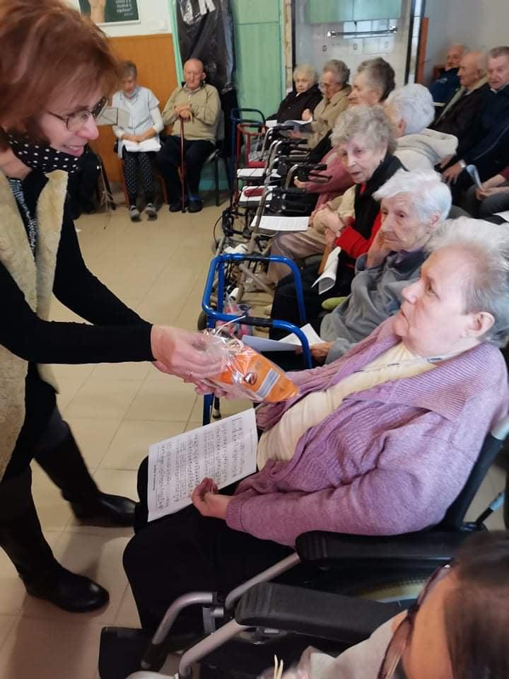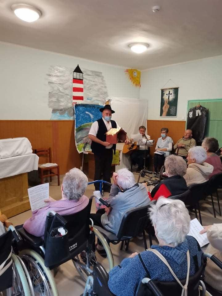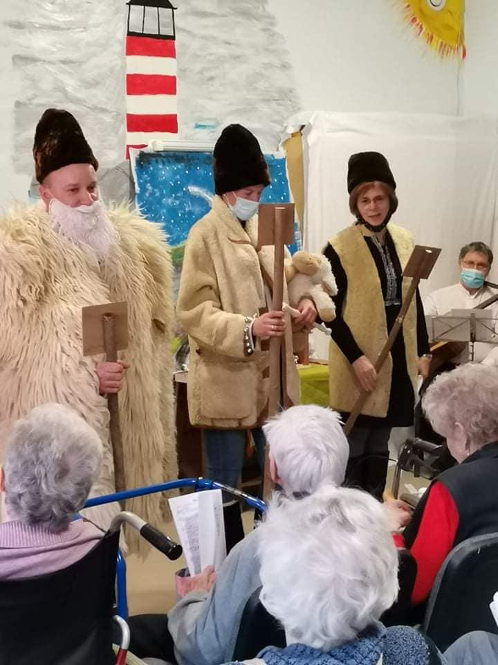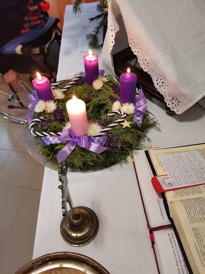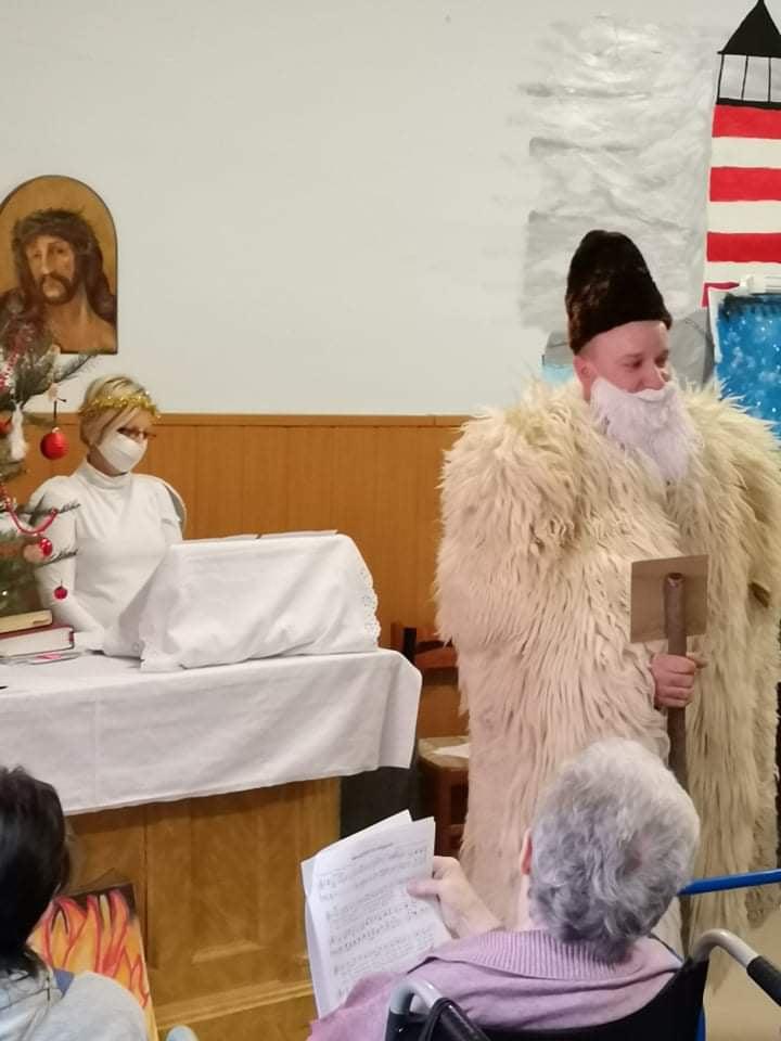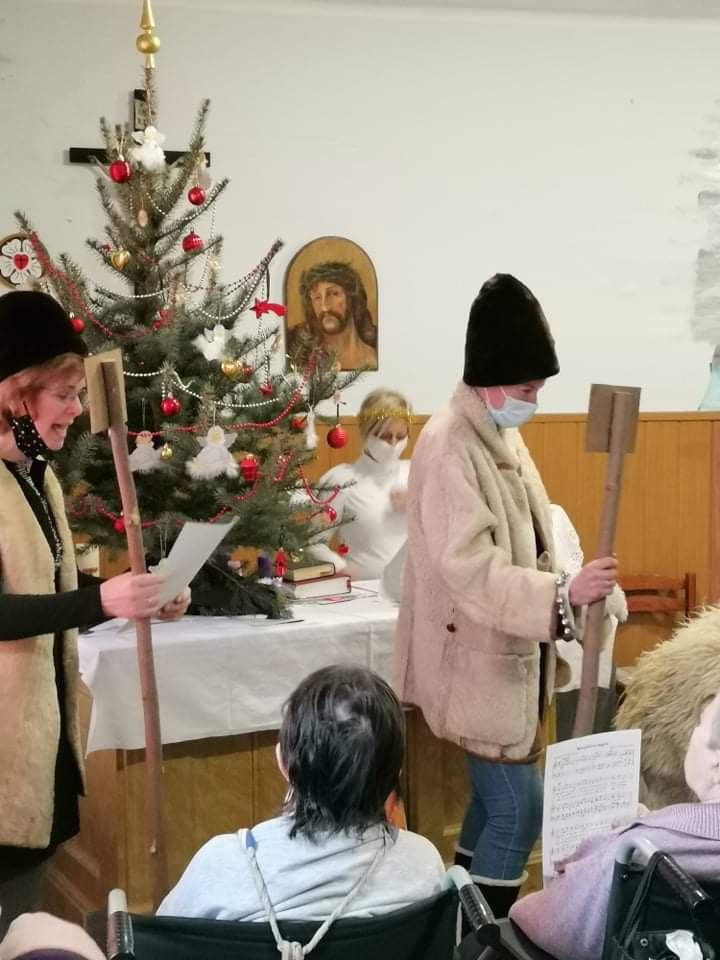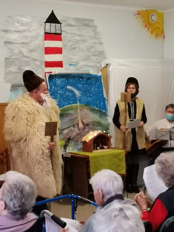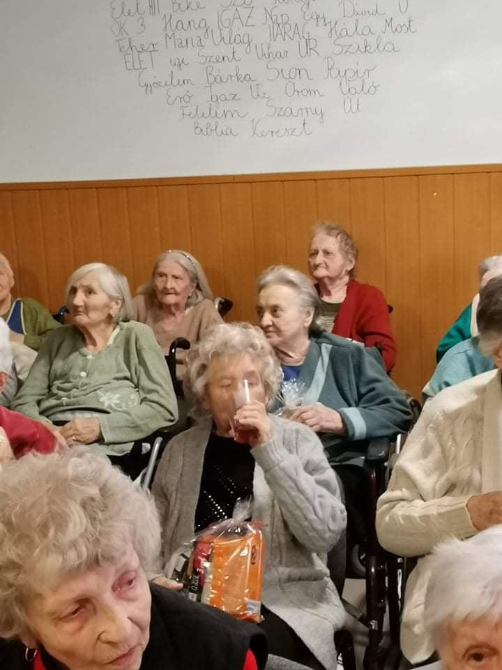 Az oltárra helyezett adventi koszorún négy imbolygó gyertyaláng jelezte: a várakozás a végéhez közeledik. Az ünnepi áhítat, elcsendesedés percei után lakóink a diakóniai lelkésznő és a mentálhigiénés munkatársak által bemutatott betlehemes karácsonyi játékot tekinthették meg. A pásztorjátékot az ajándékozás örömteli percei követték: kollégáink a Szombathelyi Evangélikus Egyházközség által felajánlott ajándékcsomagokkal kedveskedtek idős lakóinknak. A feldíszített karácsonyfa és a betlehemi jászol mellett, karácsonyi énekeket énekelve, és egy-egy pohár illatos, melengető forralt borral koccintva időseink és munkatársaink együtt készülhettek a közelgő, Isten szeretetét elbeszélő nagy örömünnepre: Jézus Krisztus megszületett, Isten emberré lett.