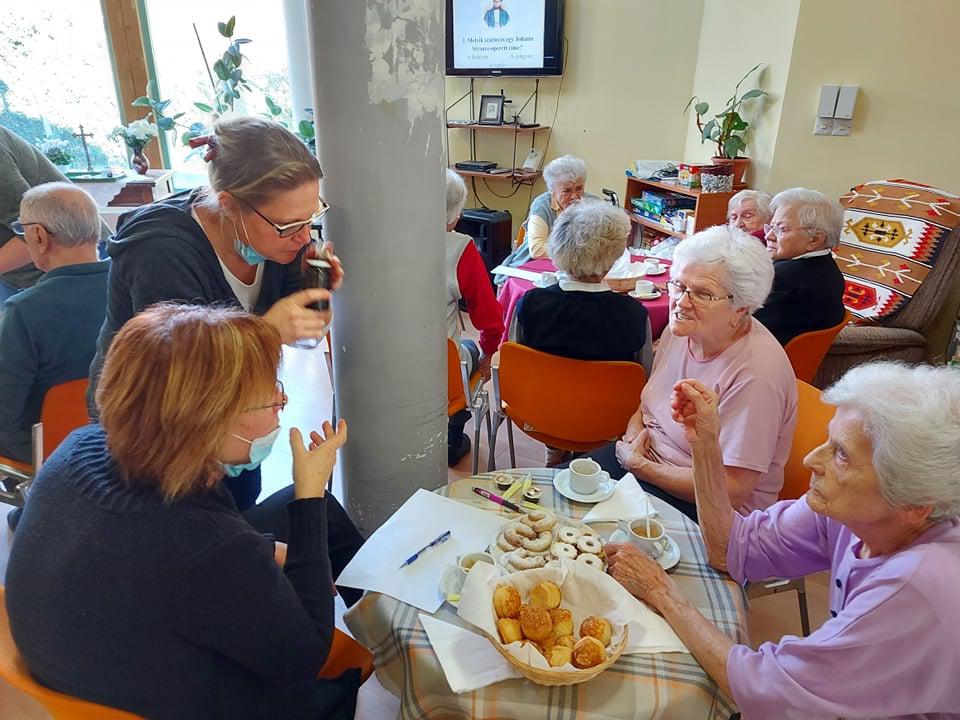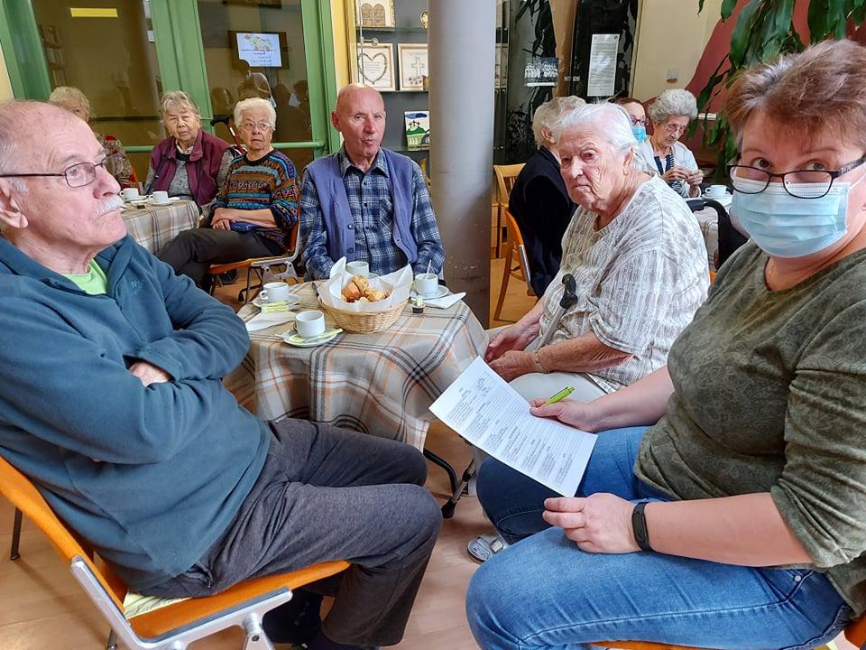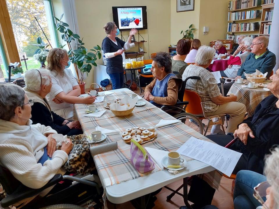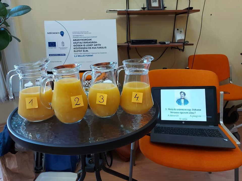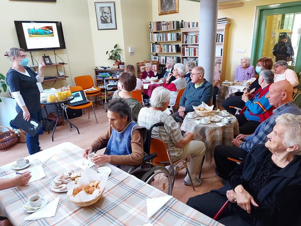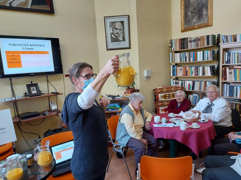 Generációk közös játéka, amely lendületbe hoz. Bartos Eszter volt a vendégünk a Túróczy otthonban, ahol az idősek és az intézmény dolgozói egy-egy csapatot alkotva oldottak meg különböző témájú kvíz feladatokat. Az érzékelés is főszerepet kapott, hisz különböző márkájú és gyümölcsszázalékú narancsleveket tesztelve kellett minőségi különbségeket tenniük a csapatoknak, valamint szaglás segítségével kellett illatokat beazonosítani. De az élelmiszerek tapintás alapján történő beazonosítása is megdolgoztatta a csapatokat. Nagyon aktív és jó hangulatú volt a délelőtt, s remek lehetőség volt a dolgozók és a lakók számára a vidám, minőségi idő eltöltésére.