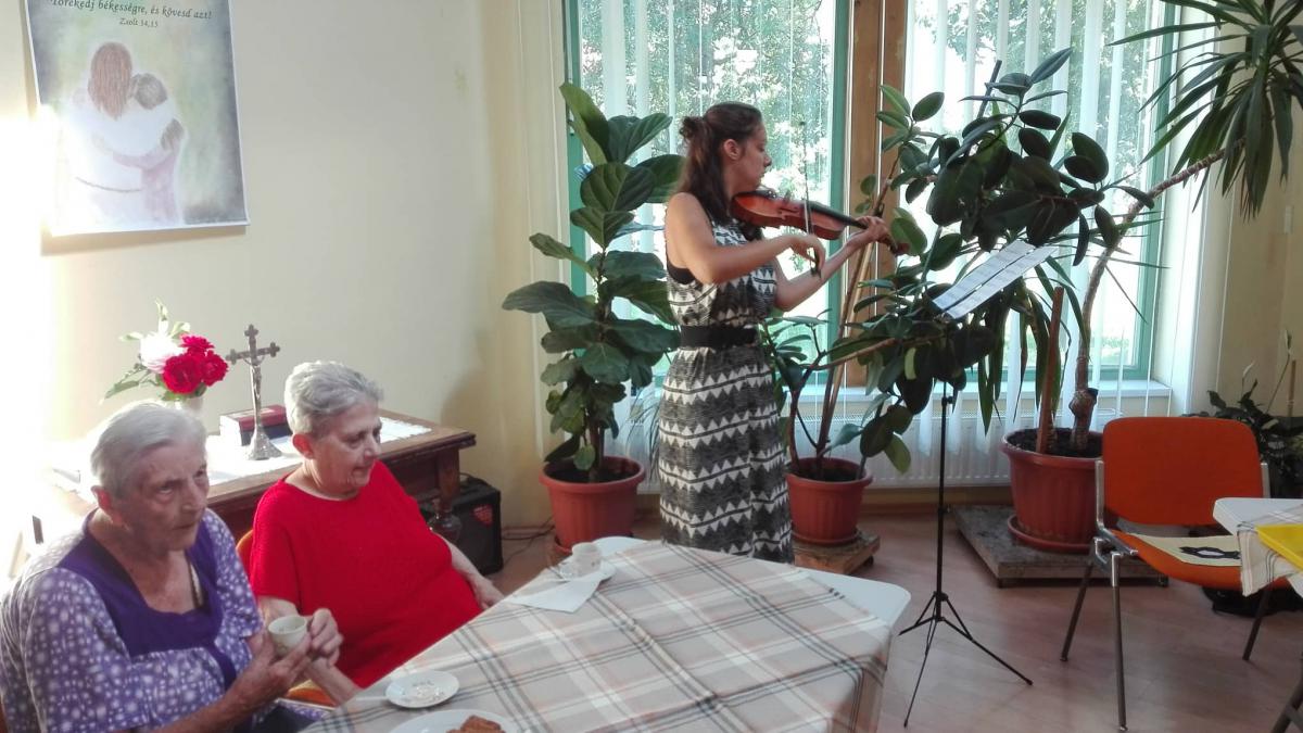 Az alkalmakat az intézmény lelkésznője nyitja meg egy áhítattal, imádsággal, majd a meghívásunkra érkezők szolgálatában megszólaló kellemes zene teszi emelkedetté a délelőttöt. Beszélgetésekre van lehetőség a véletlenszerűen mellénk ült lakótárssal, az éppen látogató hozzátartozóval. Olyan alaklom ez, melyet izgatottan várnak lakóink, kicsit más,mint a megszokott, kicsit meghitt, kicsit ünnepi. Az első alkalom zenei szolgálatát köszönjük Rác Fanni gyülekezeti tagunknak, aki gyönyörű hegedűjátékkal örvendeztetett meg minket.
