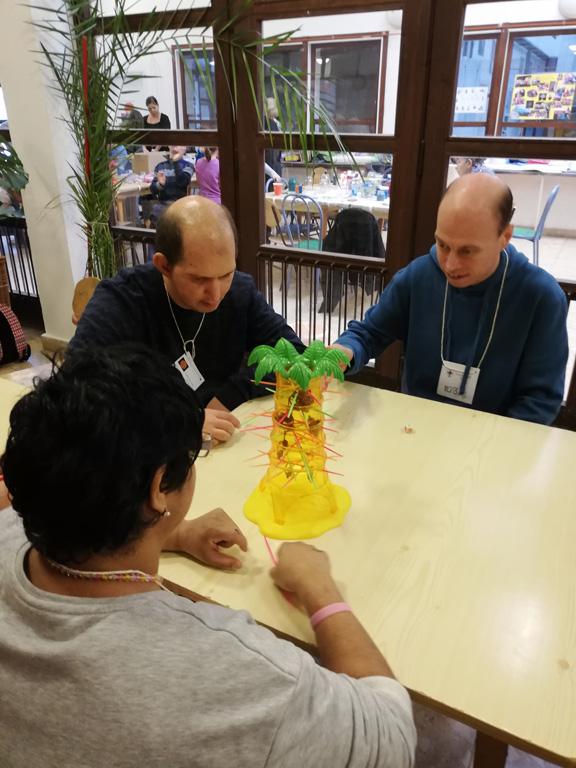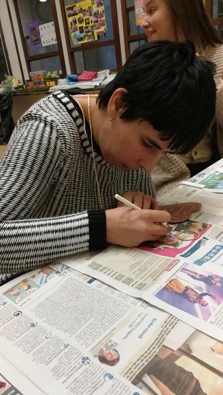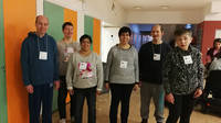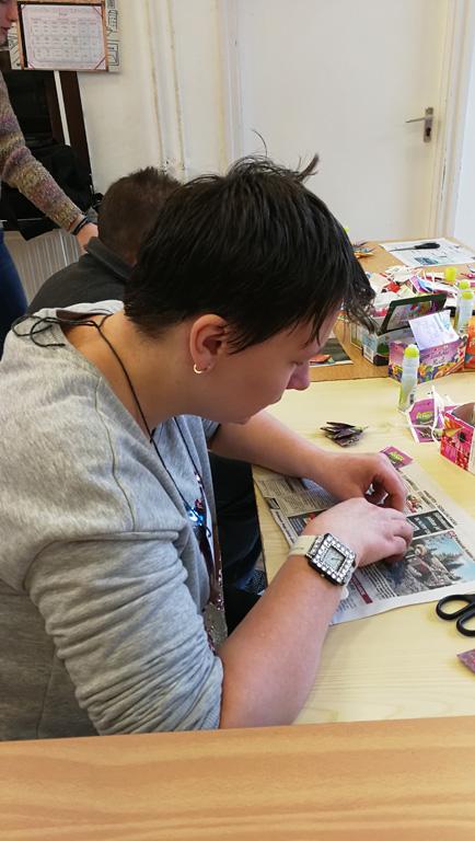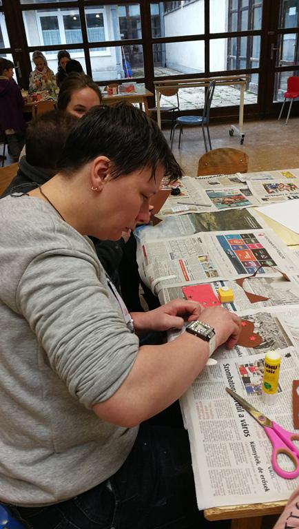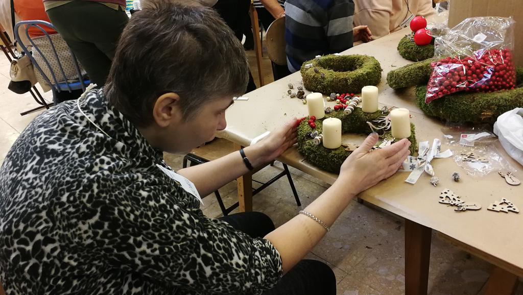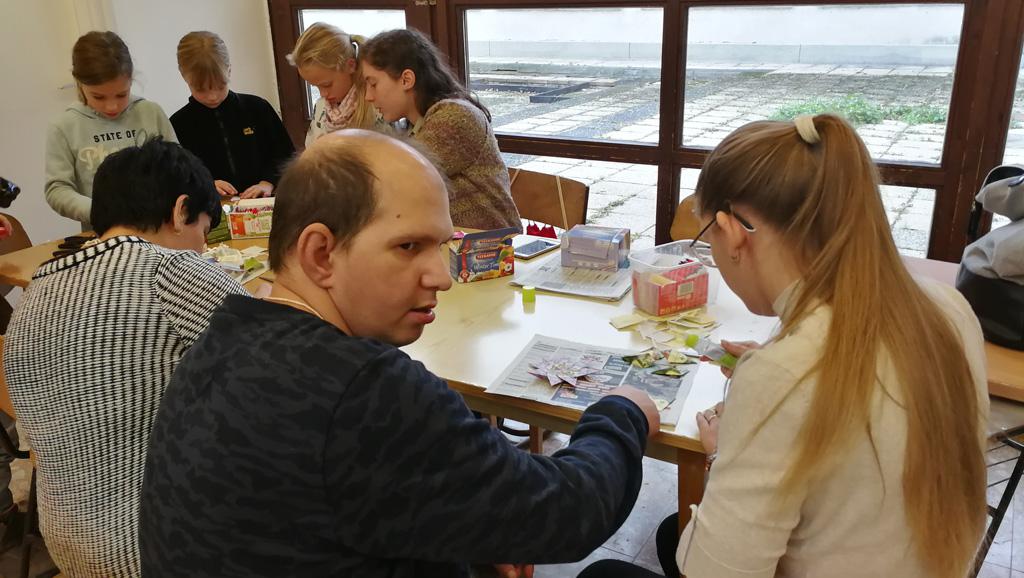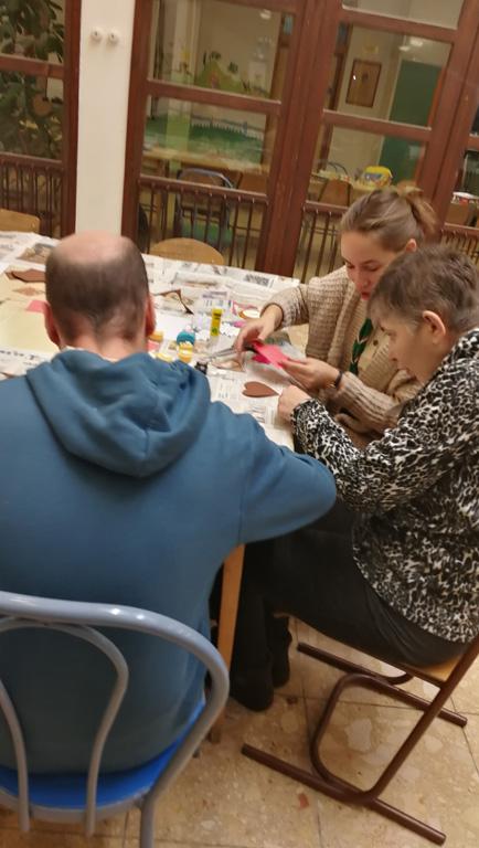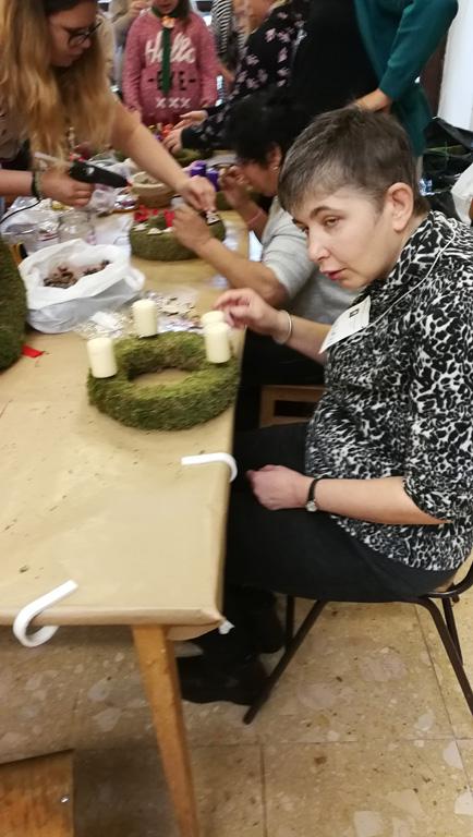 Kézműves foglalkozással, közös játékkal és Bercivel, a vakvezető kutyával várták az ide látogatókat. Karácsonyi díszeket készíthettek a lakóink. A lányok adventi koszorú gyártásával foglalkoztak, addig a fiúk társasoztak. Berci kutyus a tanteremben várt minket, ahol tapogatással ismerkedhettek meg különféle tárgyakkal. A fiatalok átélhették, milyen az, amikor nem látunk, s Berci segítségével sétálhattak a folyosón. Kipróbálták a boccia játékot, amelyet a mozgássérültek egyesületéből Zsanett mutatott be és tanított meg a fiataloknak. A napot finom ebéddel zártuk.