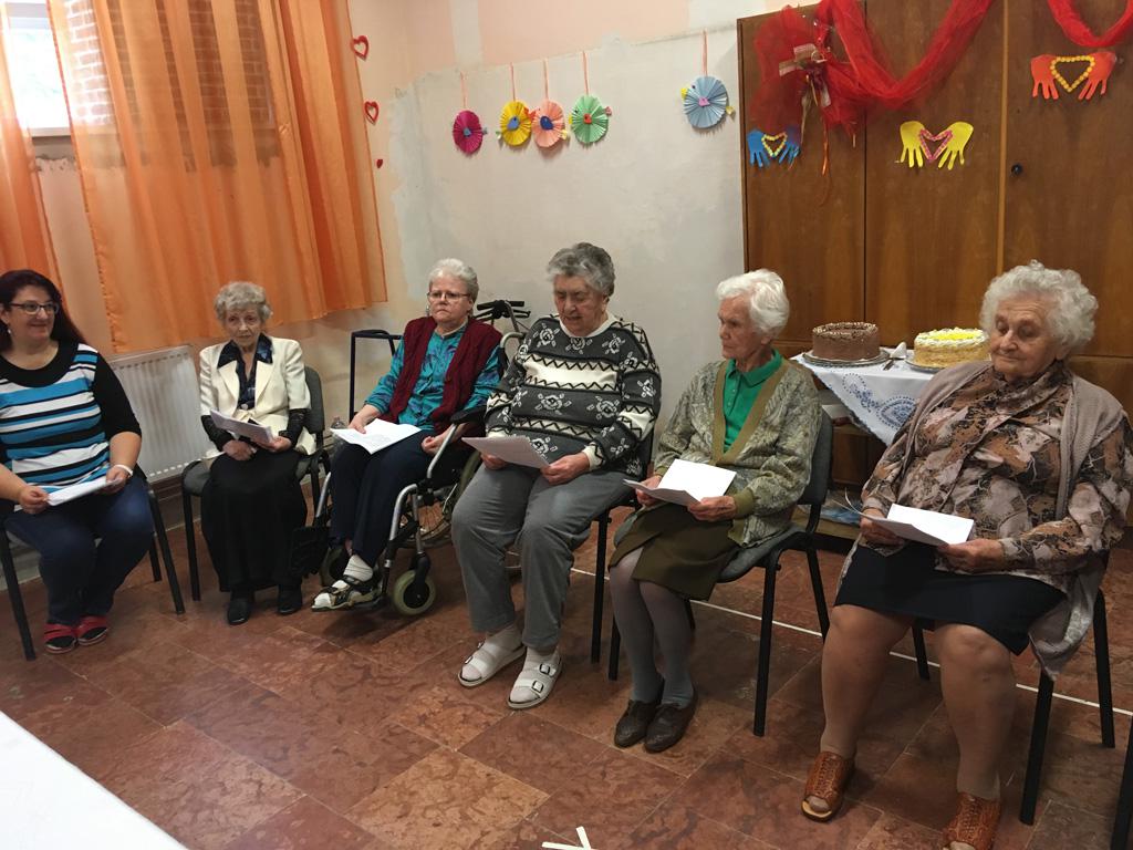 Minden születésnap nagy esemény az ember életében, de mindig különlegesebb az ünnep, ha egy kerek évszámhoz érünk. Lakótársaik verses, énekes műsorral készültek, hogy szebbé tegyék számukra ezt az alkalmat. Torta és üdítő mellett egymás társaságában kellemesen telt a délelőtt.