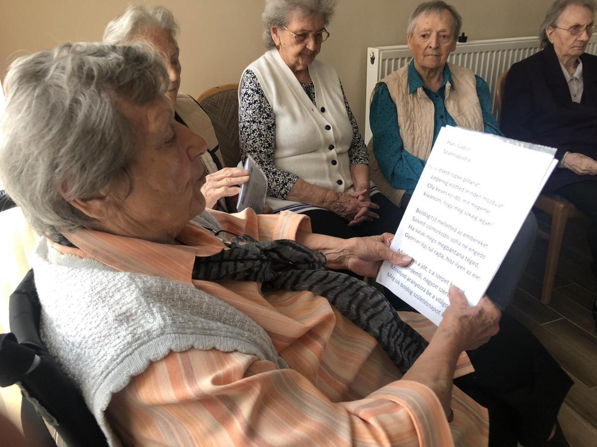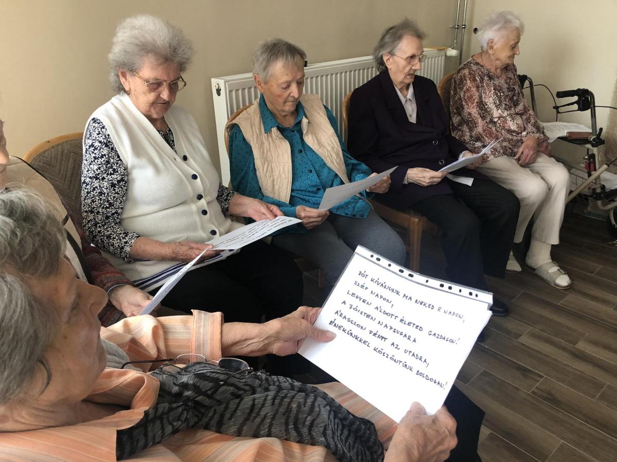 – Ezúttal tíz lakónak kedveskedtek társaik énekekkel, versekkel. – Hosszú készülődés előzte meg az eseményt – mondta Roósz Orsolya, mentálhigiénés szakember. – Ha arról van szó, hogy a másiknak kell kedveskedni, akkor mindenki szívesen szerepel. Sokat gyakoroltunk, örömet szerettünk volna szerezni, azt hiszem sikerült – emelte ki.