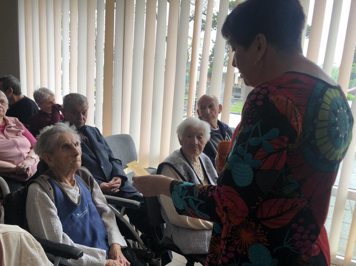 Sajnos vannak ágyban fekvők az ünnepeltek között és olyan is, aki kórházban van. Itt az ünnepségen hét születésnapos tudott részt venni. Szép igés könyvjelzőket ajándékoztunk nekik, igyekeztem mindenkinek külön olyan igét választani, ami éppen most fontos üzenetet hordozhat a számára – tette hozzá munkatársunk. Természetesen azok a lakók is megkapják az ajándékot, akik nem tudtak kijönni az ünnepségre, amelyet sütizéssel, üdítőzéssel zártunk.